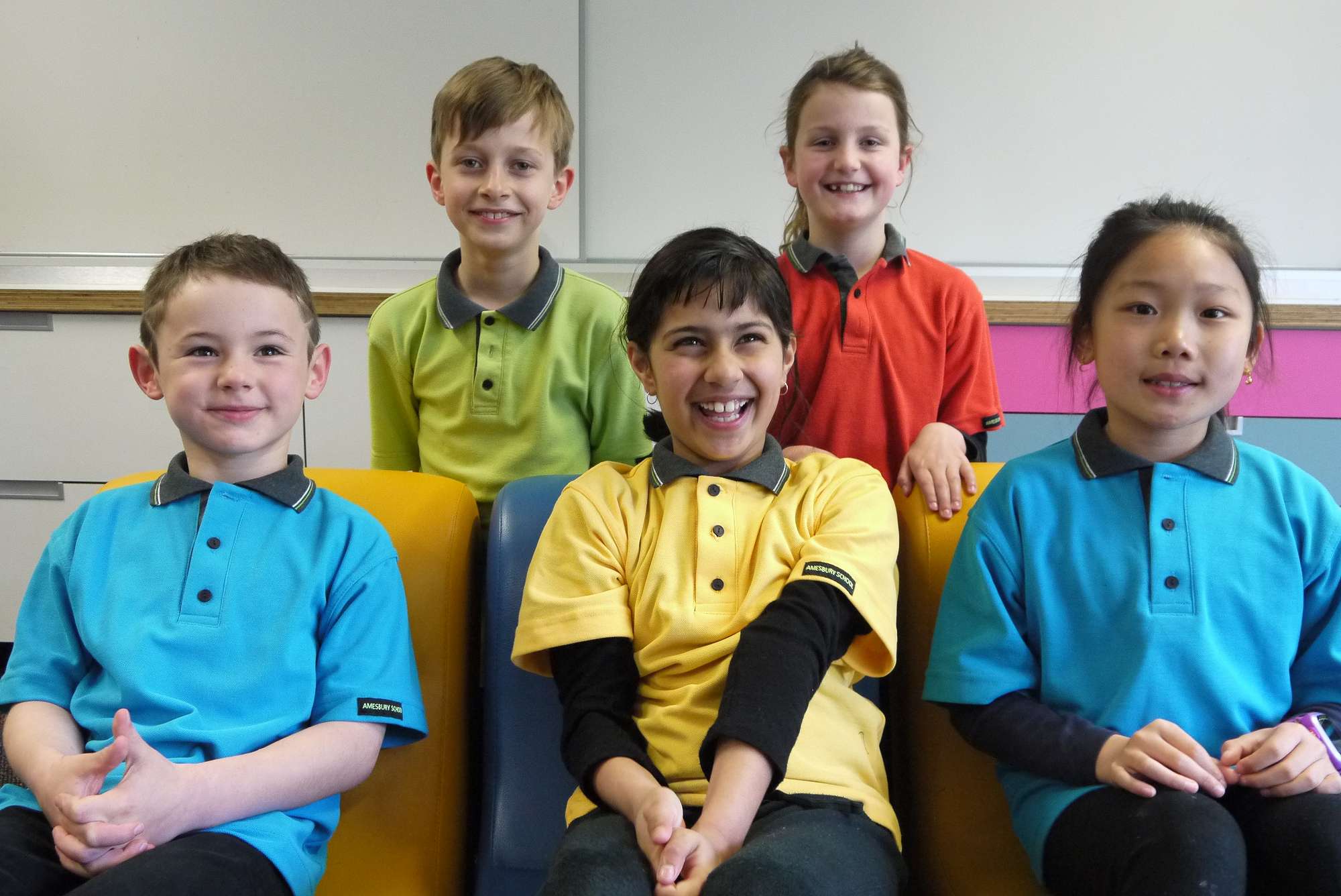 Thank you to our lovely models, Lucas, Aariya and Vinnie who joined an impromptu photo shoot to show off our new colours, gold and turquoise. They were joined by Leonard and Caitlin, to help show how the new colours co-ordinate with our remaining foundation colours, lime and orange (see photo below). We think they look amazing!