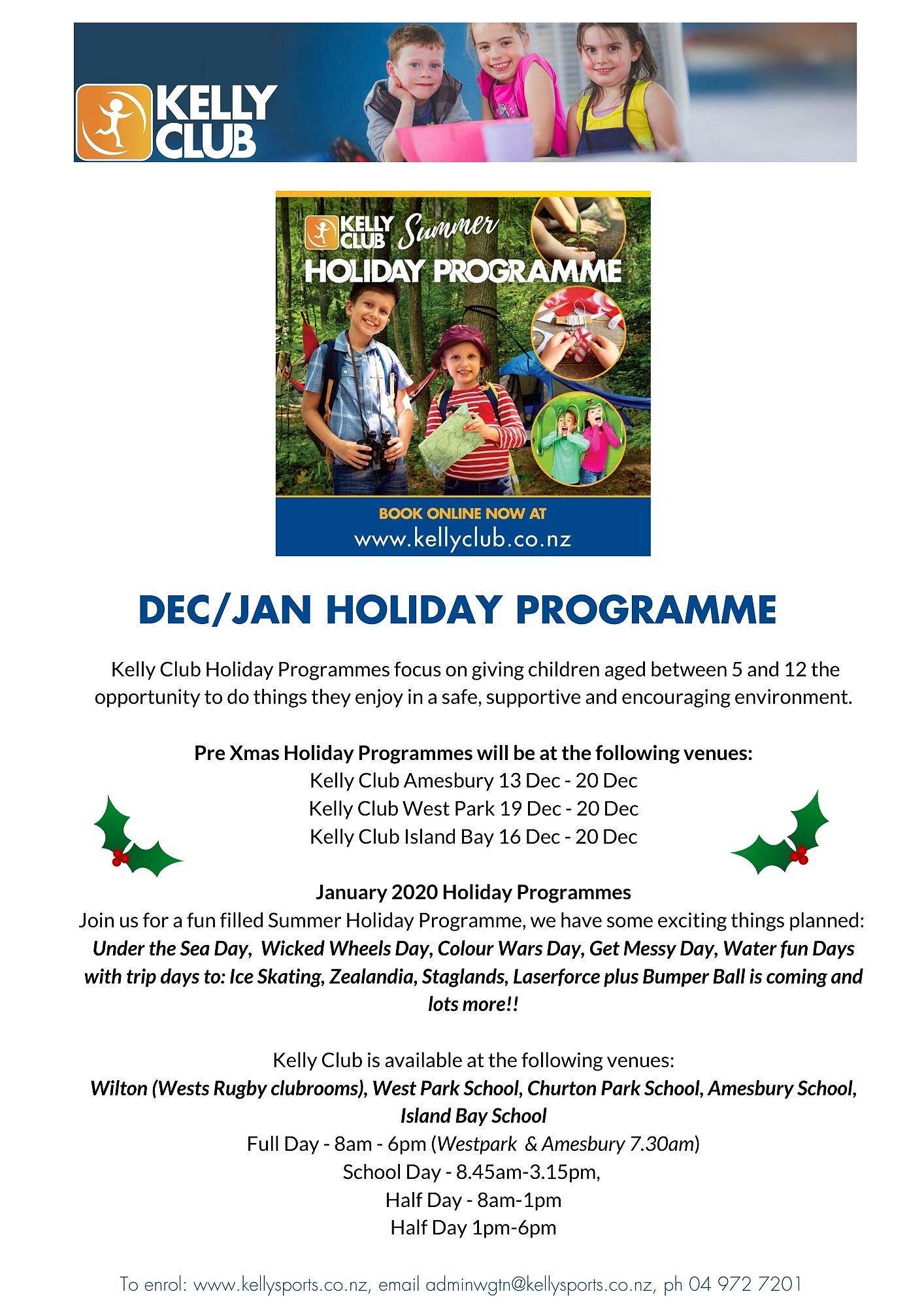 To enrol www.kellyclub.co.nz email [email protected] or call 04 972 7201