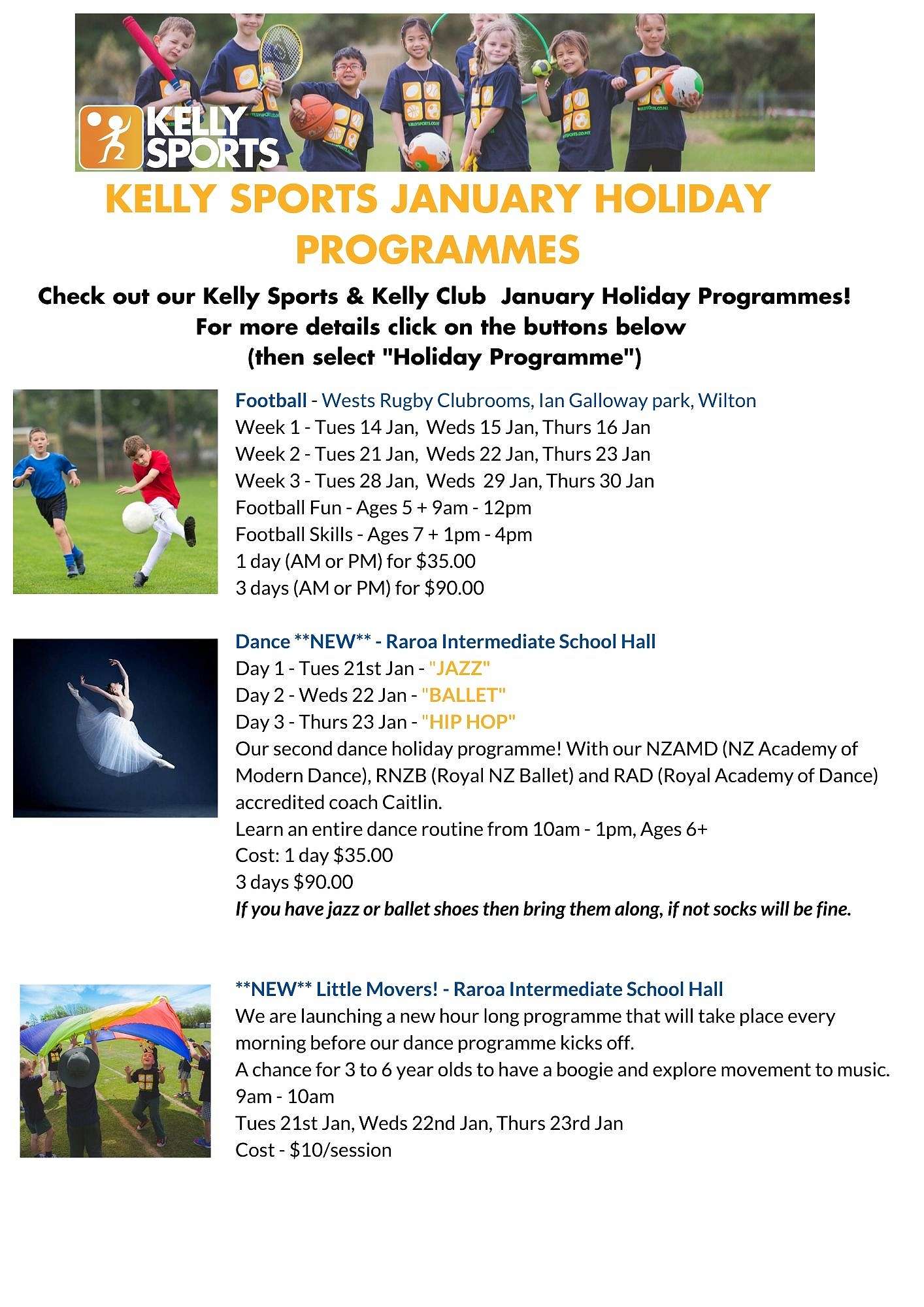 For full details and to enrol into our programmes visit www.kellysports.co.nz email [email protected] or call 04 972 7201.