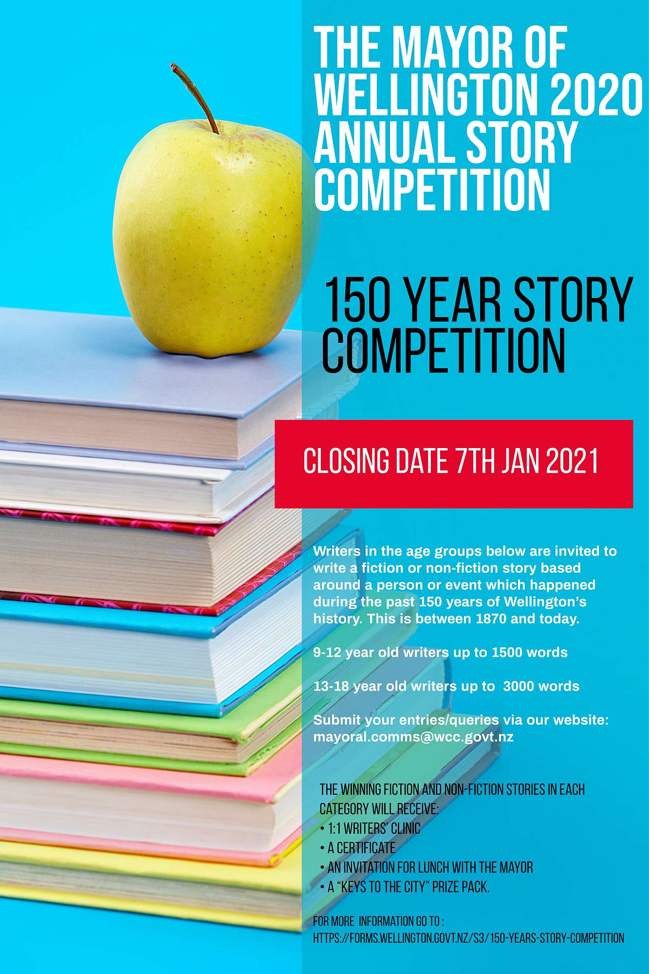 Write a fiction or non-fiction story, based around a person or event which happening during the past 150 years of Wellington’s history. This is between 1870 and today.