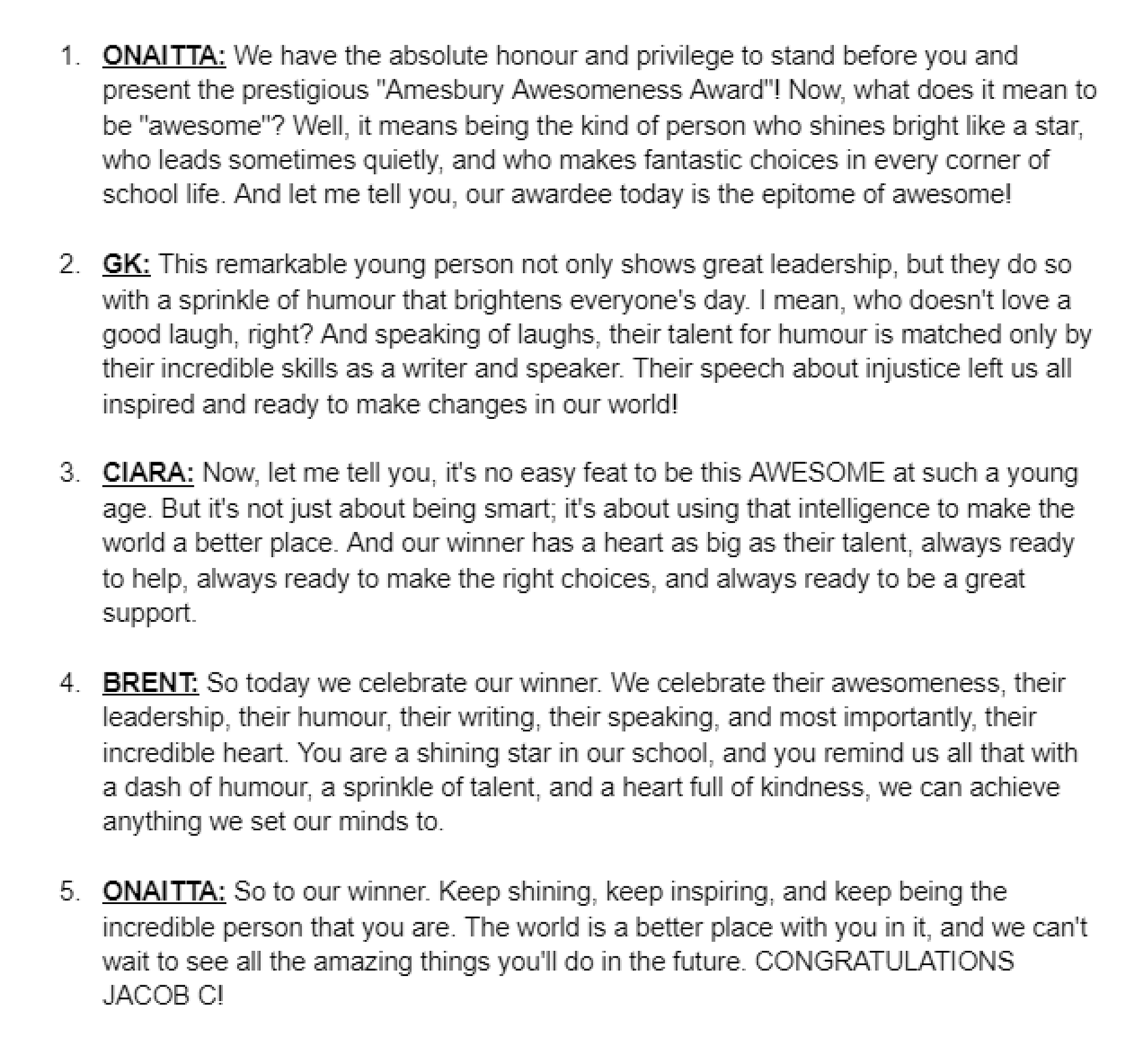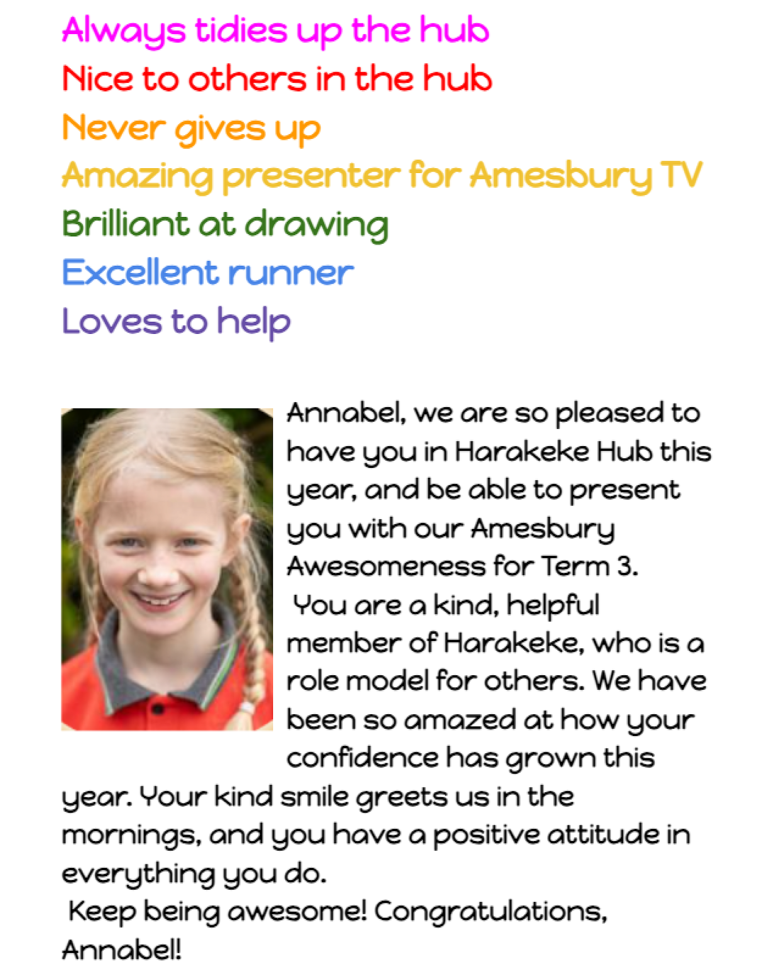And onto this term's deserving Amesbury Awesomeness Award recipients who were: