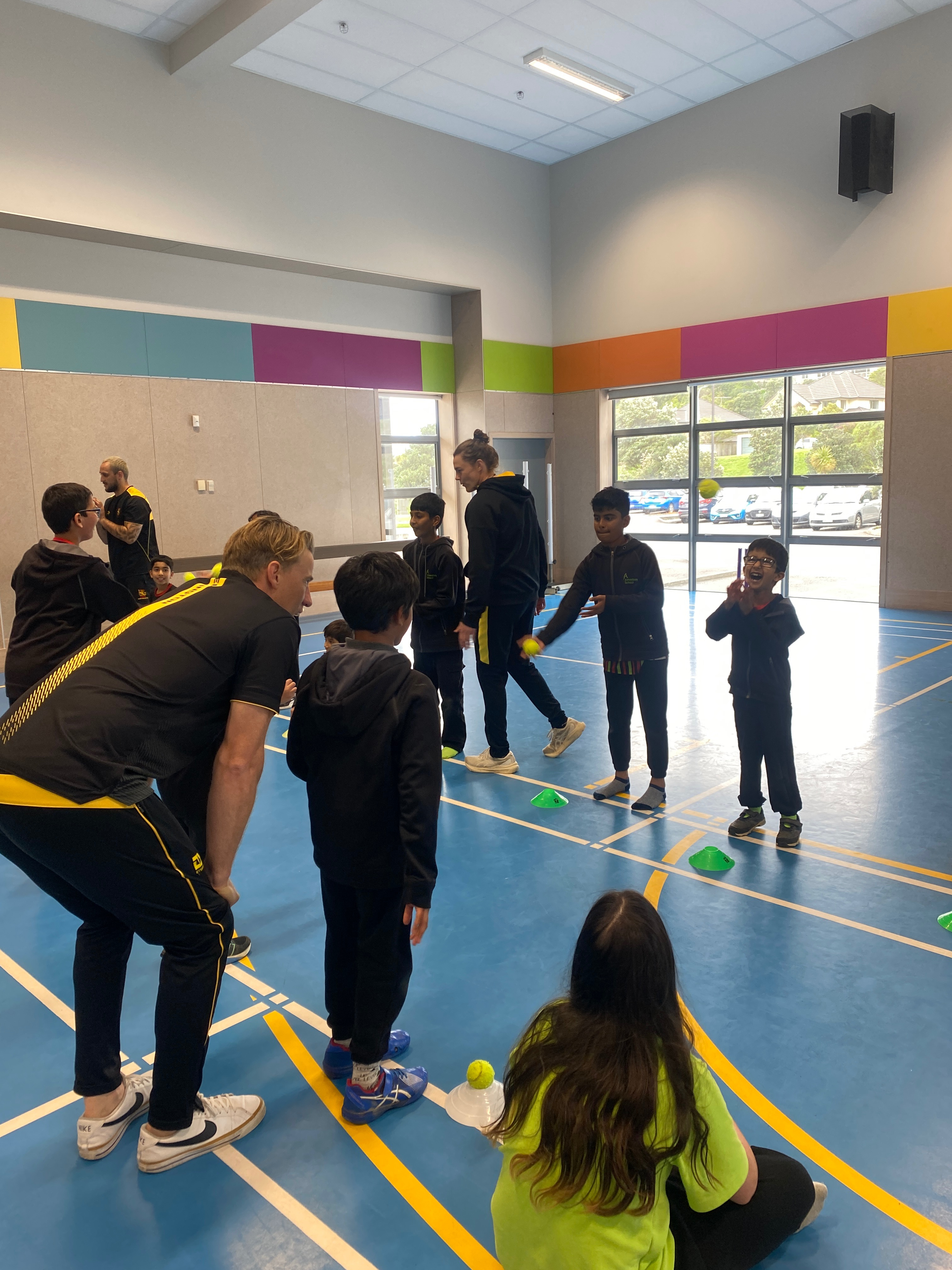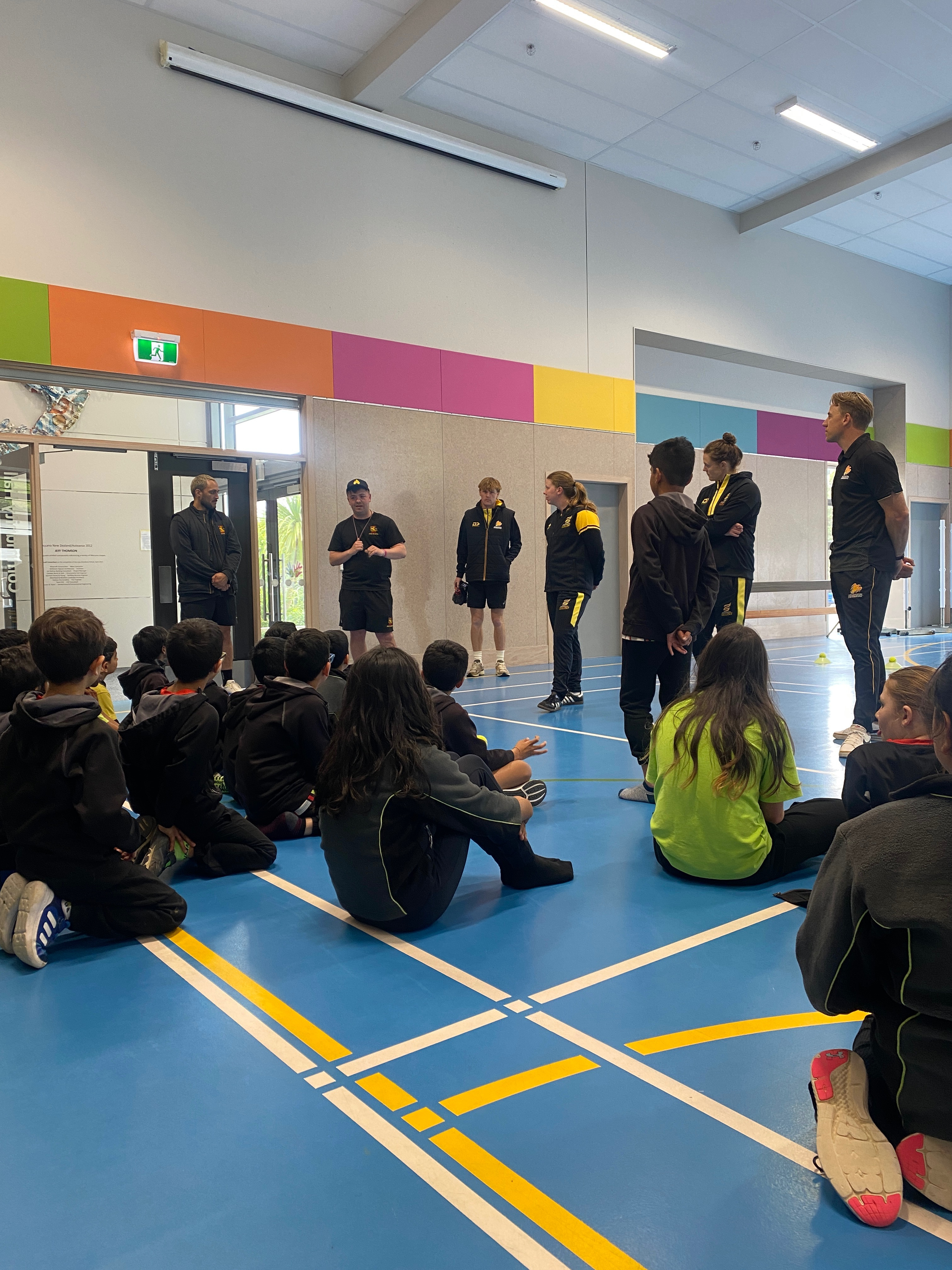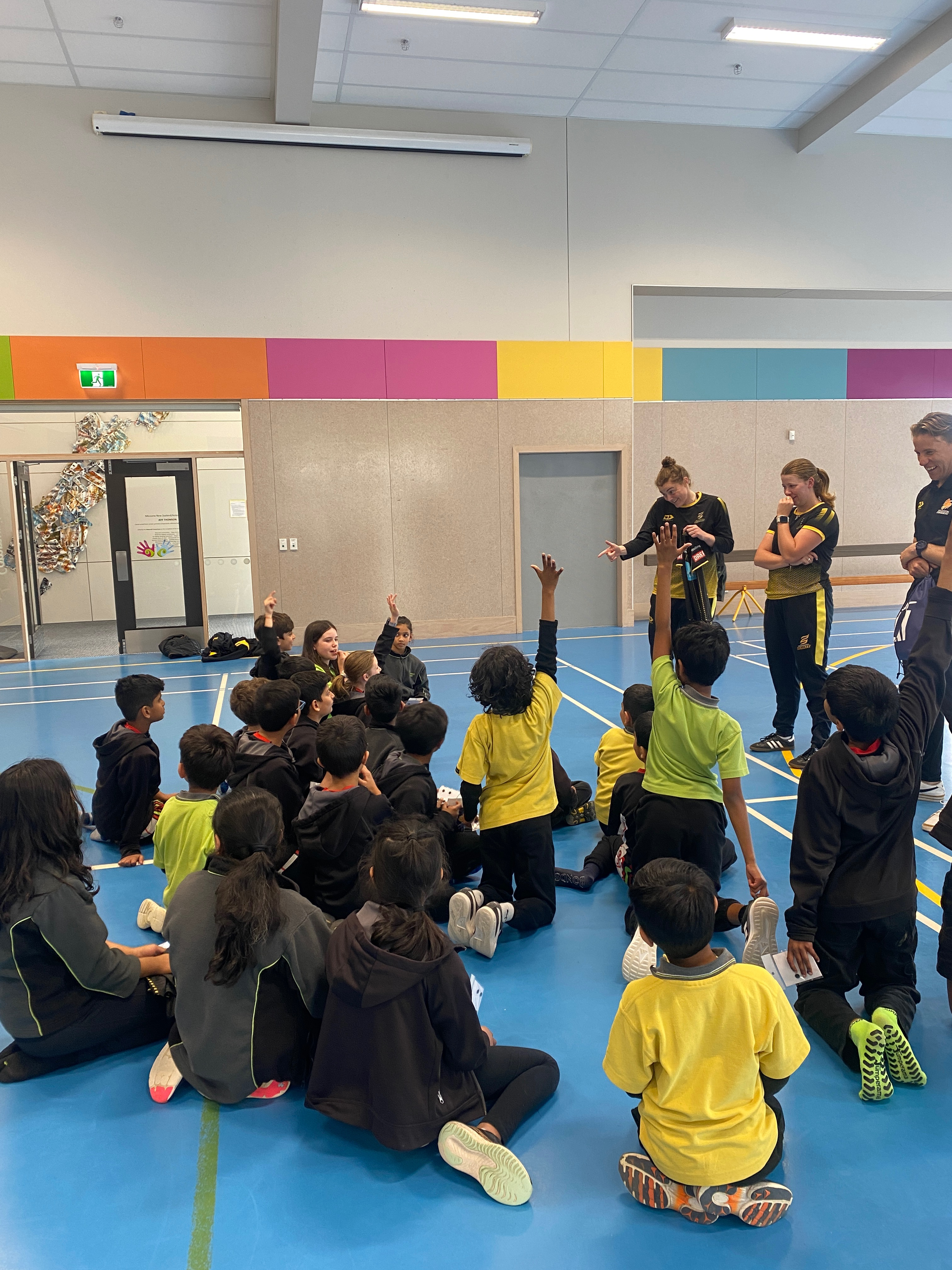 On Wednesday afternoon Amesbury had some very special visitors come in from the Wellington Firebirds & Wellington Blaze cricket teams. One of our senior students wrote a letter inviting the team to come in and visit, and they did just that.
