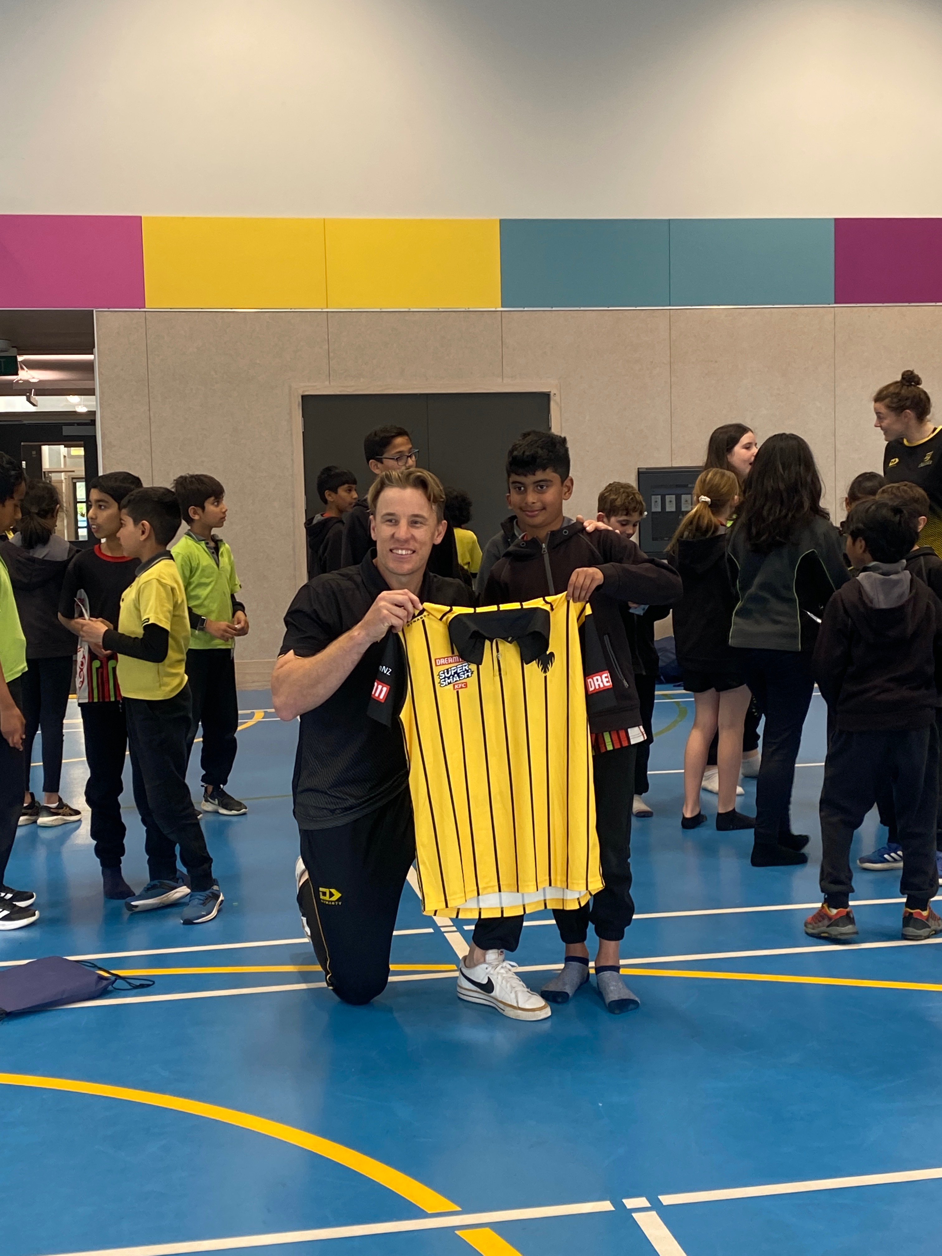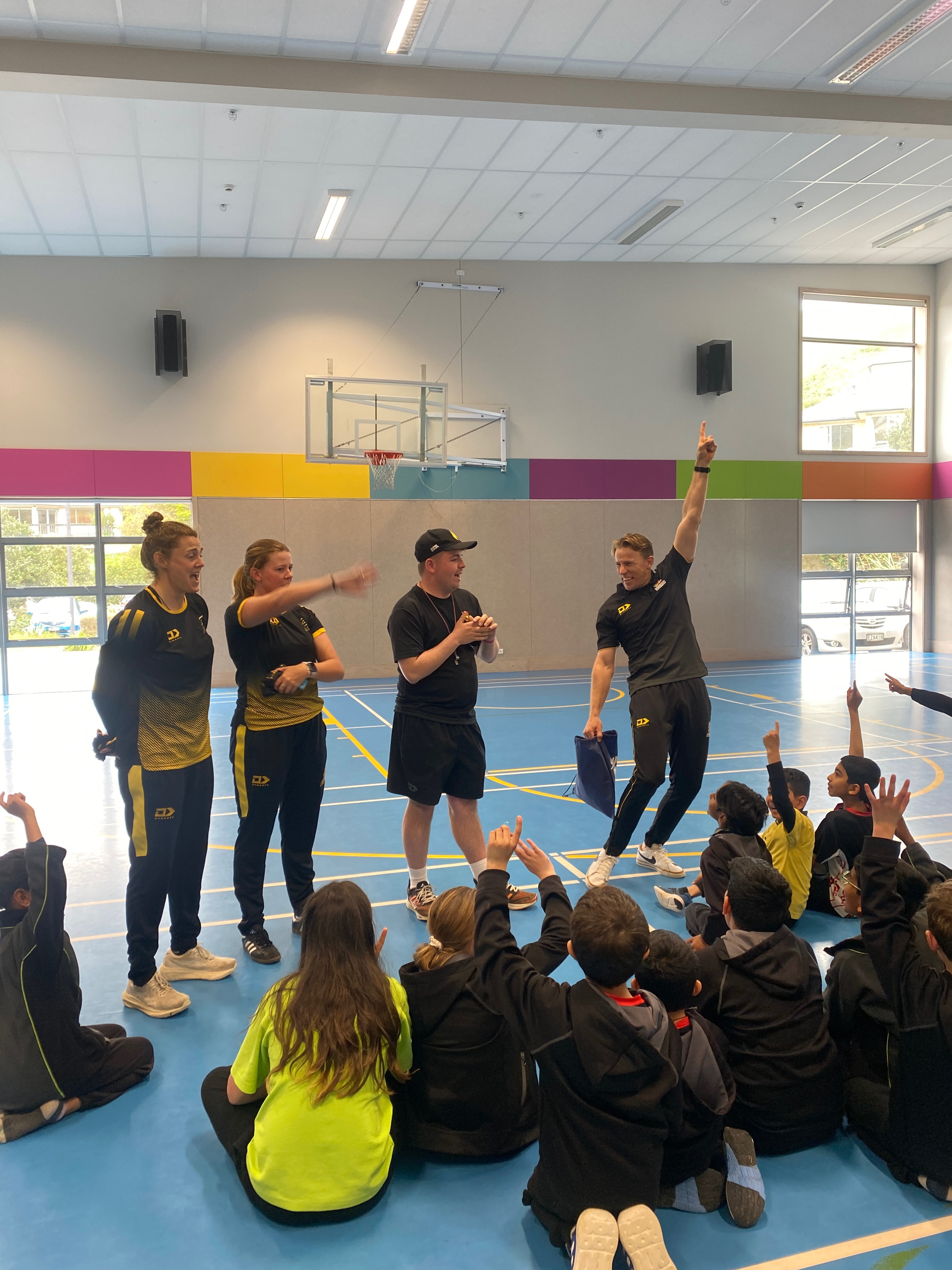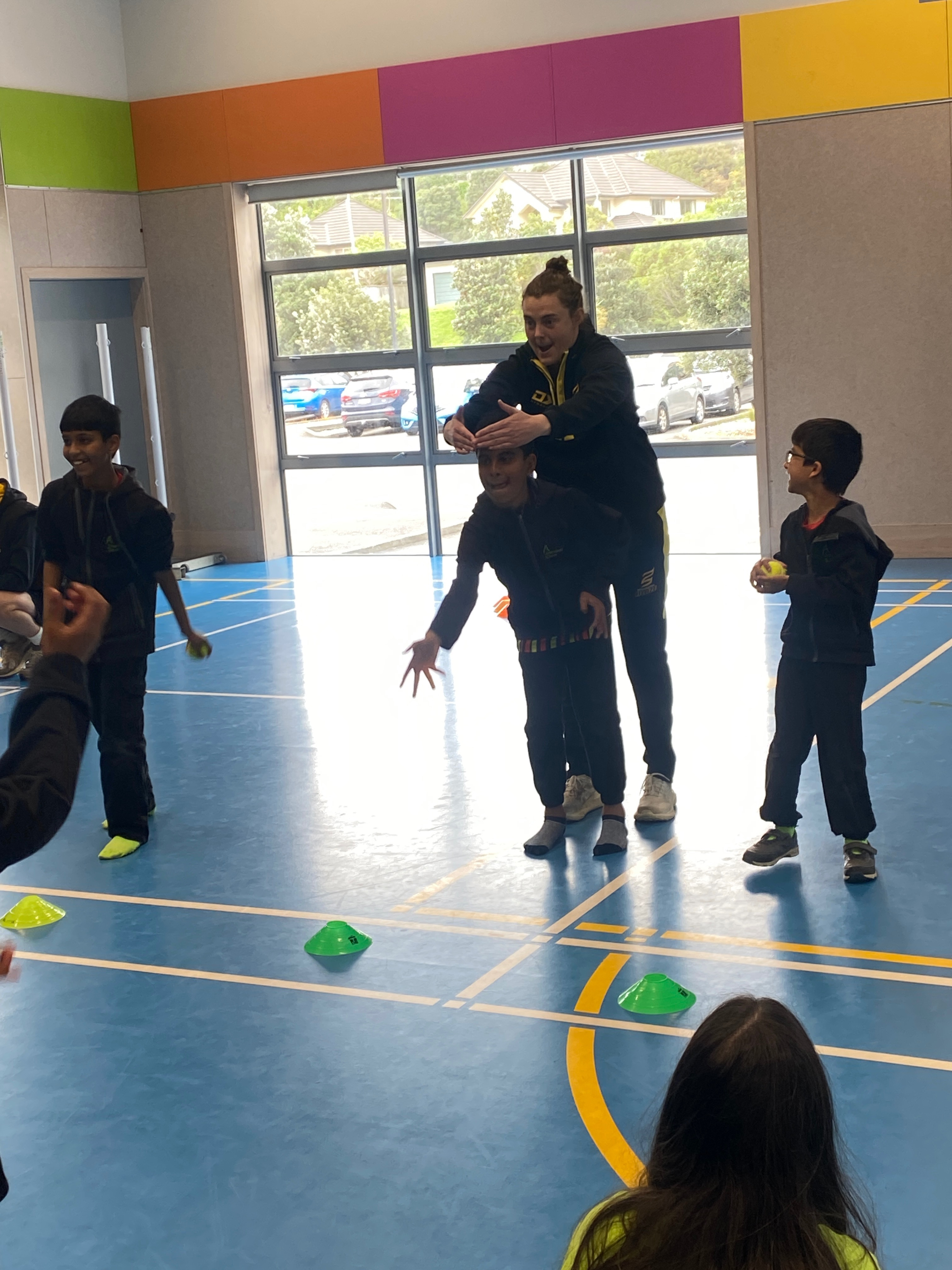 On Wednesday afternoon Amesbury had some very special visitors come in from the Wellington Firebirds & Wellington Blaze cricket teams. One of our senior students wrote a letter inviting the team to come in and visit, and they did just that.