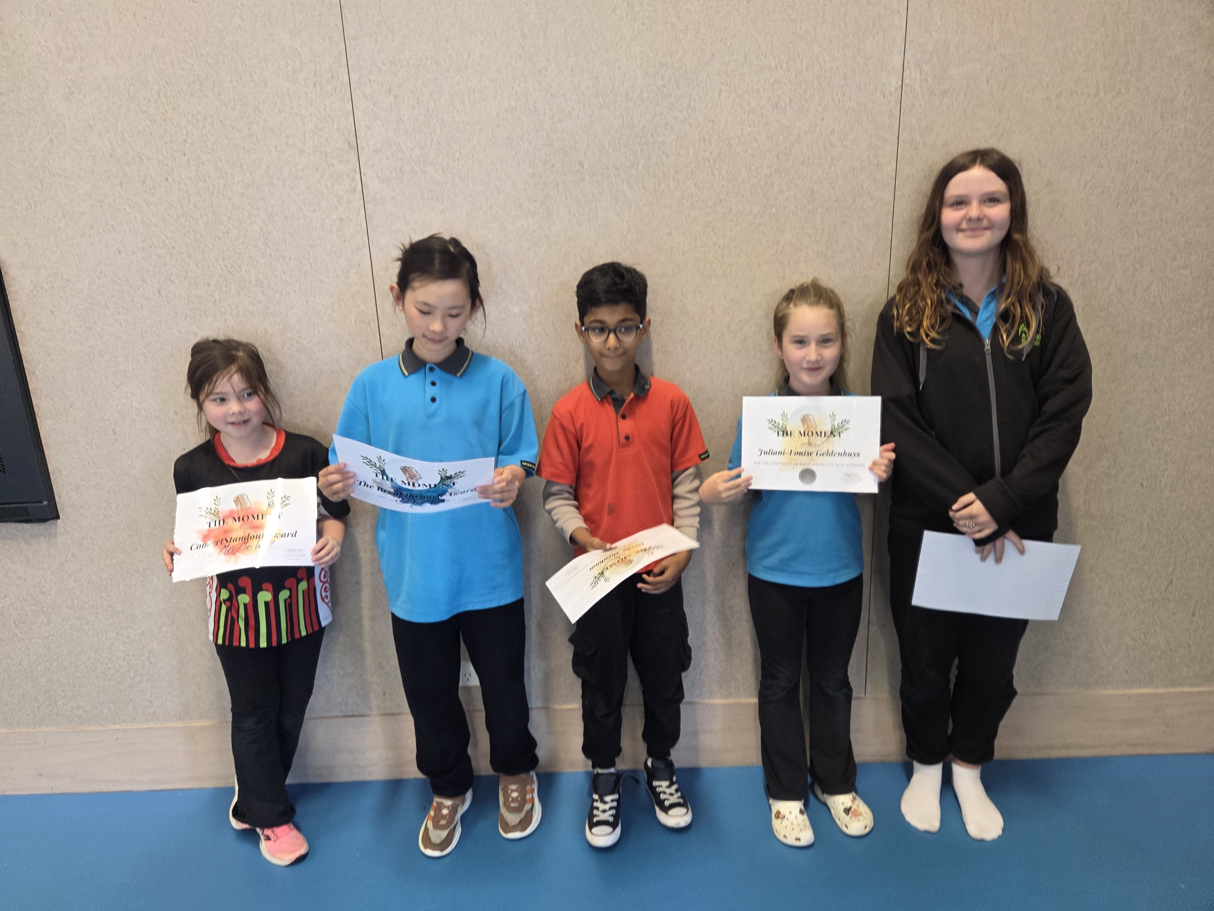 Shiloh is awarded the "Promising Artist" award for her solo piece "Ordinary Girl" in our term three vocal concert.