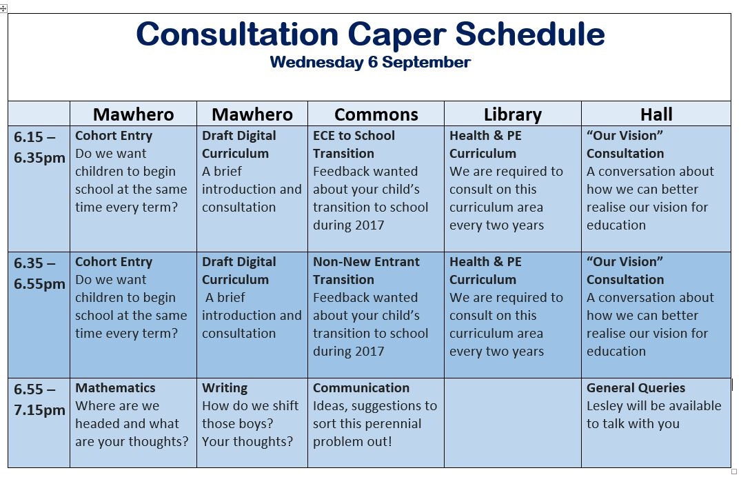 Join us in the Hall from 5.30 for a light meal, entertainment and a catch up. Consultations will start at 6.15pm. The kids can join Kelly Club for dinner and entertainment in Koru Hub, starting at 5.30.