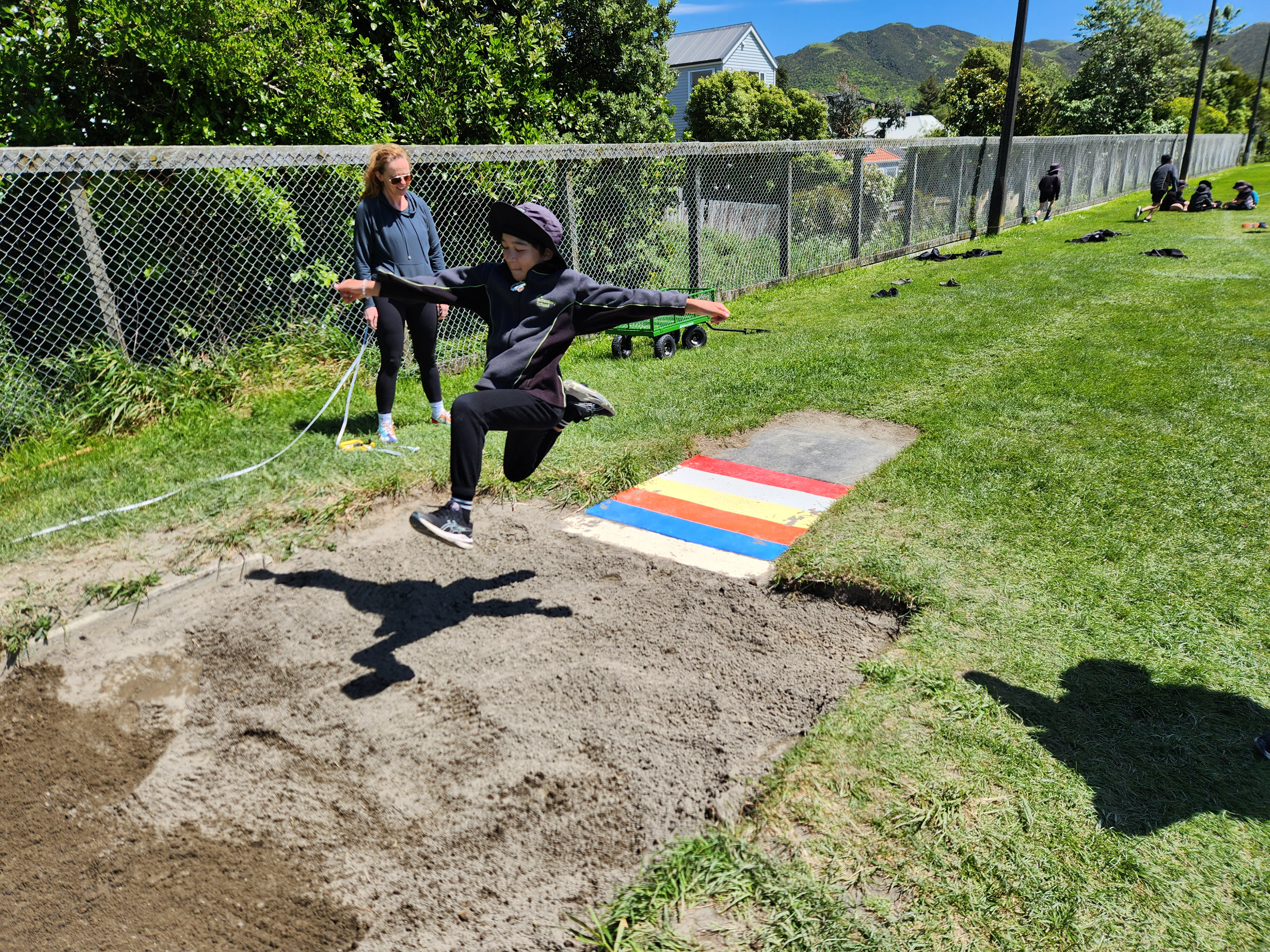 The two throwing events, quoits and vortex, were highly competitive too with no headwind to worry about. Tamariki jogged over to the other side of the park to compete in the long jump. After a bit of practice and tips, students increased their jump height and distance. The smiles on their faces as they landed in the soft sand said it all.