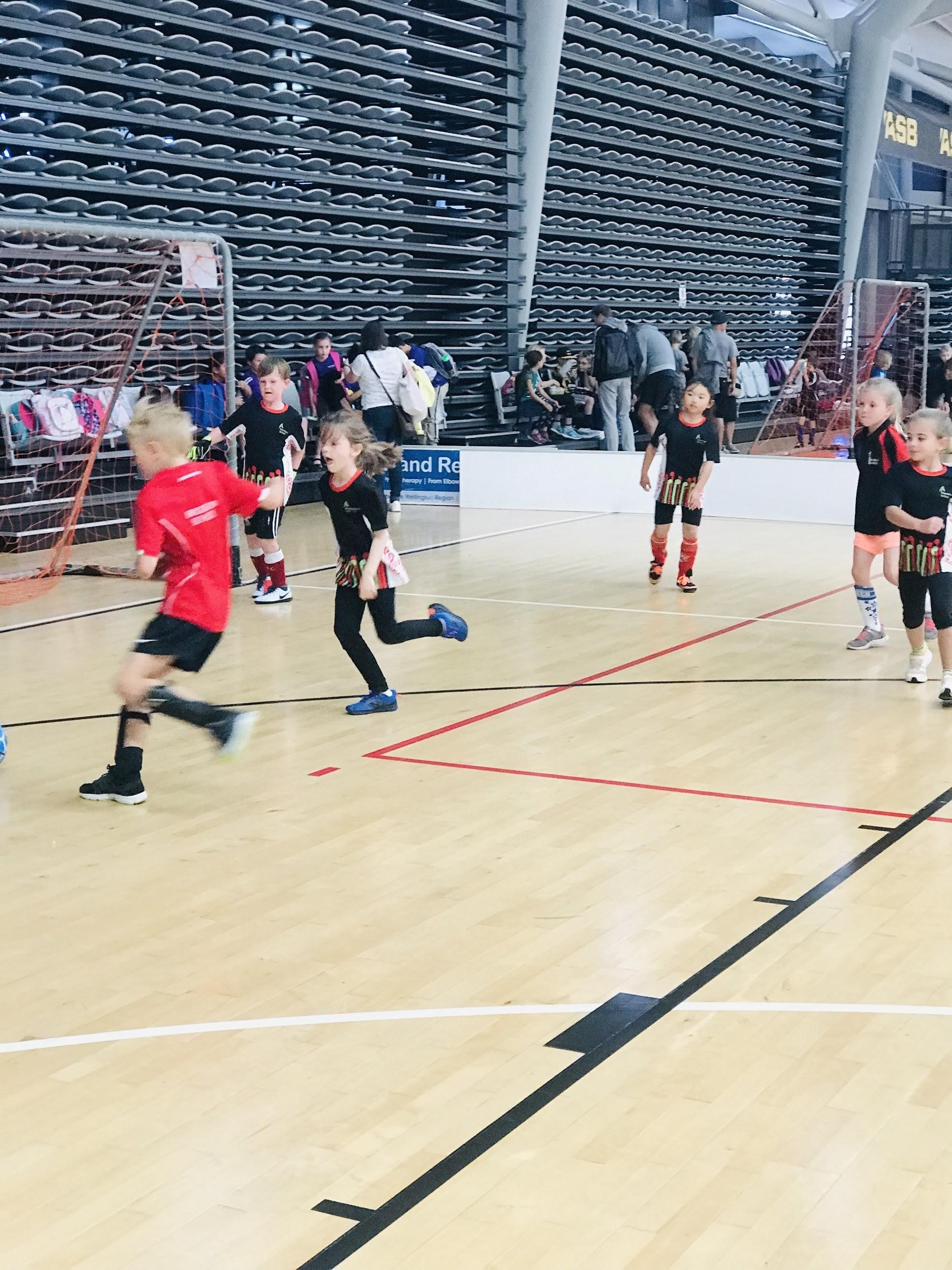 It was a busy day with about ten short games against schools from around the Wellington area. This was a huge success as both students - new to futsal and those well-seasoned in futsal - had an amazing experience getting on the court, kicking lots of futsal balls and working as a team.