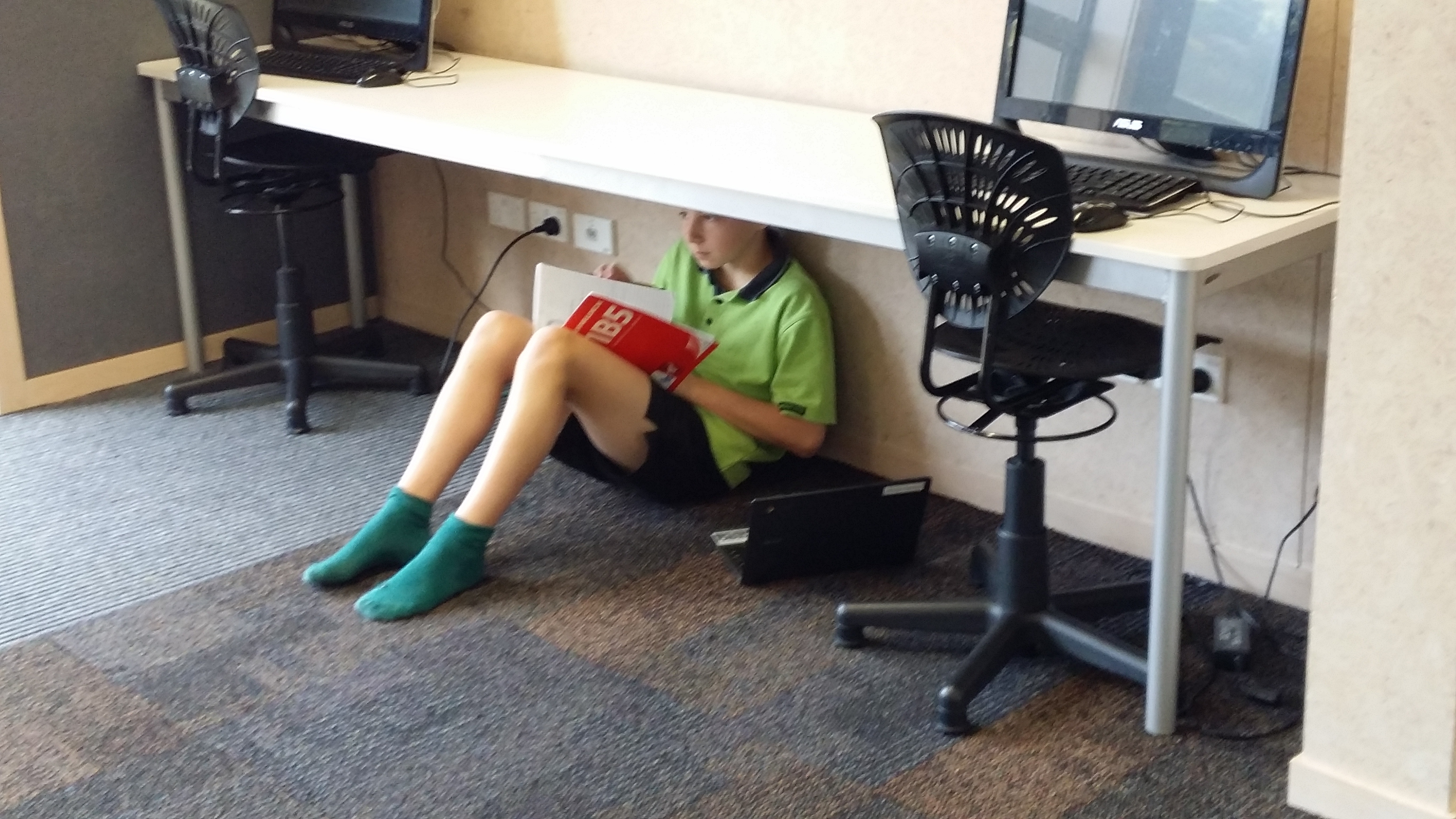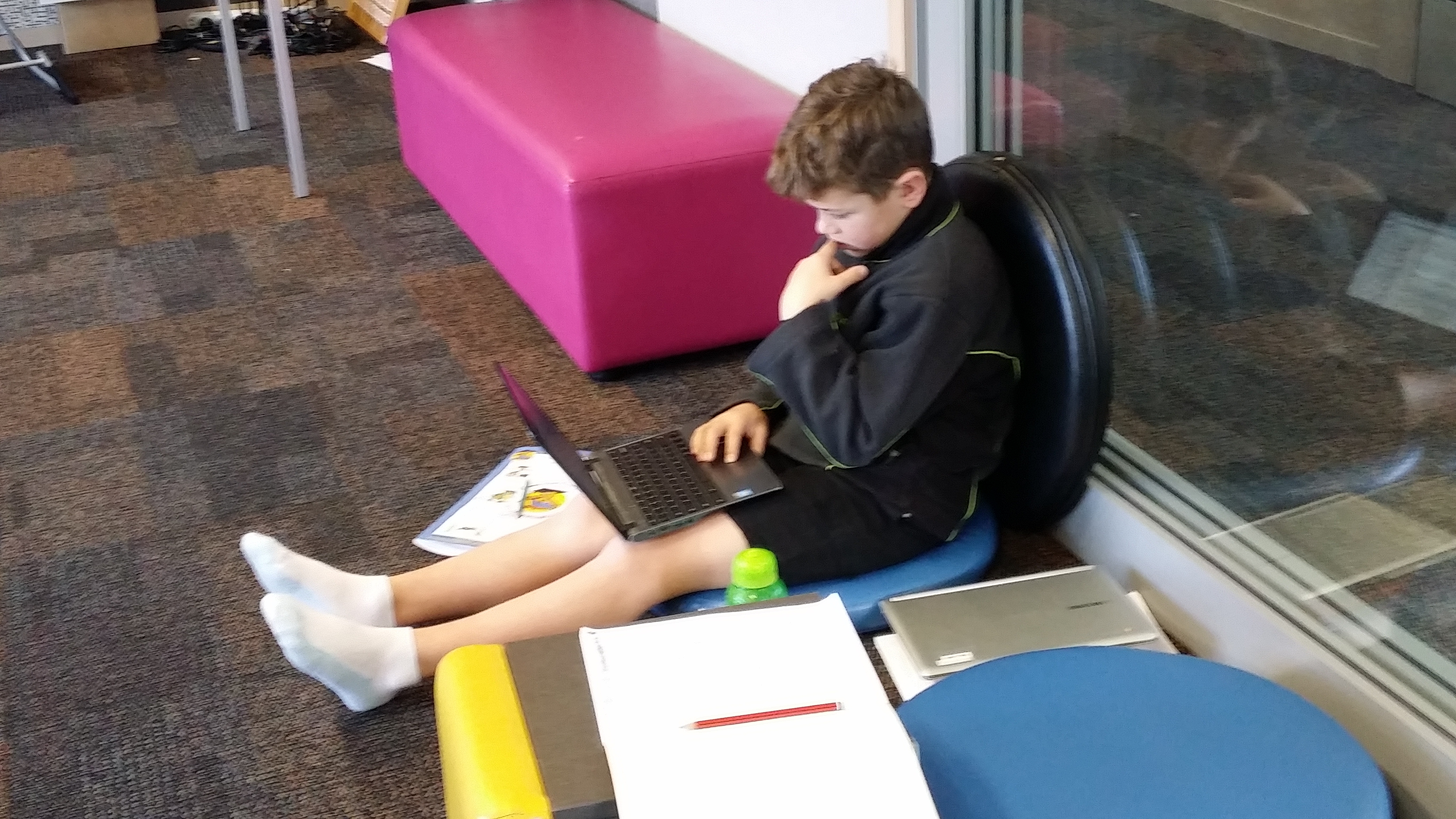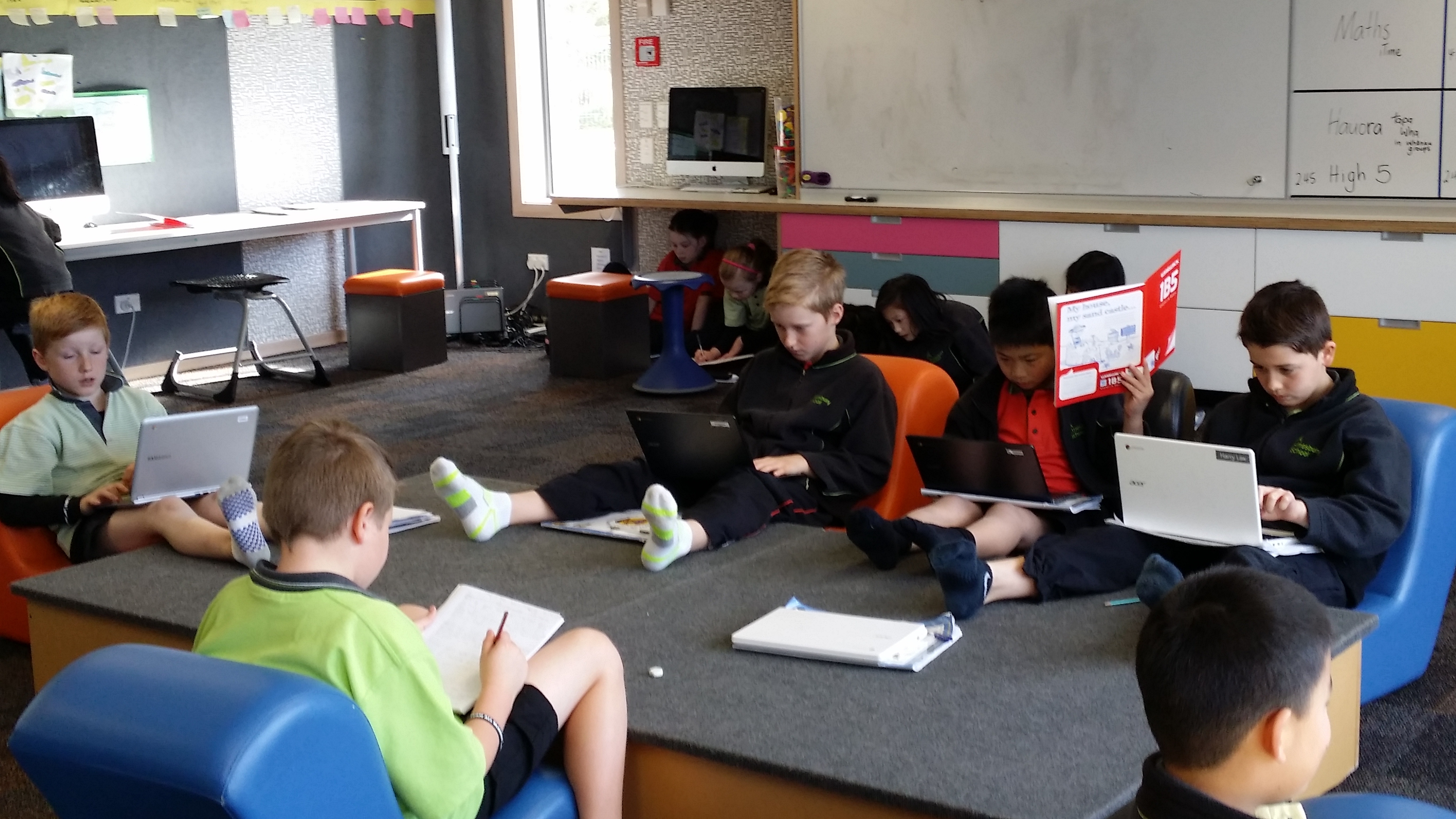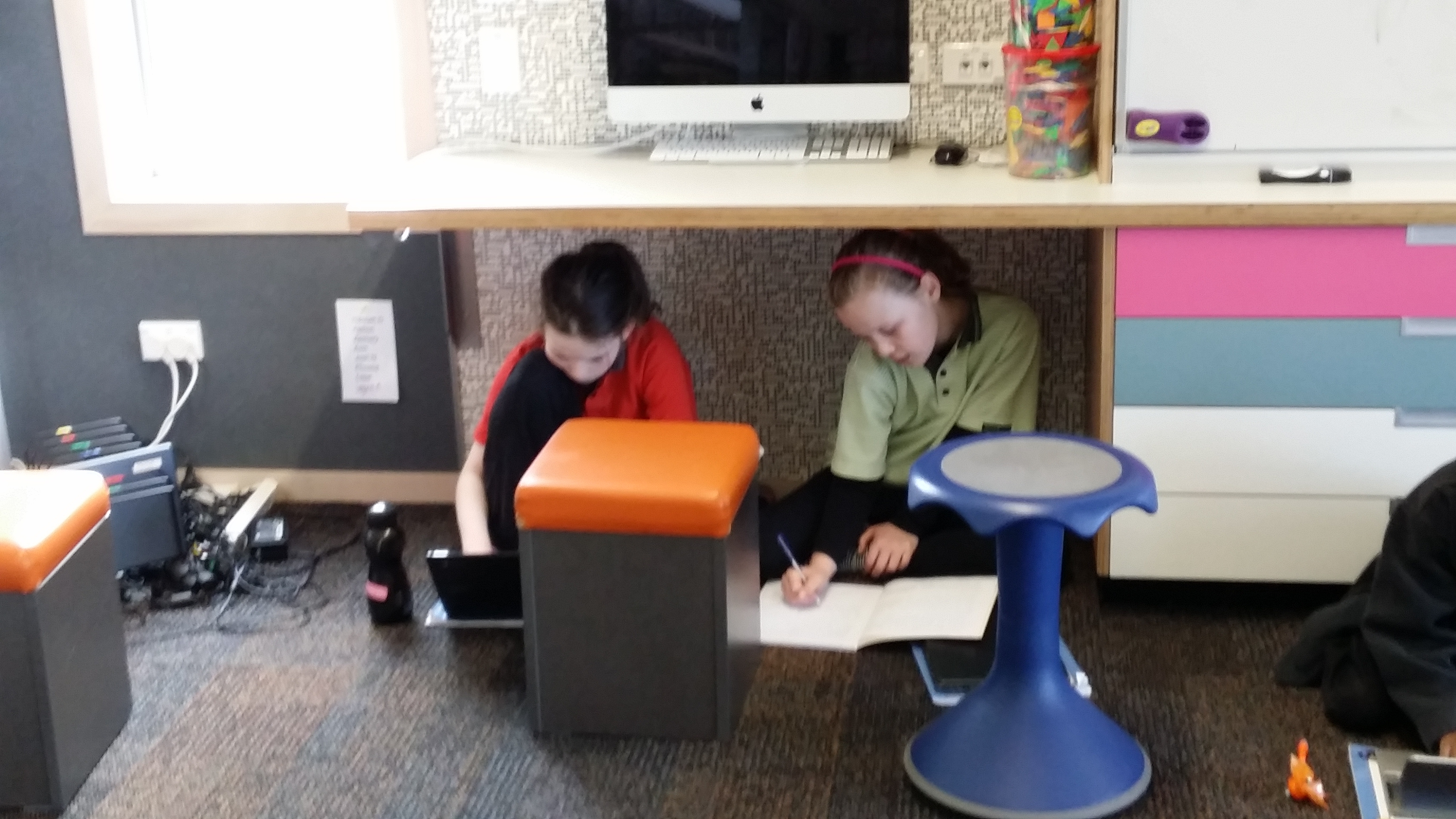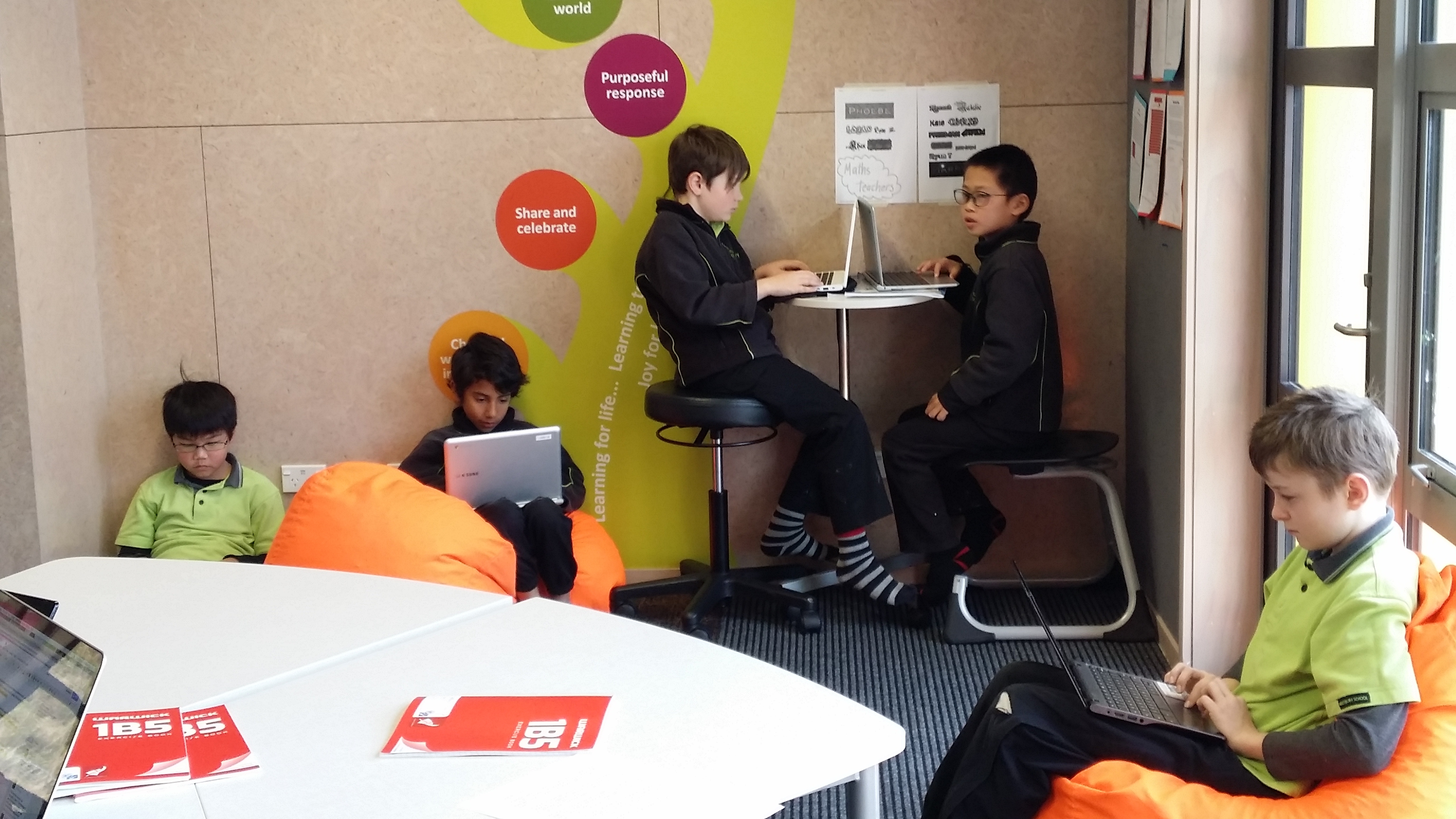 These metaphors have never been discussed with students, yet it is interesting that when you walk around the school, you can see that students have created just these types of spaces to help them with their learning. Check out the photos below and see if you can find examples of watering holes, campfires and caves. By the way, what was also noticeable as I wandered through the school, was how on task and engaged in their learning students were.