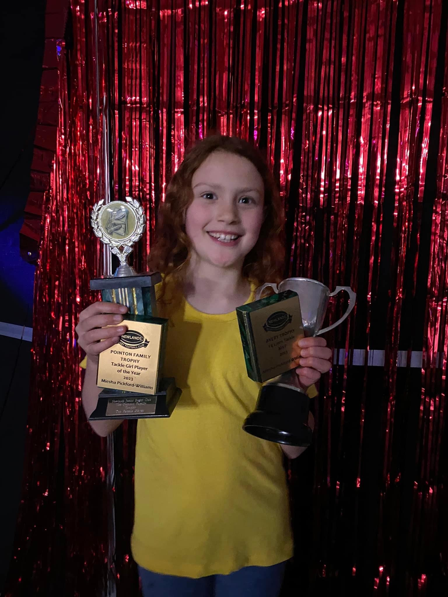 A few weeks ago Miesha was awarded "Most Valuable Player" for her team and then "Best Female Tackle Player for 2023" for the club. This is a huge achievement and we are all very proud of her.