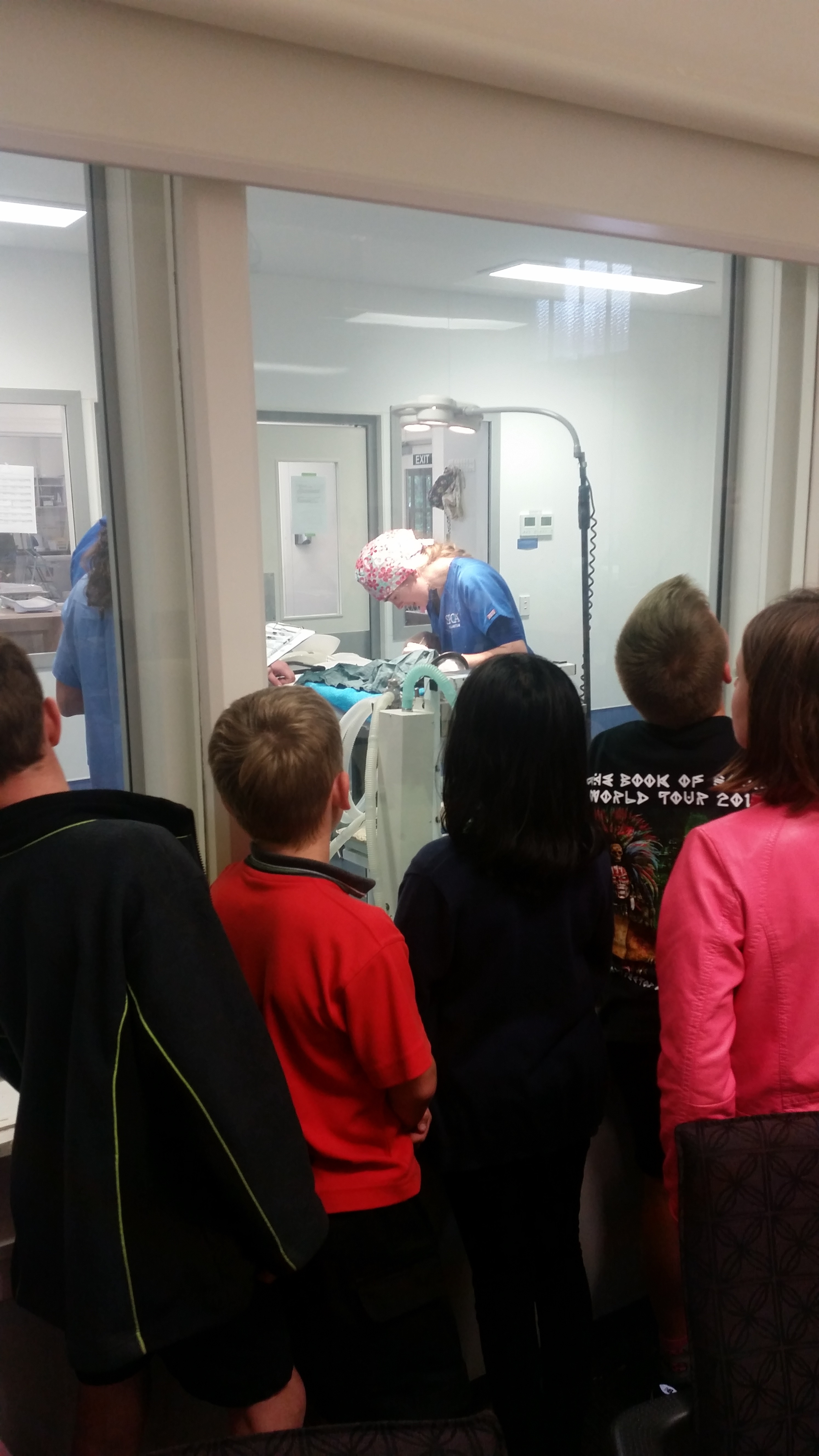 The picture below is from the visit of the new elective group this term to the SPCA animal hospital and shelter in Newtown last Friday. The group spent an hour at the shelter, taking a tour and finding out more about the SPCA cares for the animals. The picture was taken when most of the group took up the SPCA's offer of viewing surgery on a rabbit - very exciting!