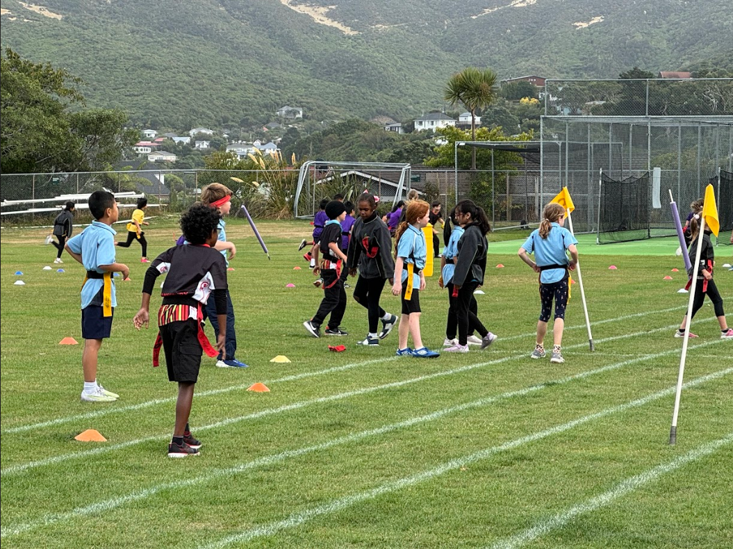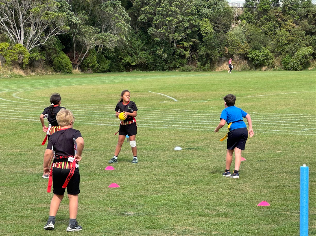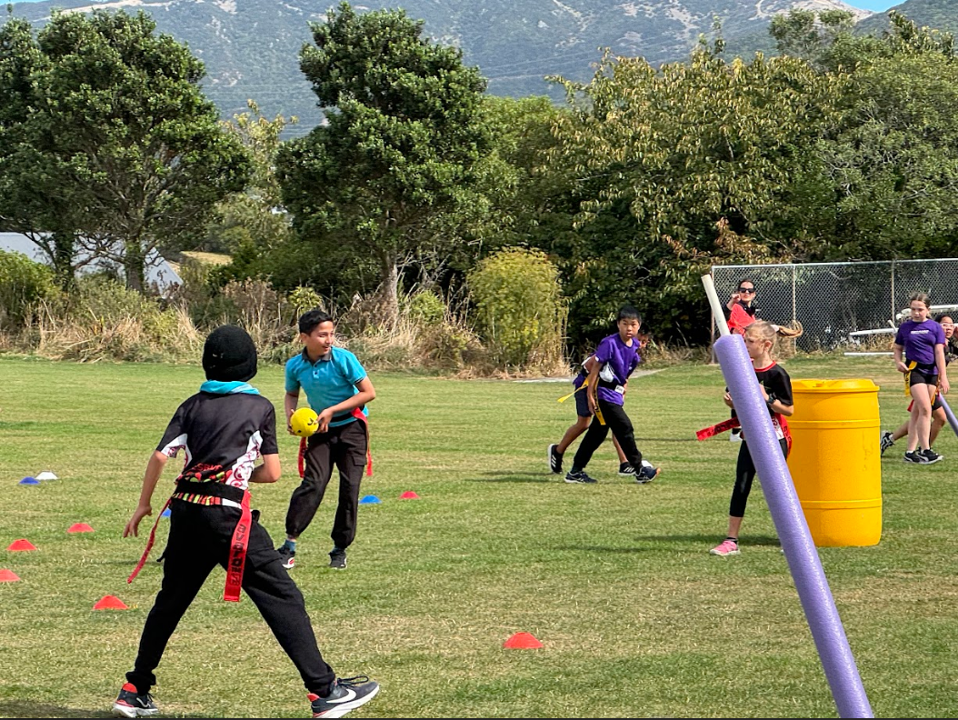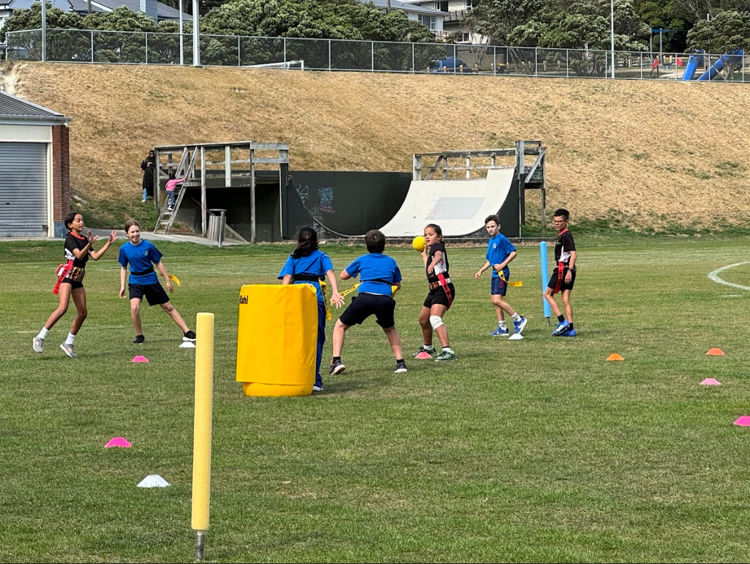 This term, the whole school learnt how to play Kī-o-Rahi through sessions led by Kelly Sports. It involved a range of physical movements such as running, sidestepping, and evasive manoeuvres with the Kī (ball). Students took part in sessions designed to improve their one-handed and two-handed passing and catching techniques, and their blocking, jumping, and accurate shooting skills. They learnt how to play strategically as the tag ripping game encouraged them to anticipate opponents' movements, analyse game situations, and make quick decisions. Alongside these skills, we saw how they built on their communication and teamwork skills in a new environment.