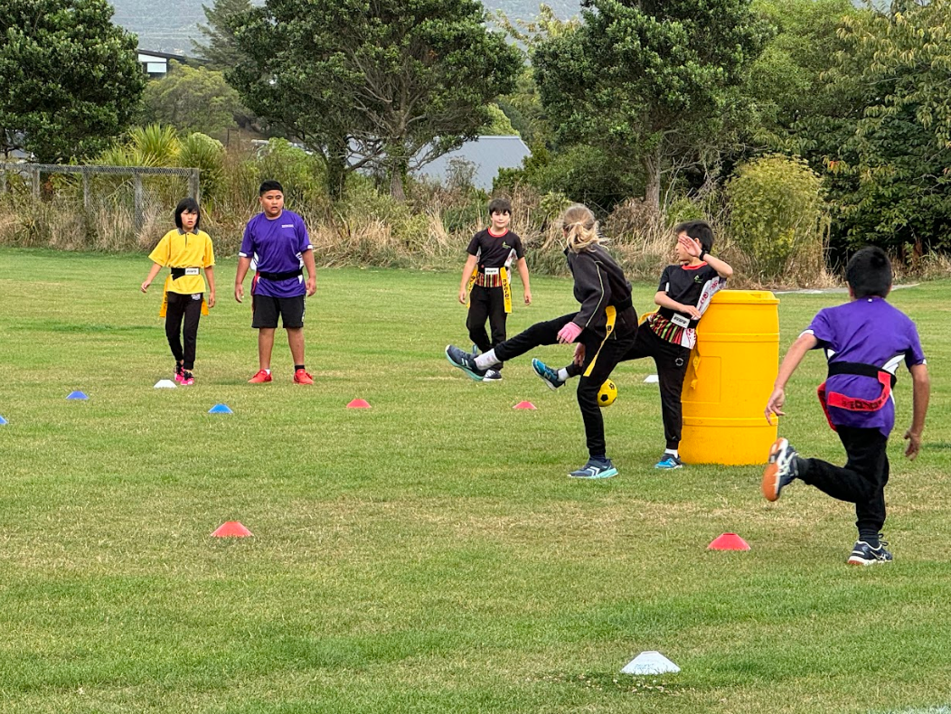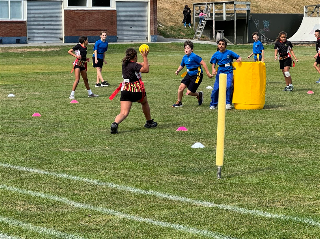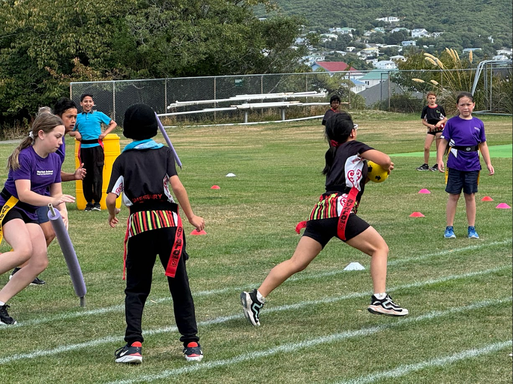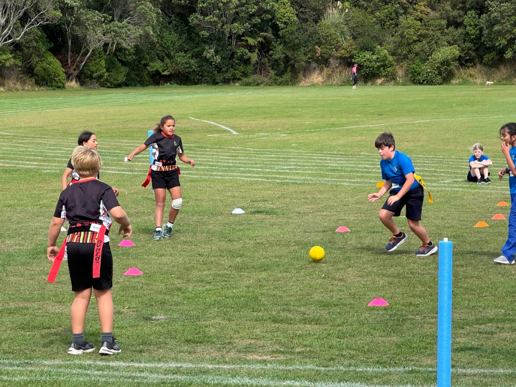 This term, the whole school learnt how to play Kī-o-Rahi through sessions led by Kelly Sports. It involved a range of physical movements such as running, sidestepping, and evasive manoeuvres with the Kī (ball). Students took part in sessions designed to improve their one-handed and two-handed passing and catching techniques, and their blocking, jumping, and accurate shooting skills. They learnt how to play strategically as the tag ripping game encouraged them to anticipate opponents' movements, analyse game situations, and make quick decisions. Alongside these skills, we saw how they built on their communication and teamwork skills in a new environment.