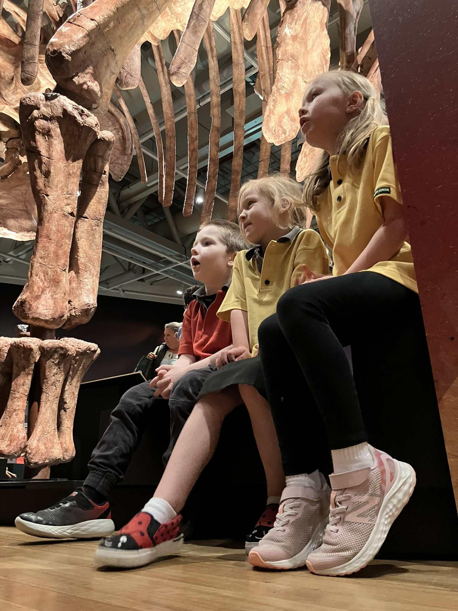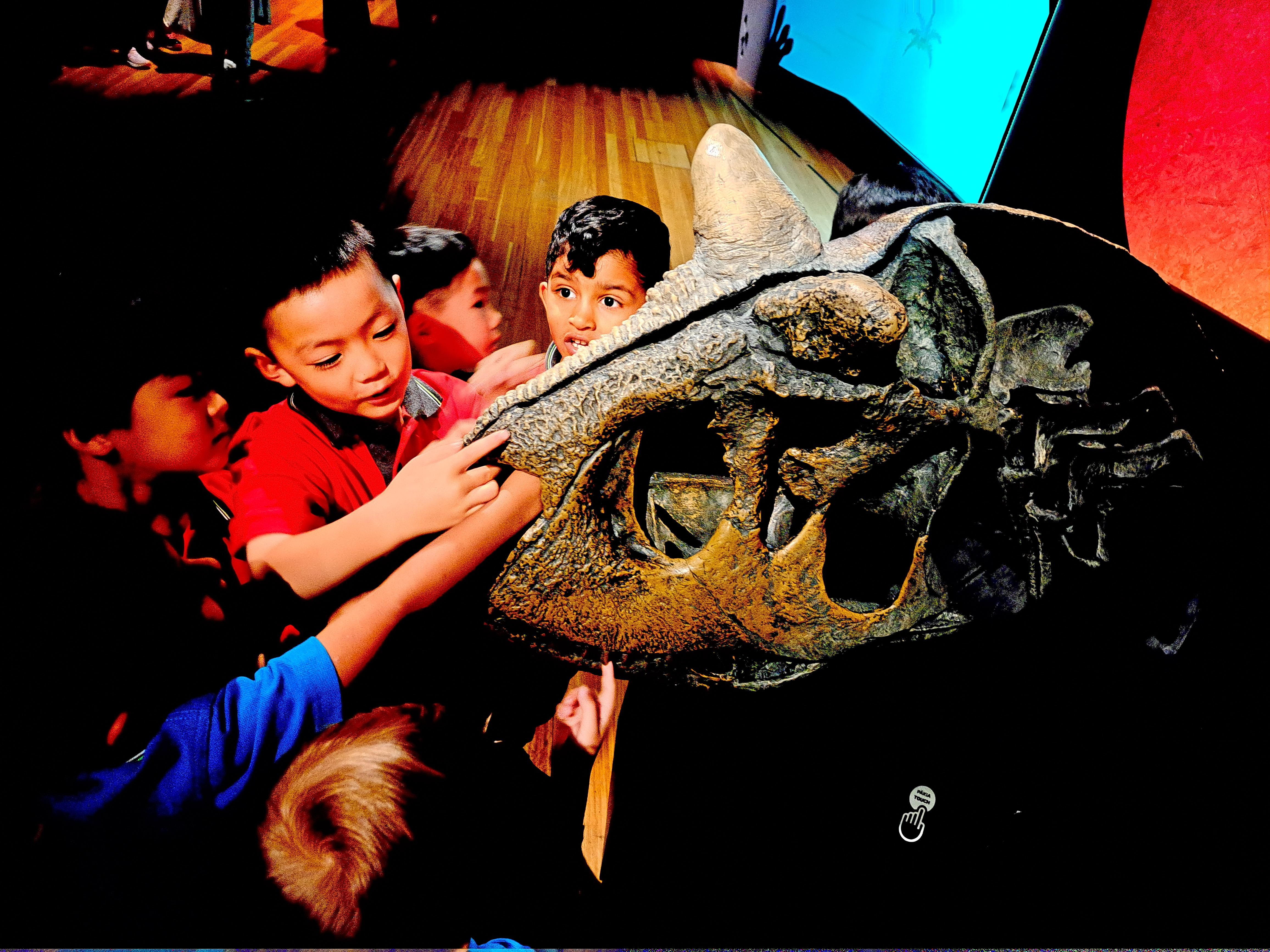We could touch the blue dinosaur bones.