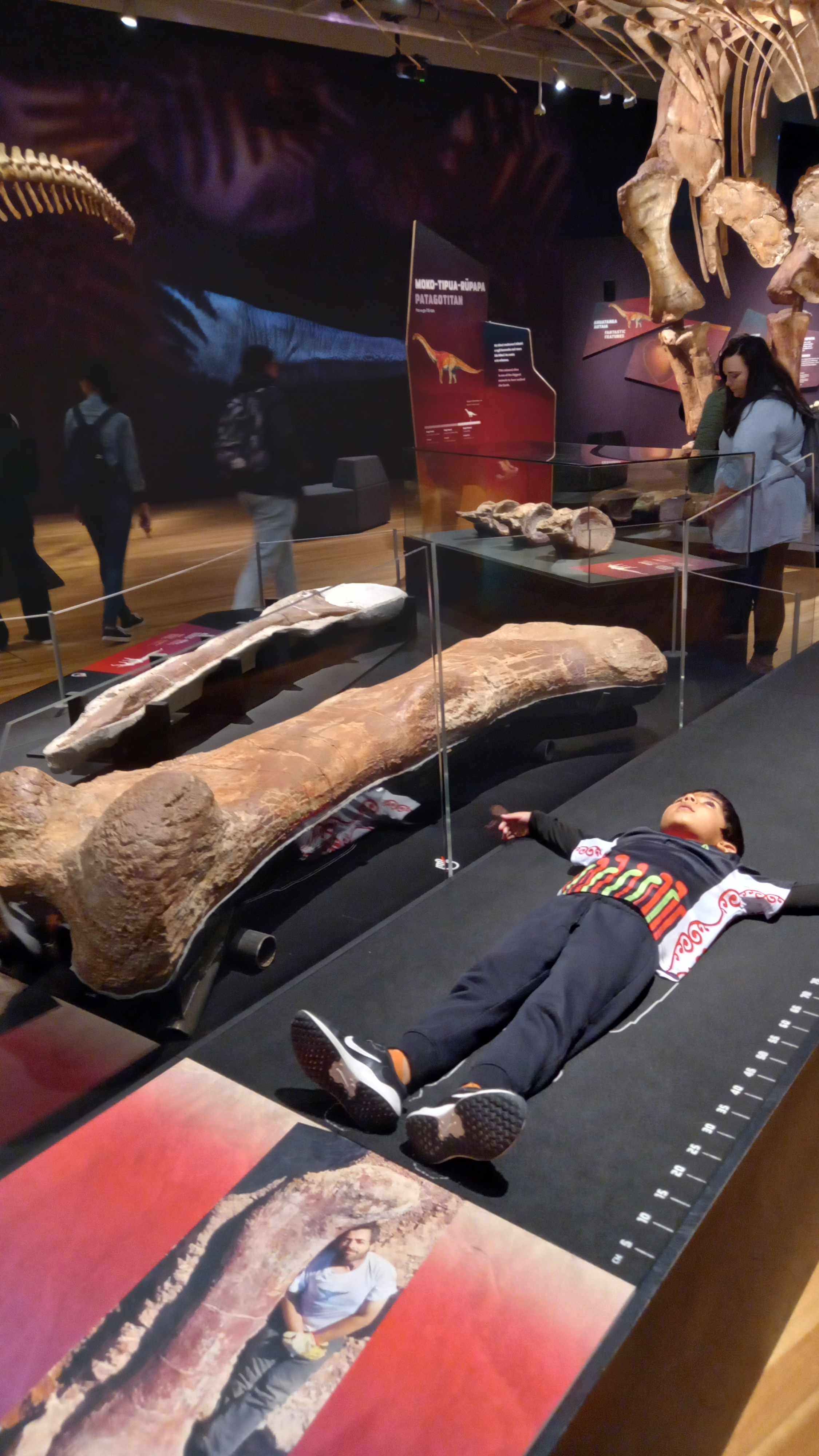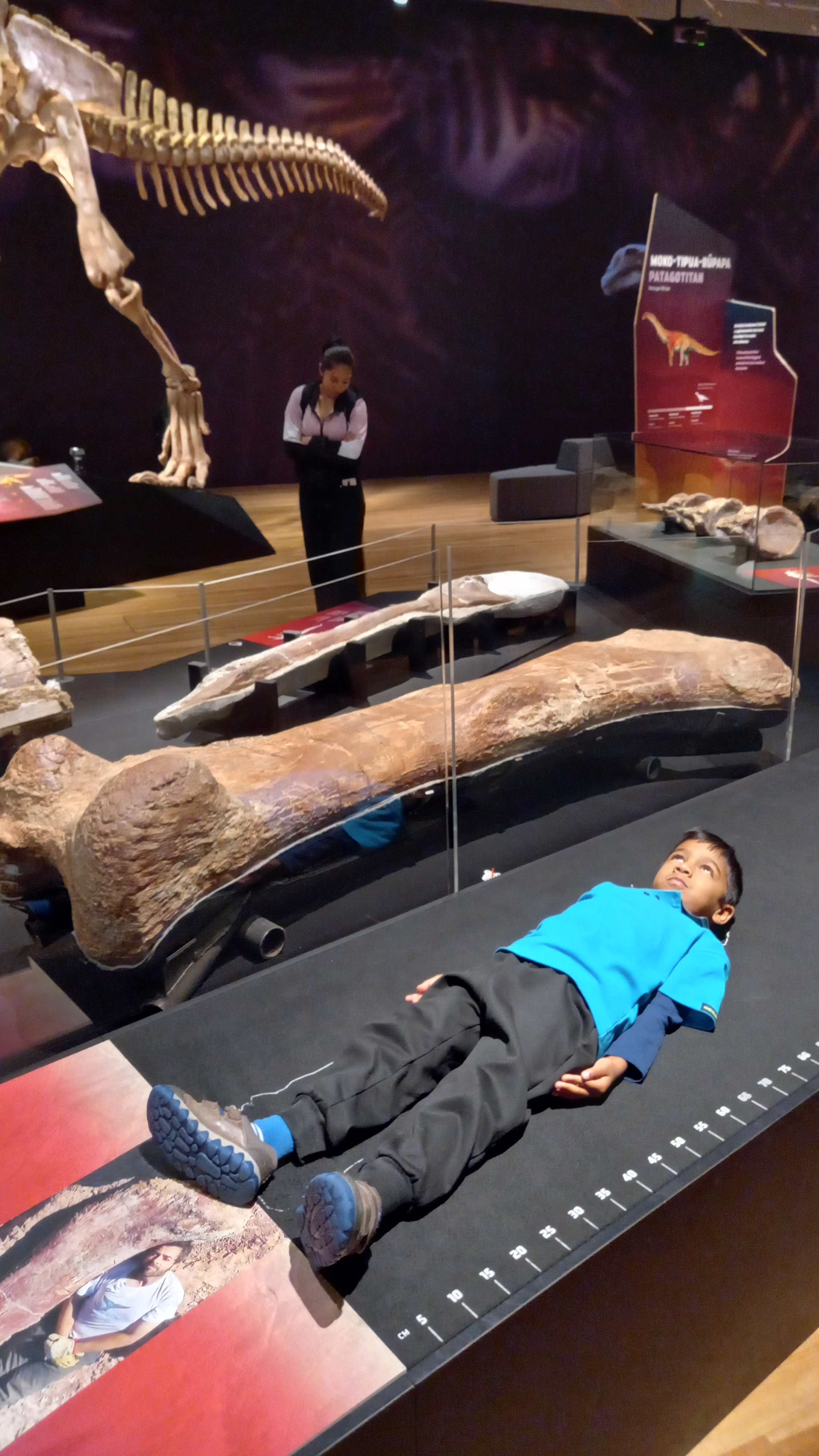 There was a ruler to measure the dinosaur's legs. We also saw dinosaur egg fossils.