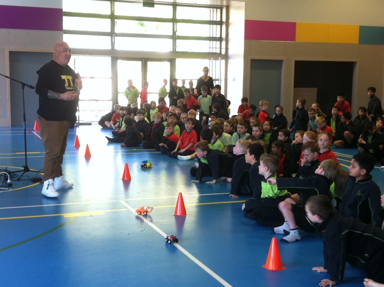 Challenge - two children were asked to participant in a challenge where they navigated a remote control car through obstacles then they had to do this with their eyes closed, being guided by the large group. The key message was guide yourself, have your eyes open. I believe in me!