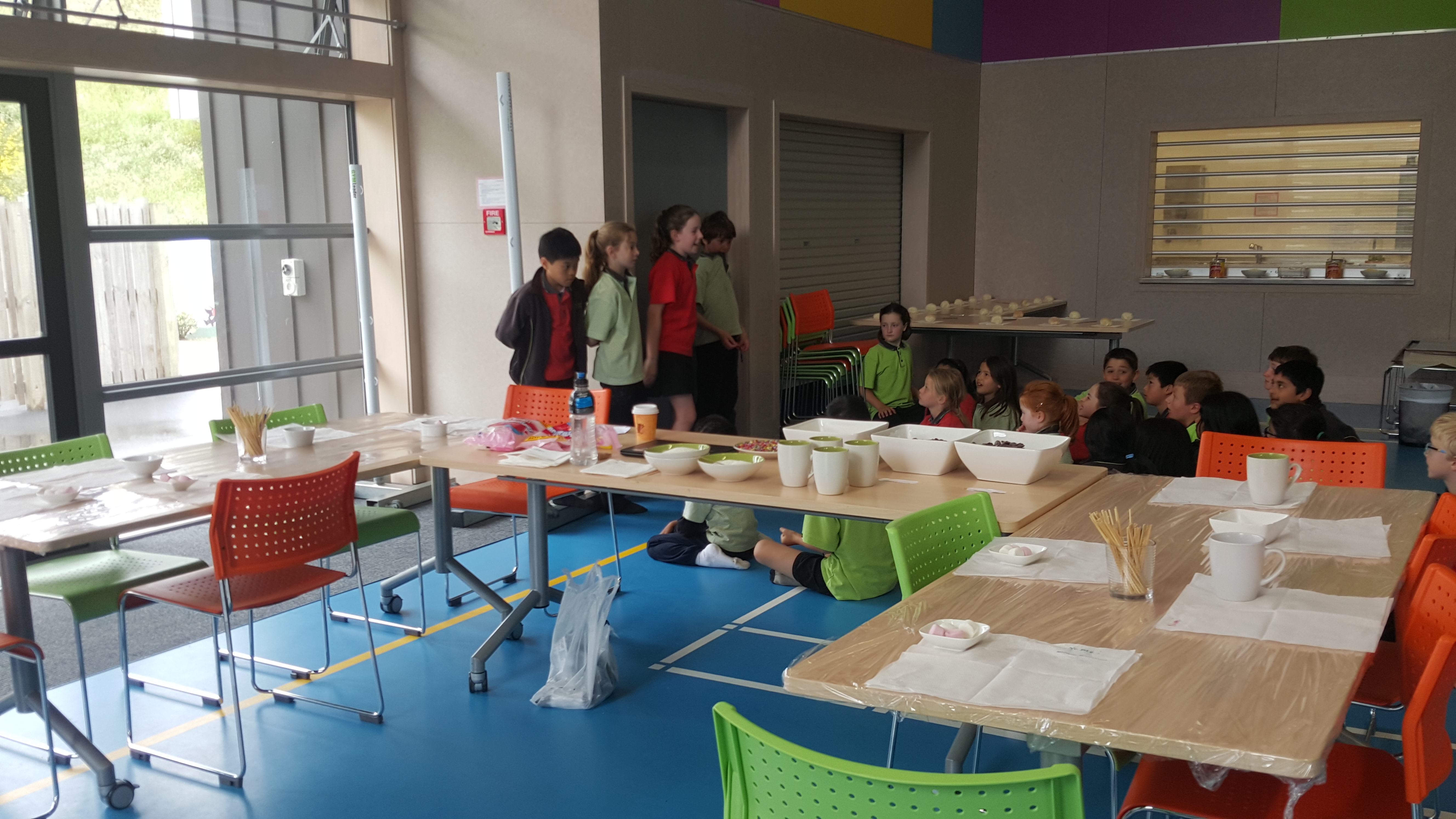 A part of this transition programme involved having opportunities to show leadership. At the end of last week the students organised and ran a programme for the year 3 – 5 students. Firstly, they offered a range of activities such as cooking, science experiments, drawing and arts and crafts which the year 3 - 5 students opted into. The afternoon programme involved a rotation of sporting activities including archery. The year 6 students also did lots of cooking. They cooked things like pizzas and bread buns for their own enjoyment, but they also prepared delicious platters of food for the Koru Hub students for morning tea. See photos below.