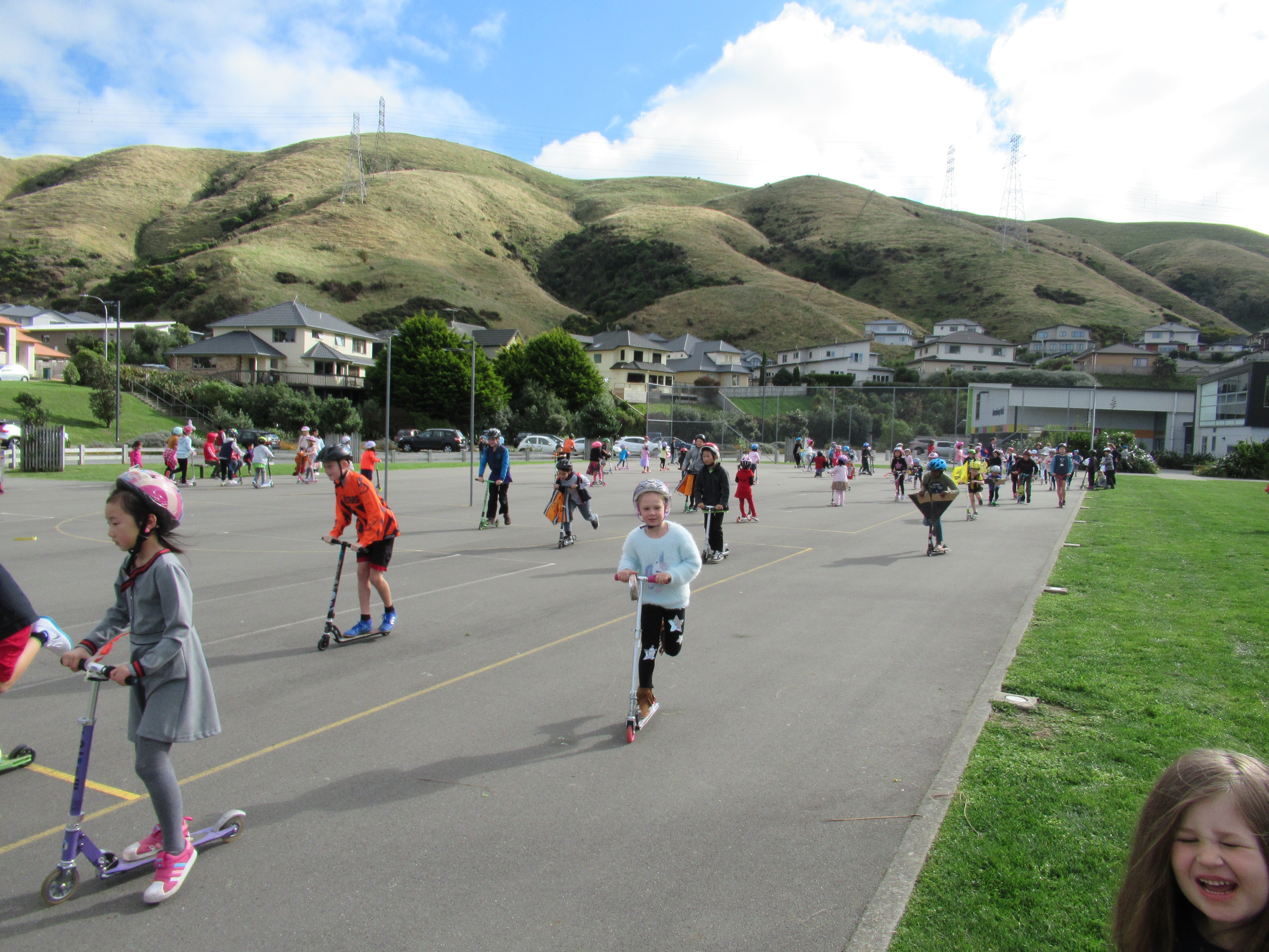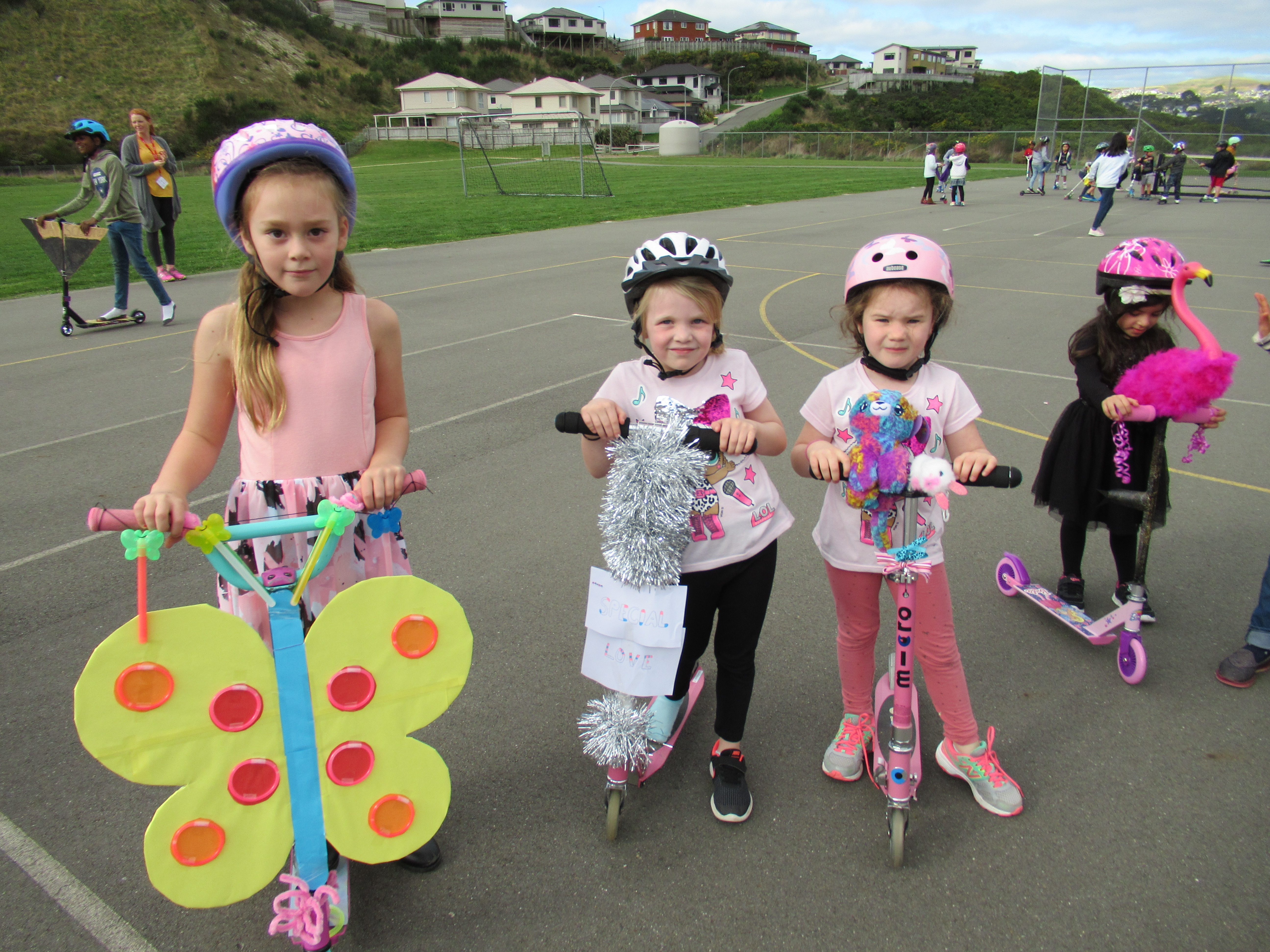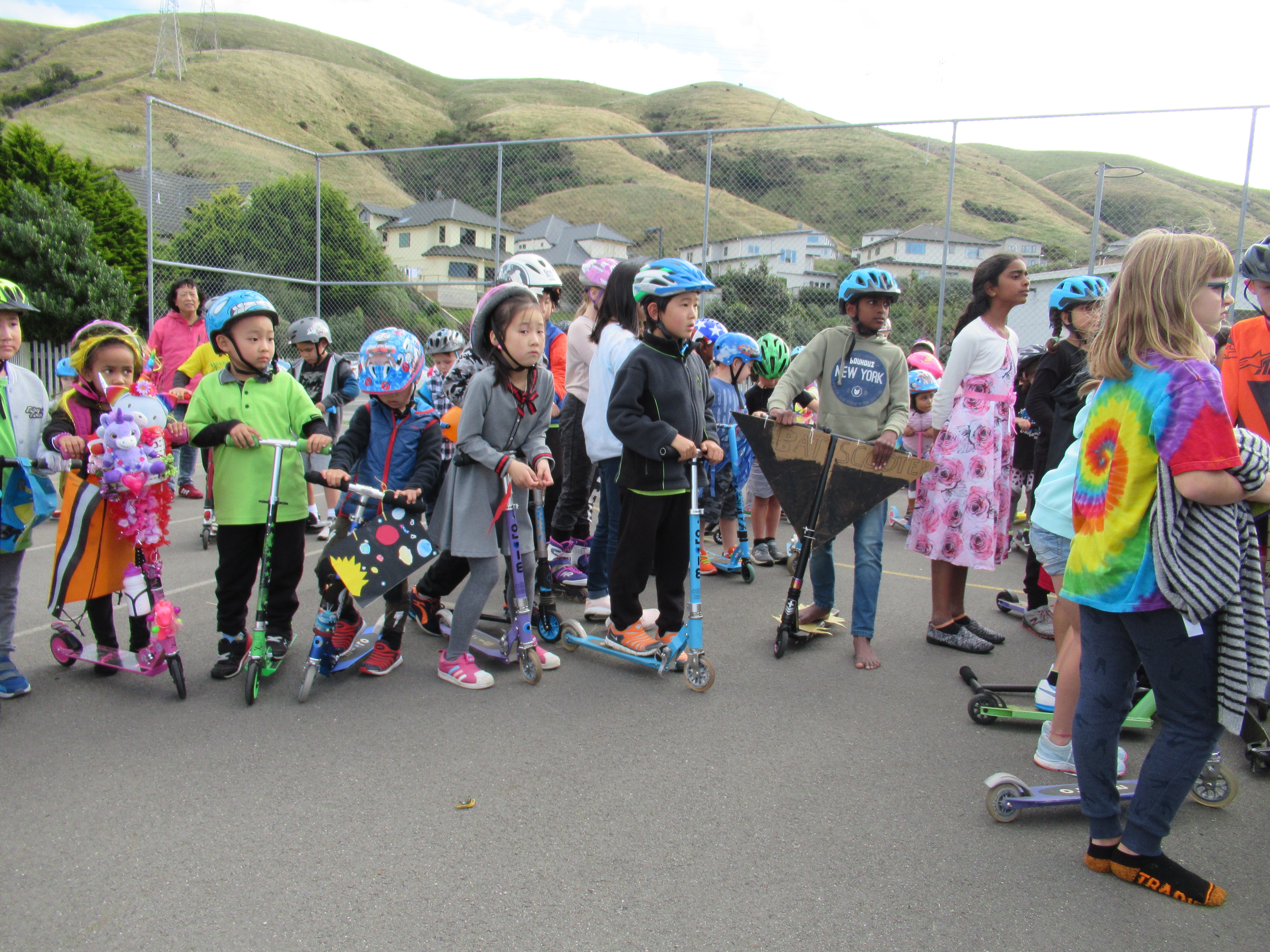 Lunchtime produced a mass of colour and speed on the netball courts for the scooter parade.