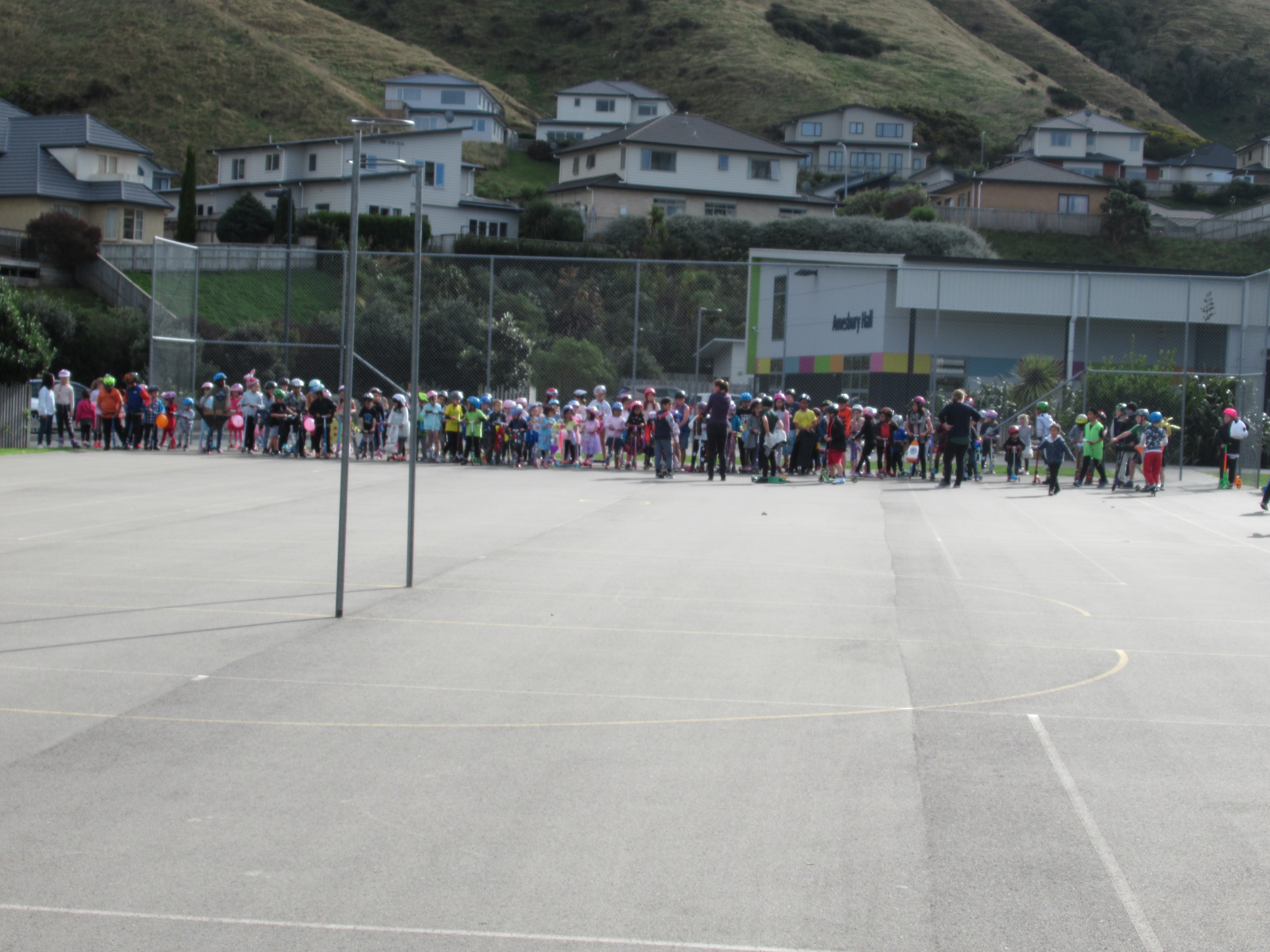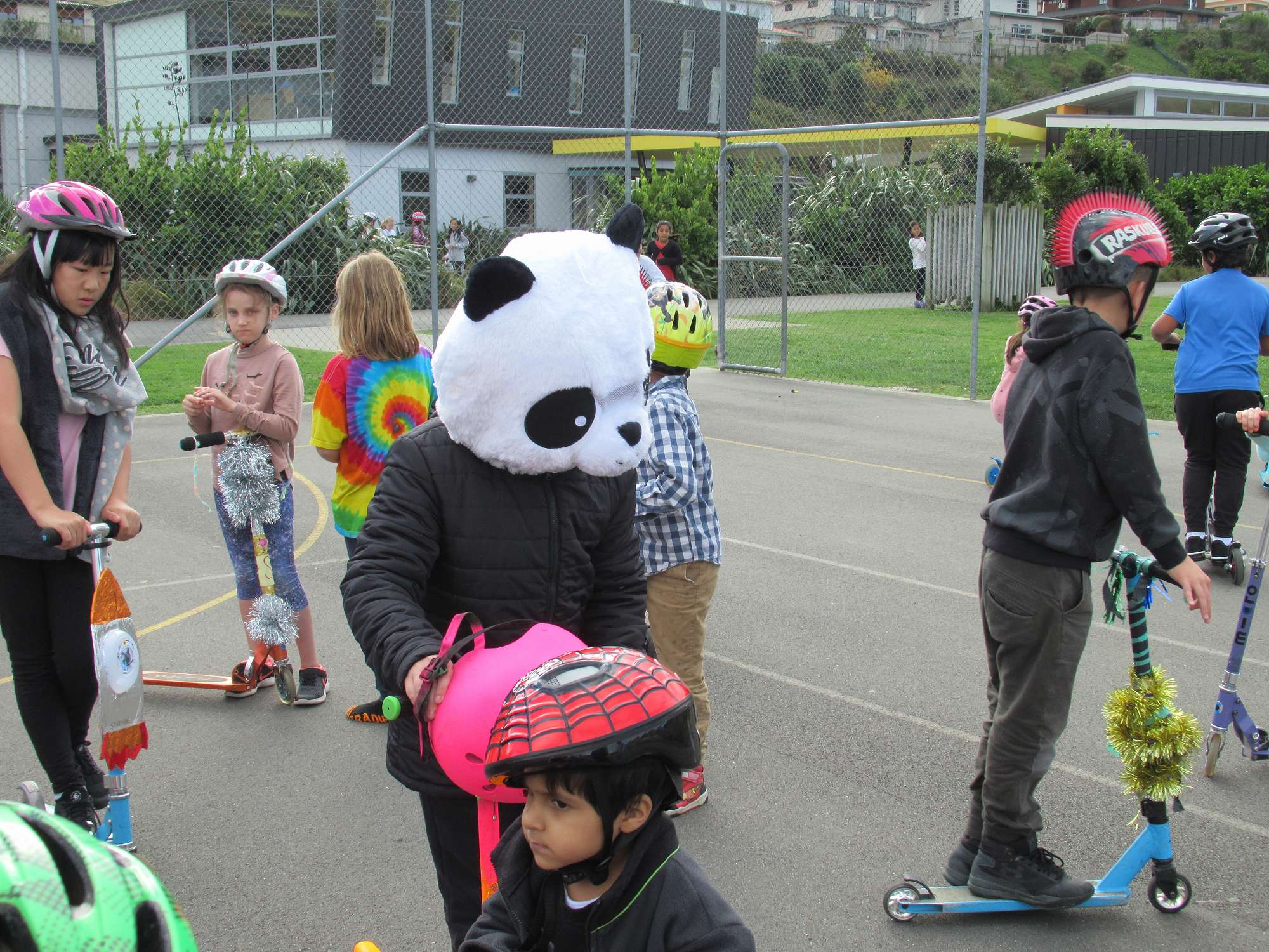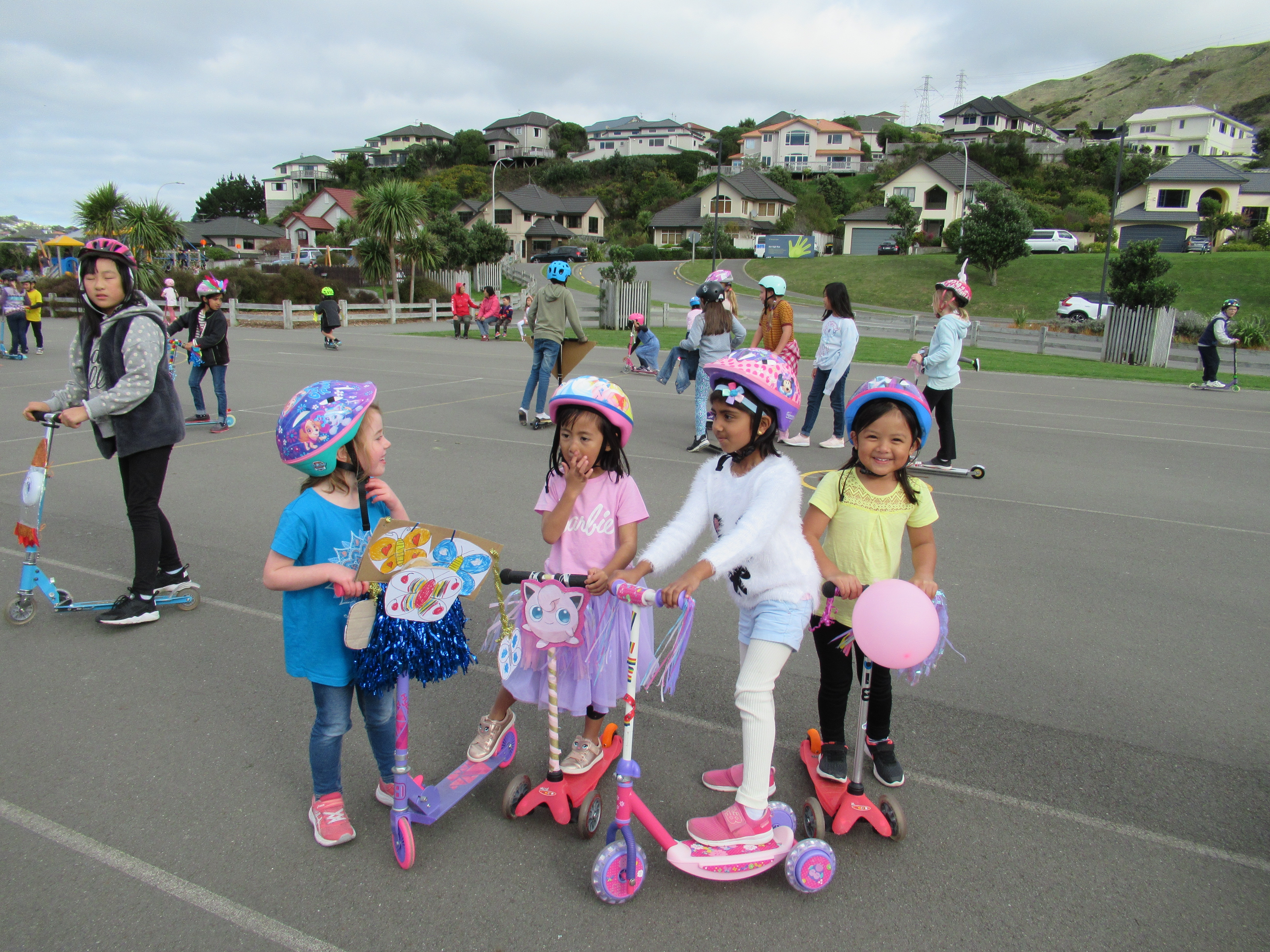 Lunchtime produced a mass of colour and speed on the netball courts for the scooter parade.