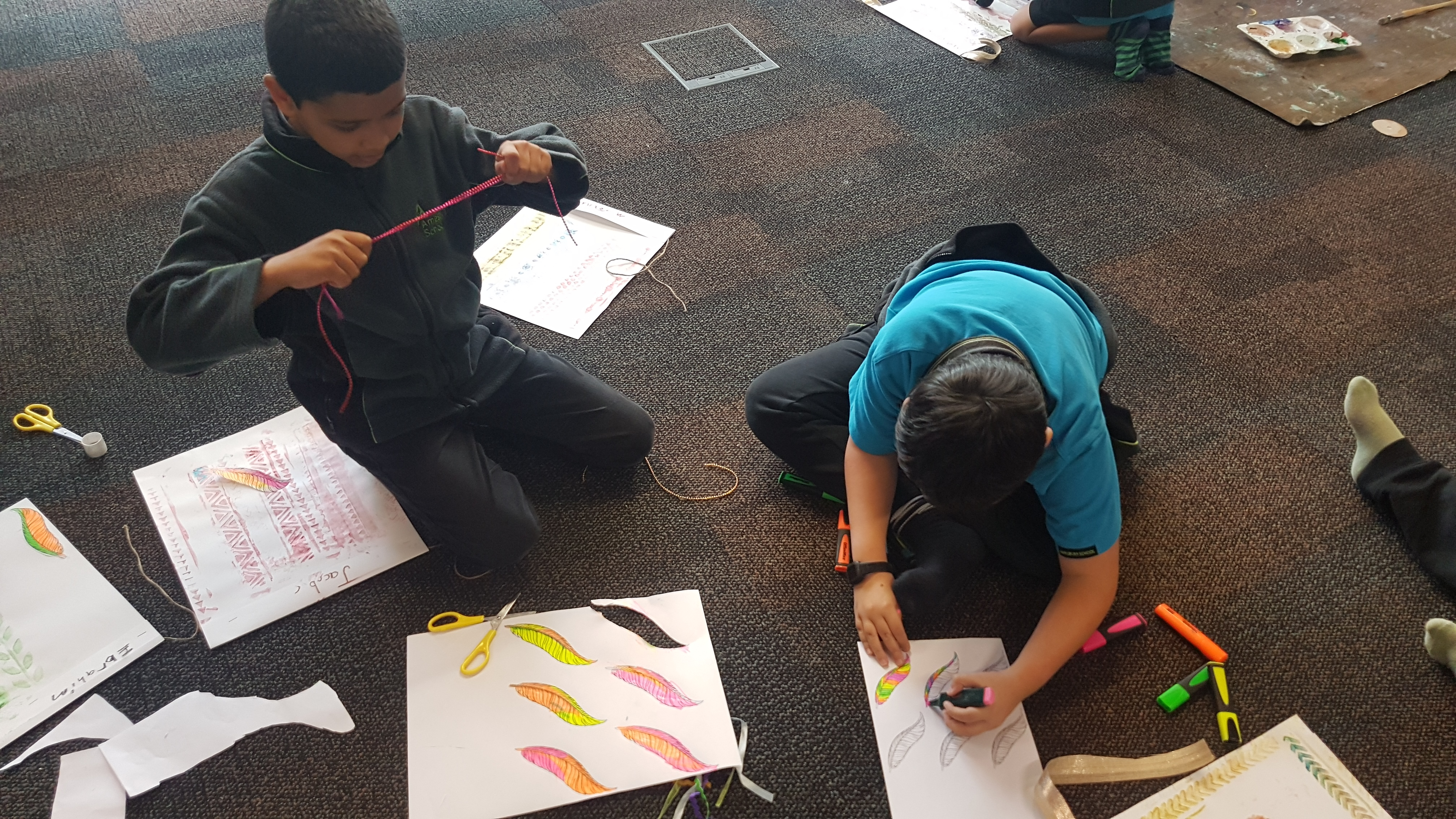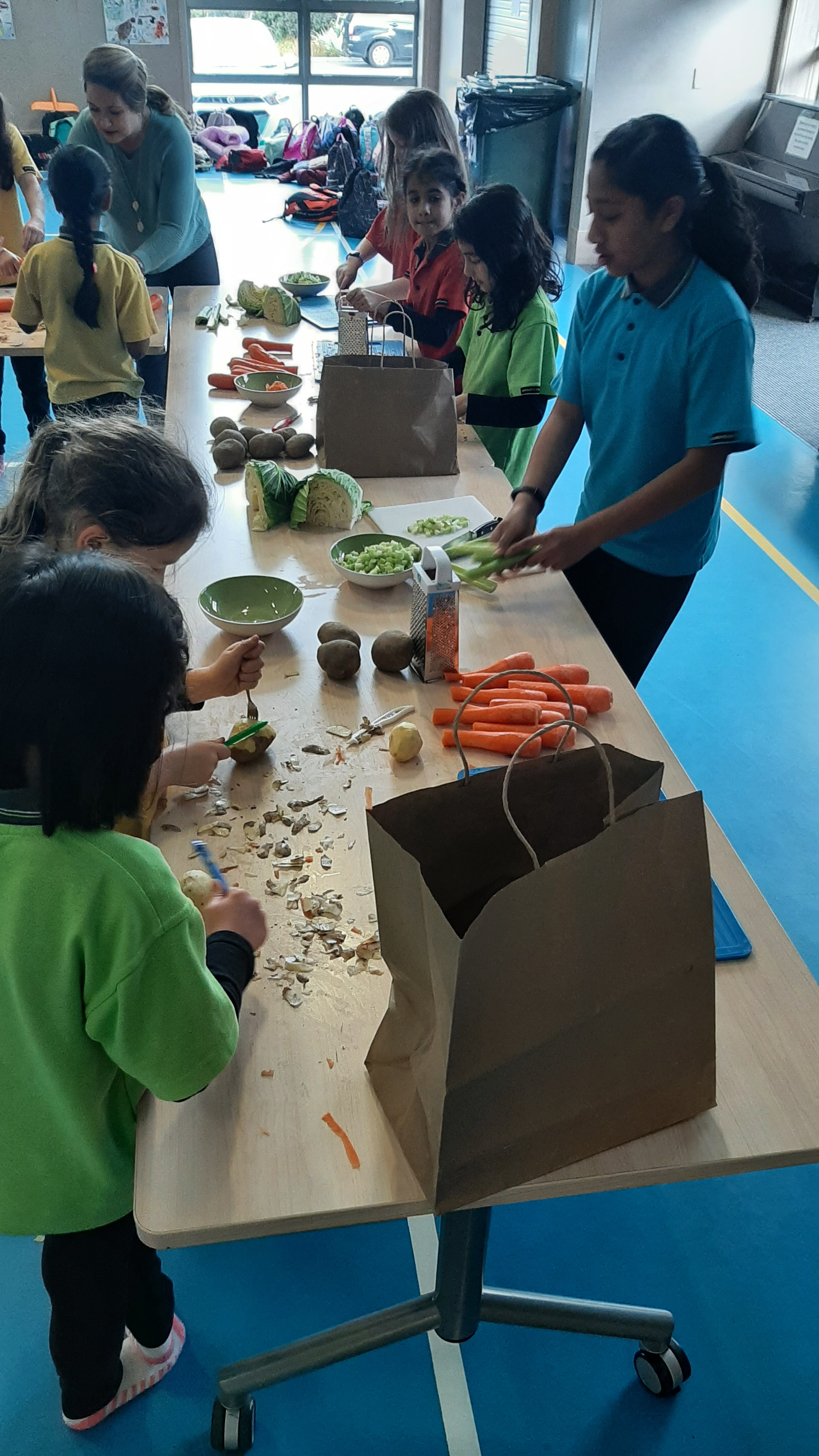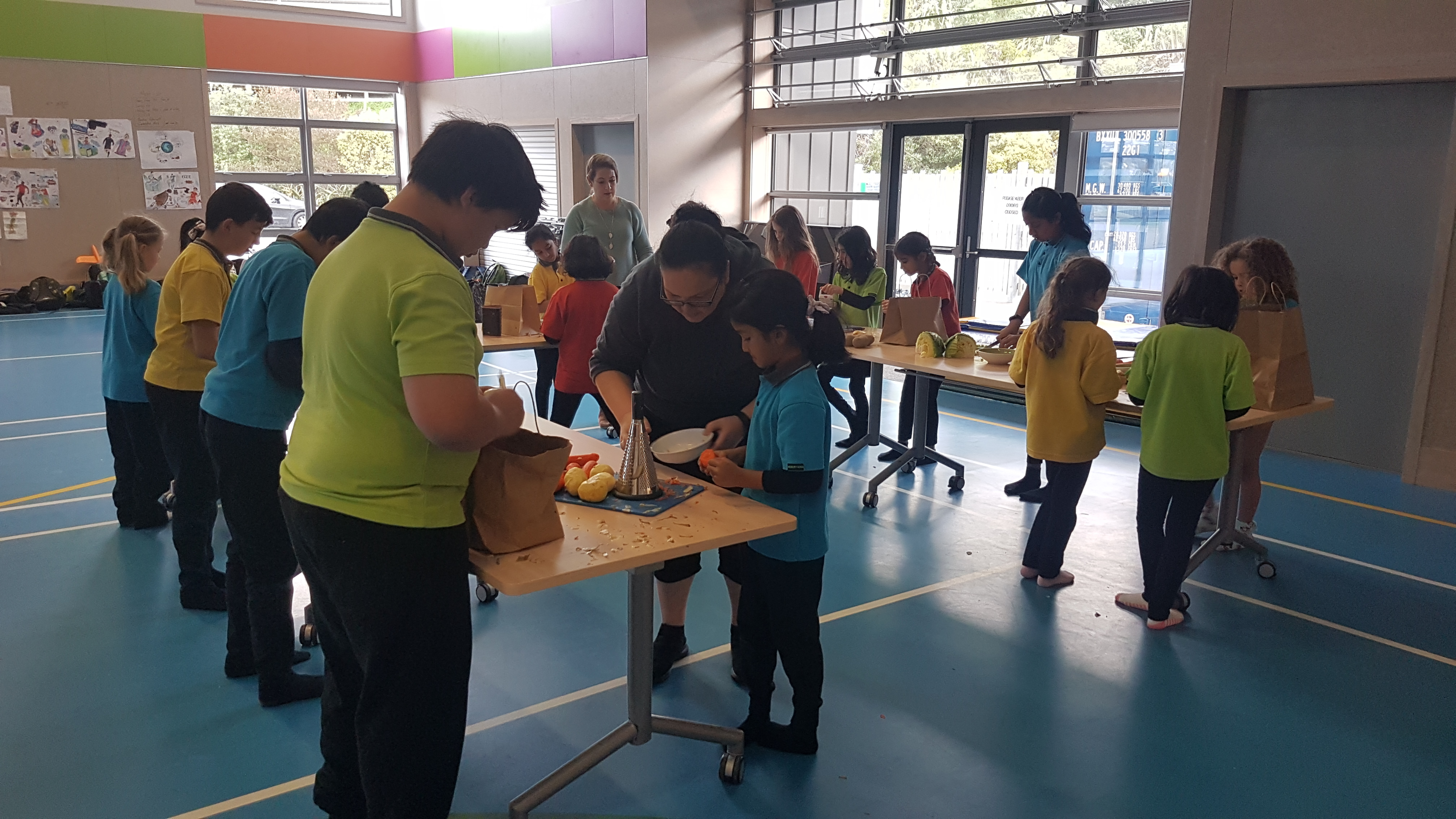 There were activities from making stars and manu tukutuku (kites used to signal Matariki), to creating korowai (cloaks), trying raranga (weaving with harakeke) and making kowhaiwhai art. One larger group of students made soup for the whole school to share at lunch time, accompanied by bread rolls. Much grating, peeling and chopping ensued, with Jasper emerging as a food preparation expert!