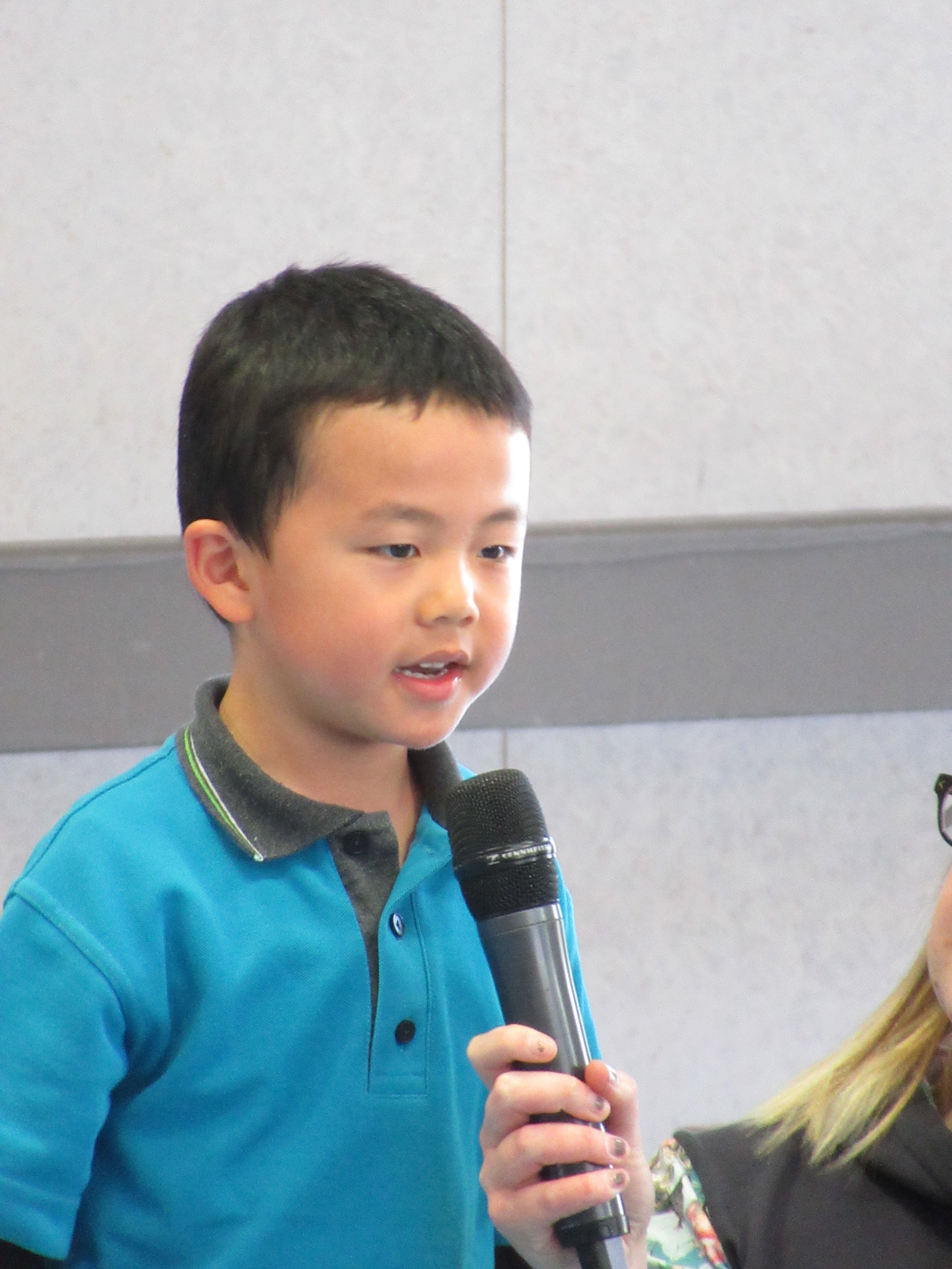 With no time to get nervous Surya was first up, followed by the other Y5-6 finalists. They set a high standard with well crafted and confidently delivered speeches. It was then onto our youngest students, all Year 0, one of whom, Miesha, has only been at school for a month. (I wish I was as good as any of them by the time I had finished primary school, let alone just started school).