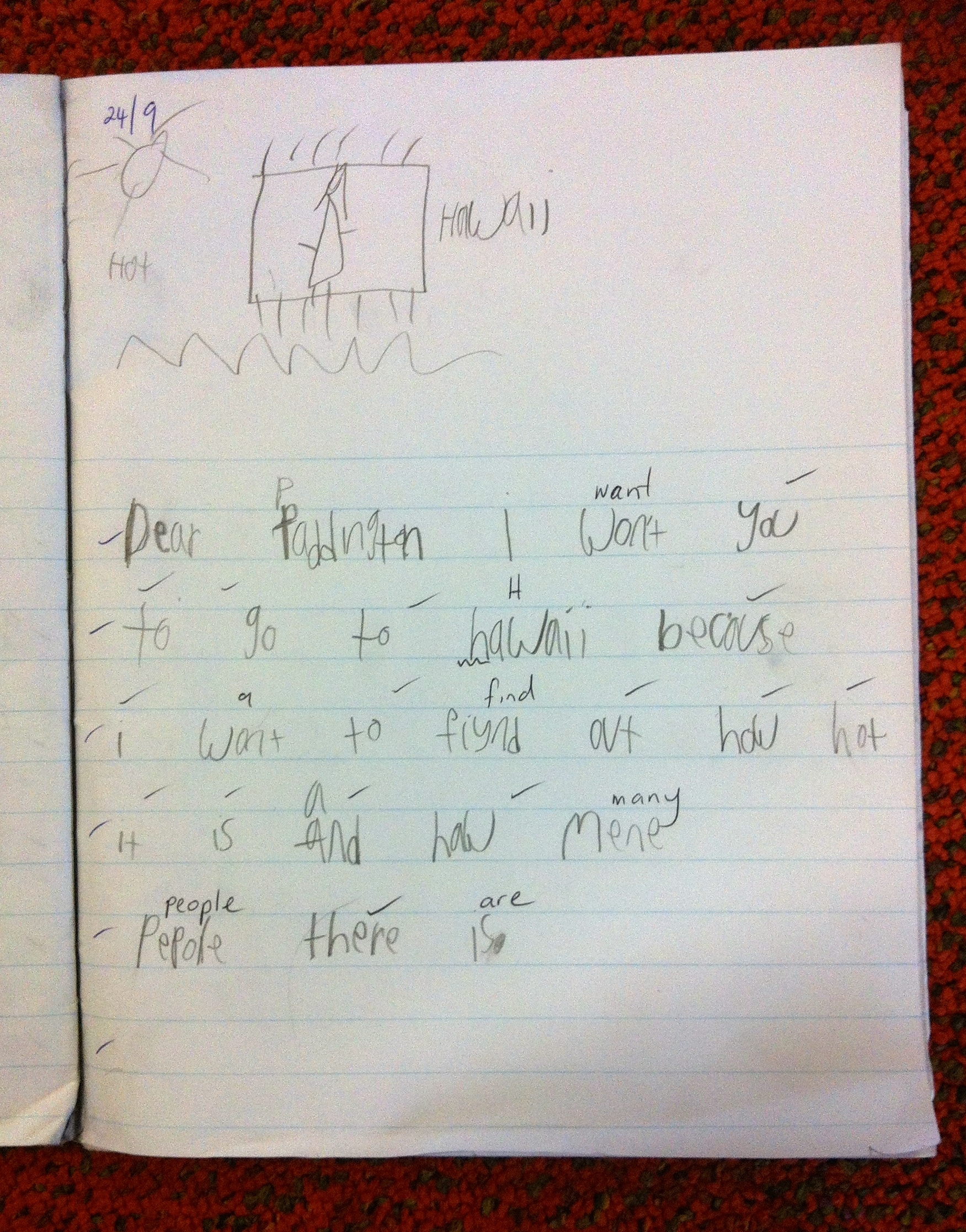 Dear Paddington, I want you to go to Hawaii to see how hot it is on the beach.