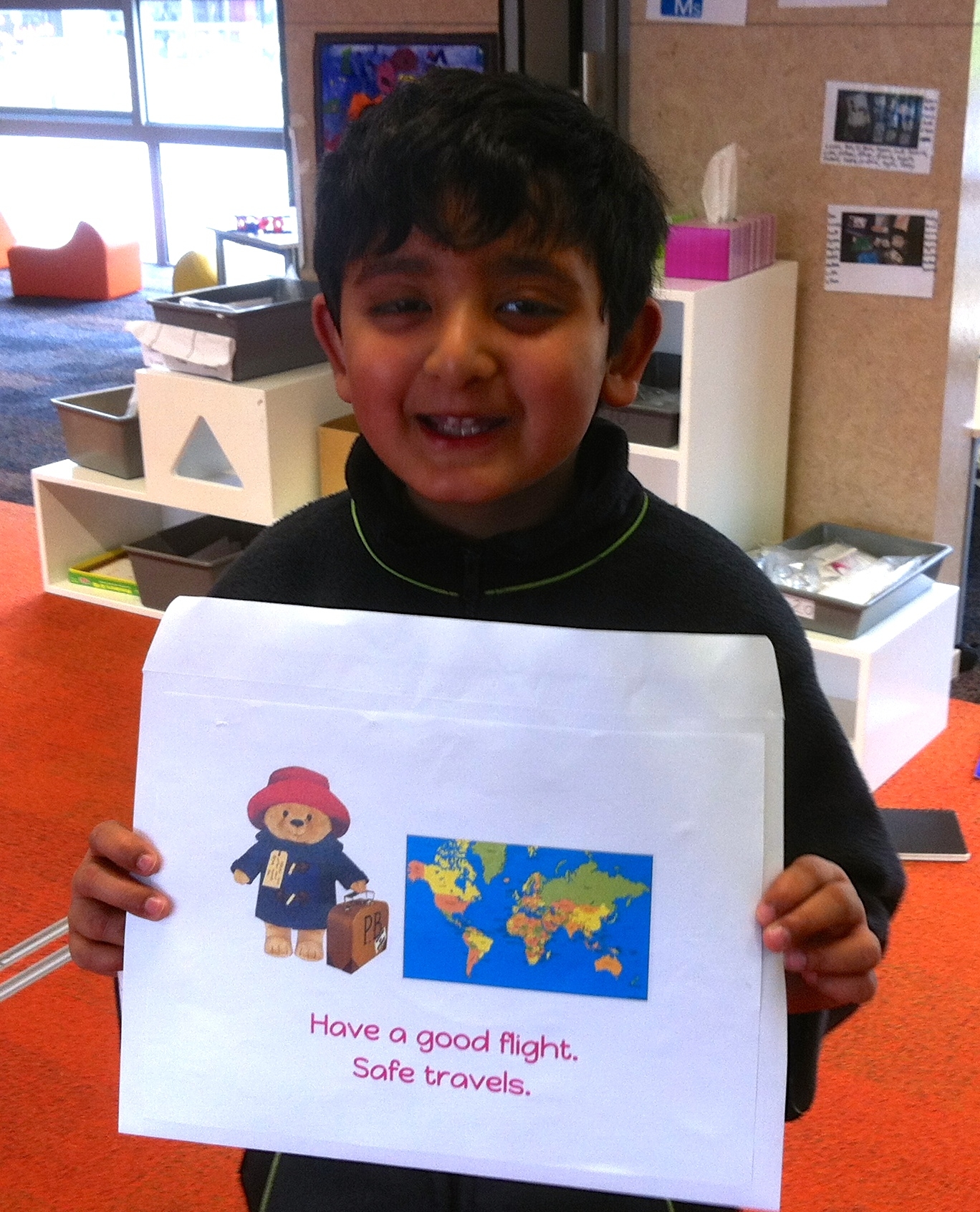 Once we checked that he had everything, Christina played her violin for all of us, and then we farewelled Paddington when Gail came to collect him for his taxi ride to the airport!