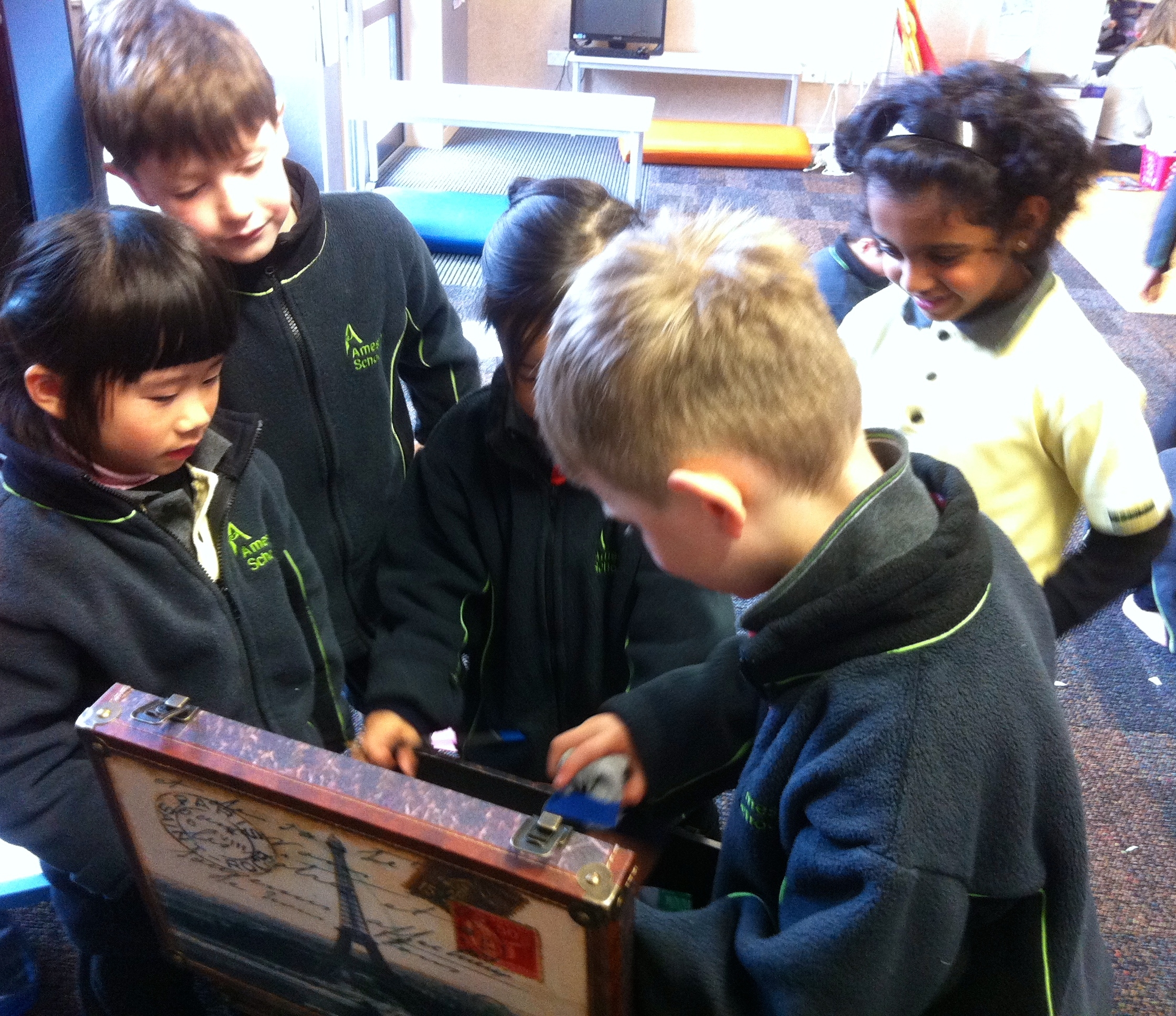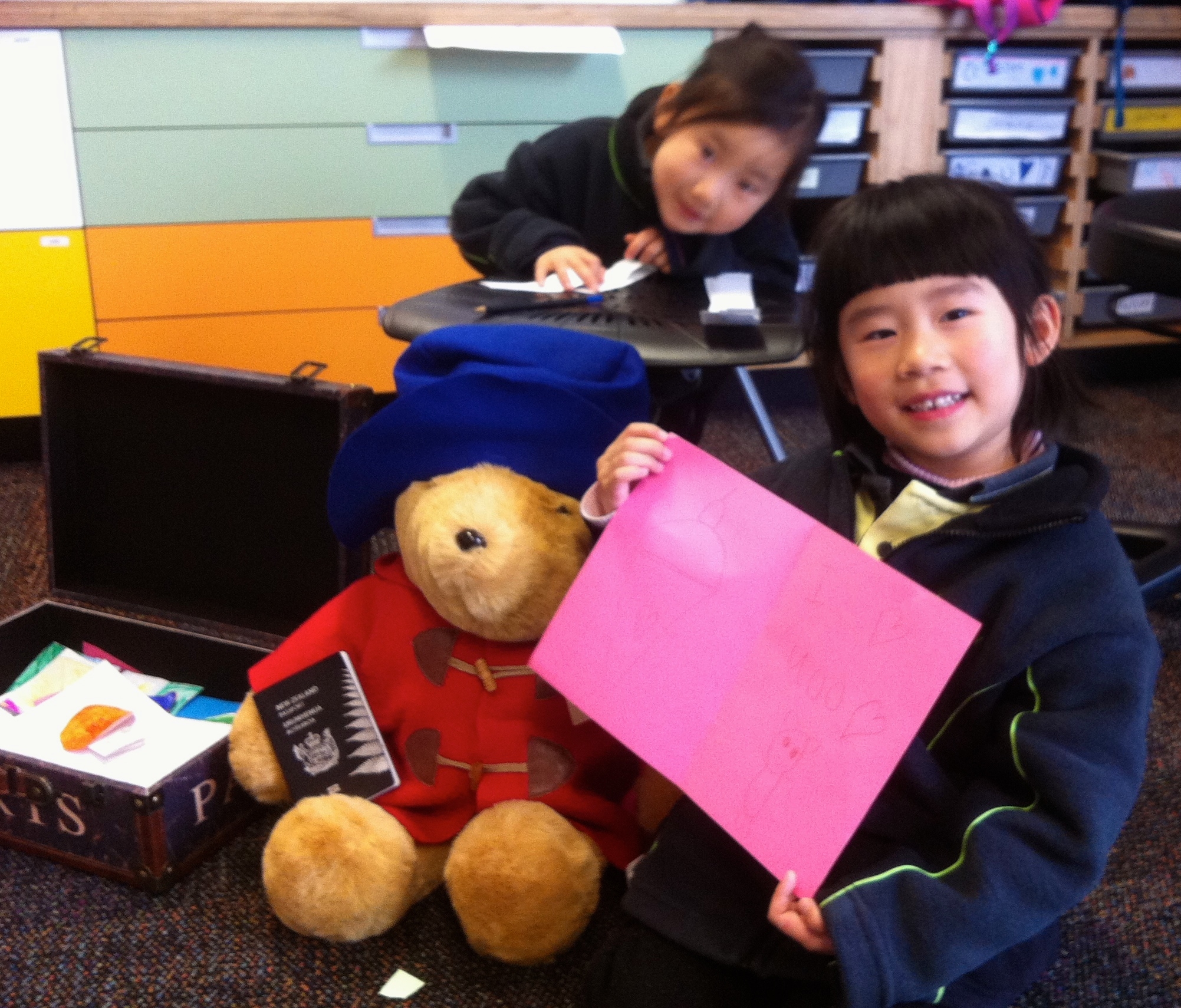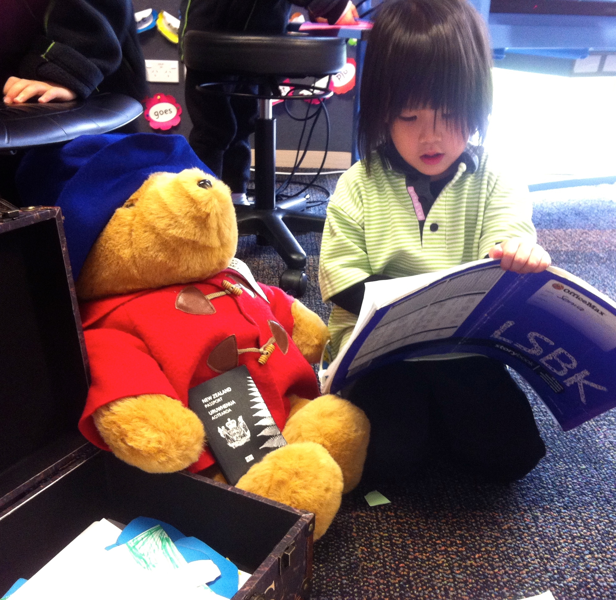 We met Paddington Bear today, and found out about all his travels from Peru to New Zealand. He has a very fancy passport and travel bag.