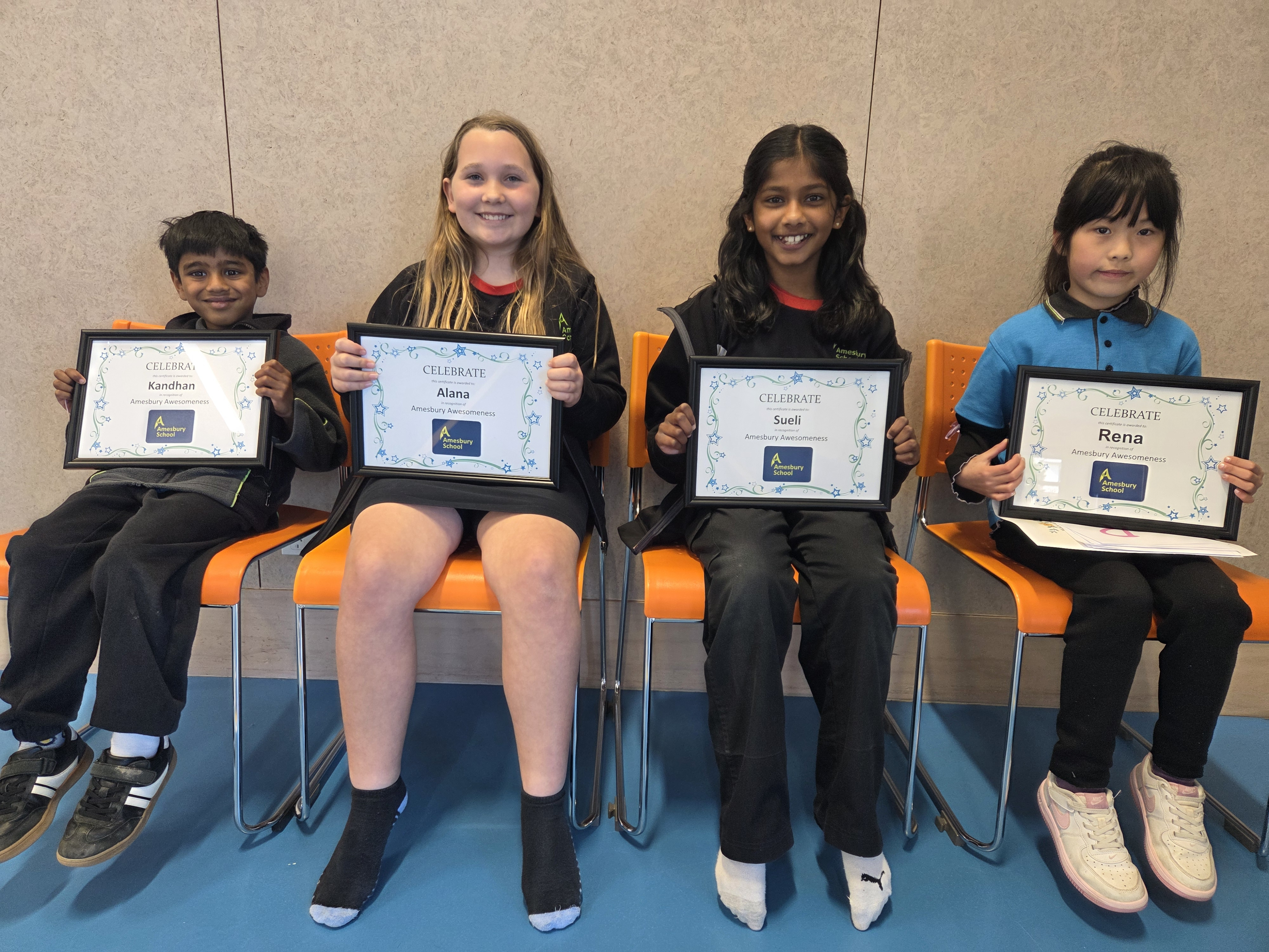 Ka rawe to Kandhan, Alana, Sueli, and Rena, our recipients of this term's Amesbury Awesomeness awards. You have all demonstrated the Amesbury High 5 values—through the work you do, the connections you make, and the effort you put in—while still remaining your unique and wonderful selves. We are all so proud of you.