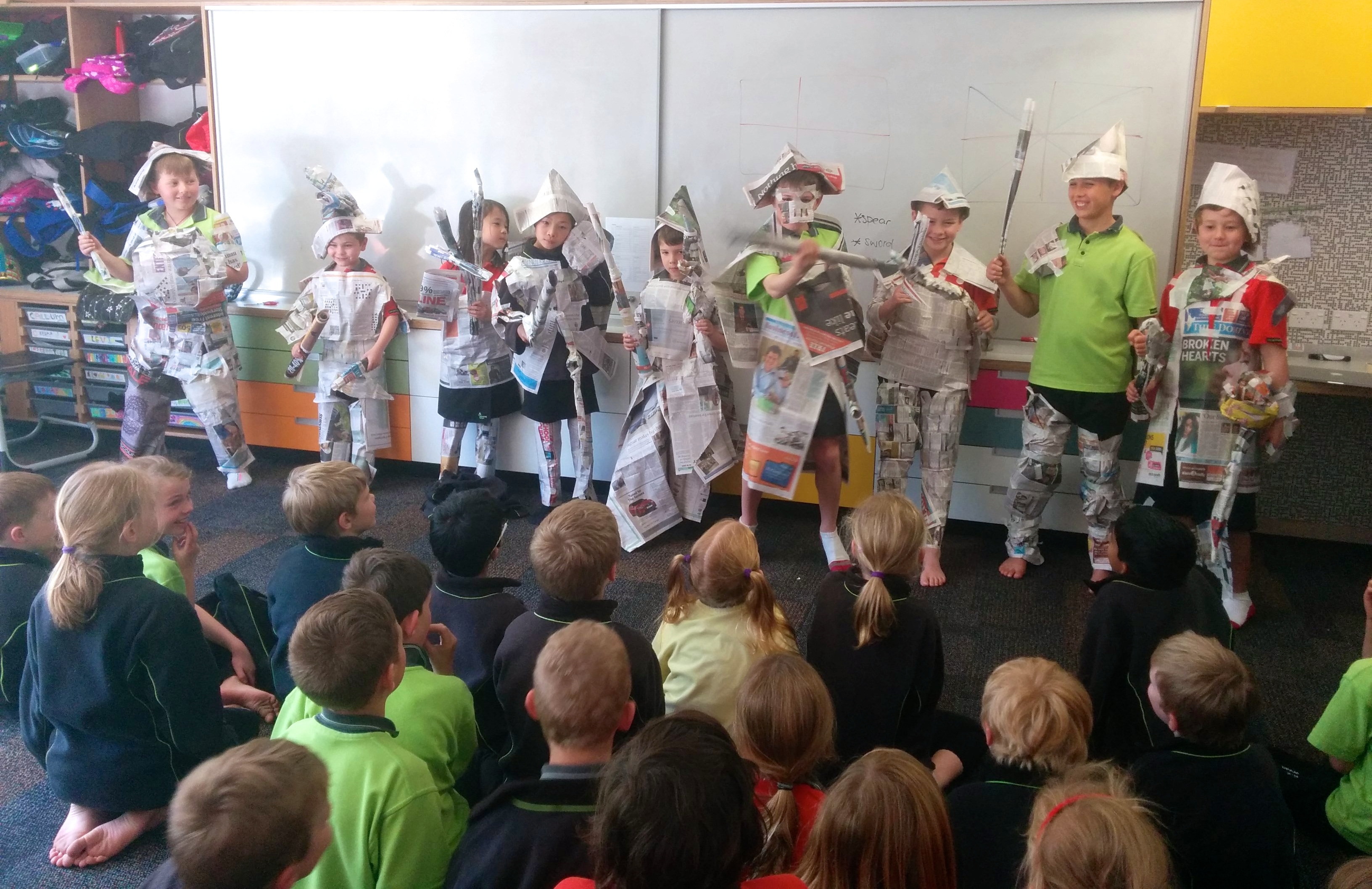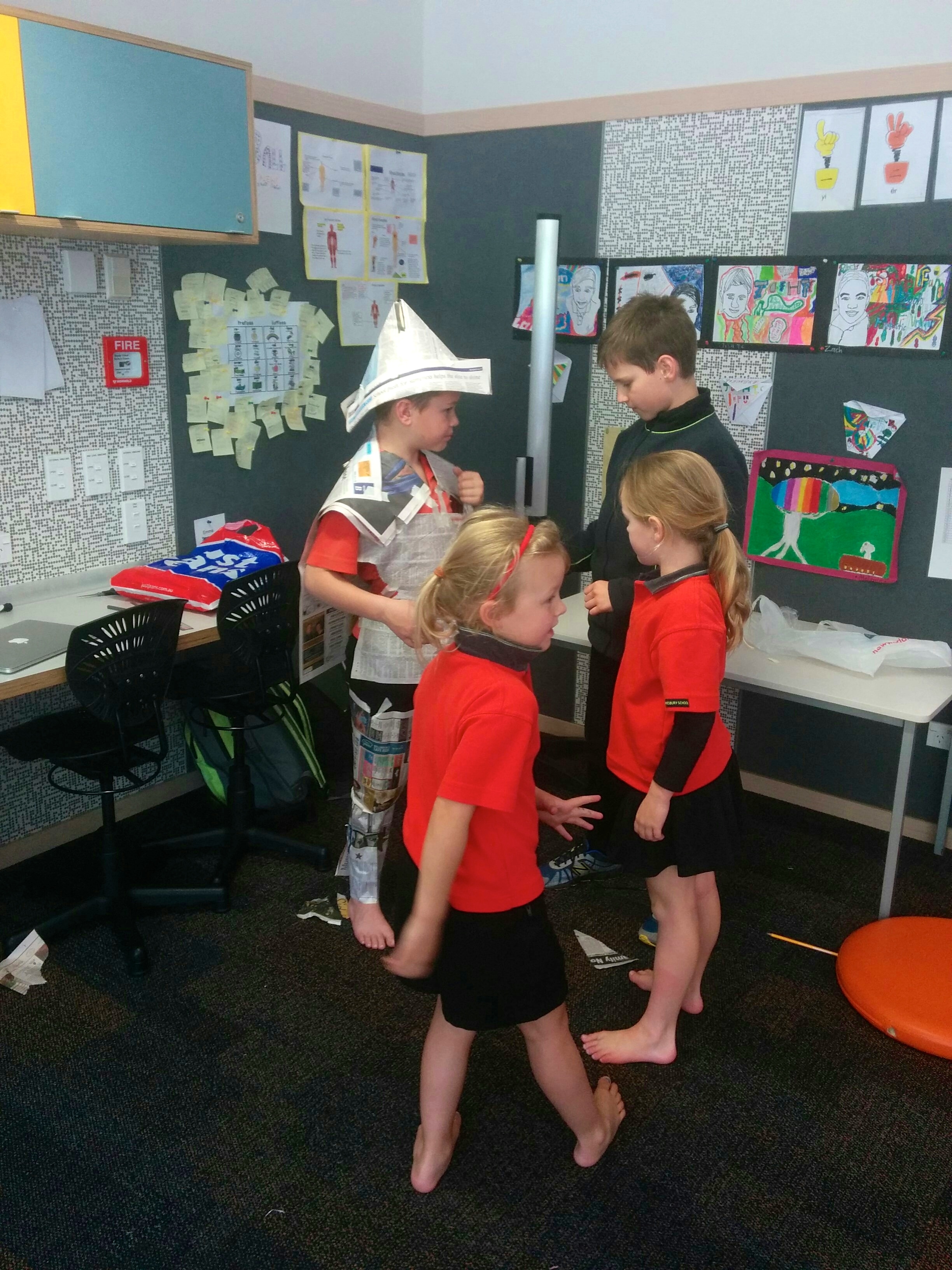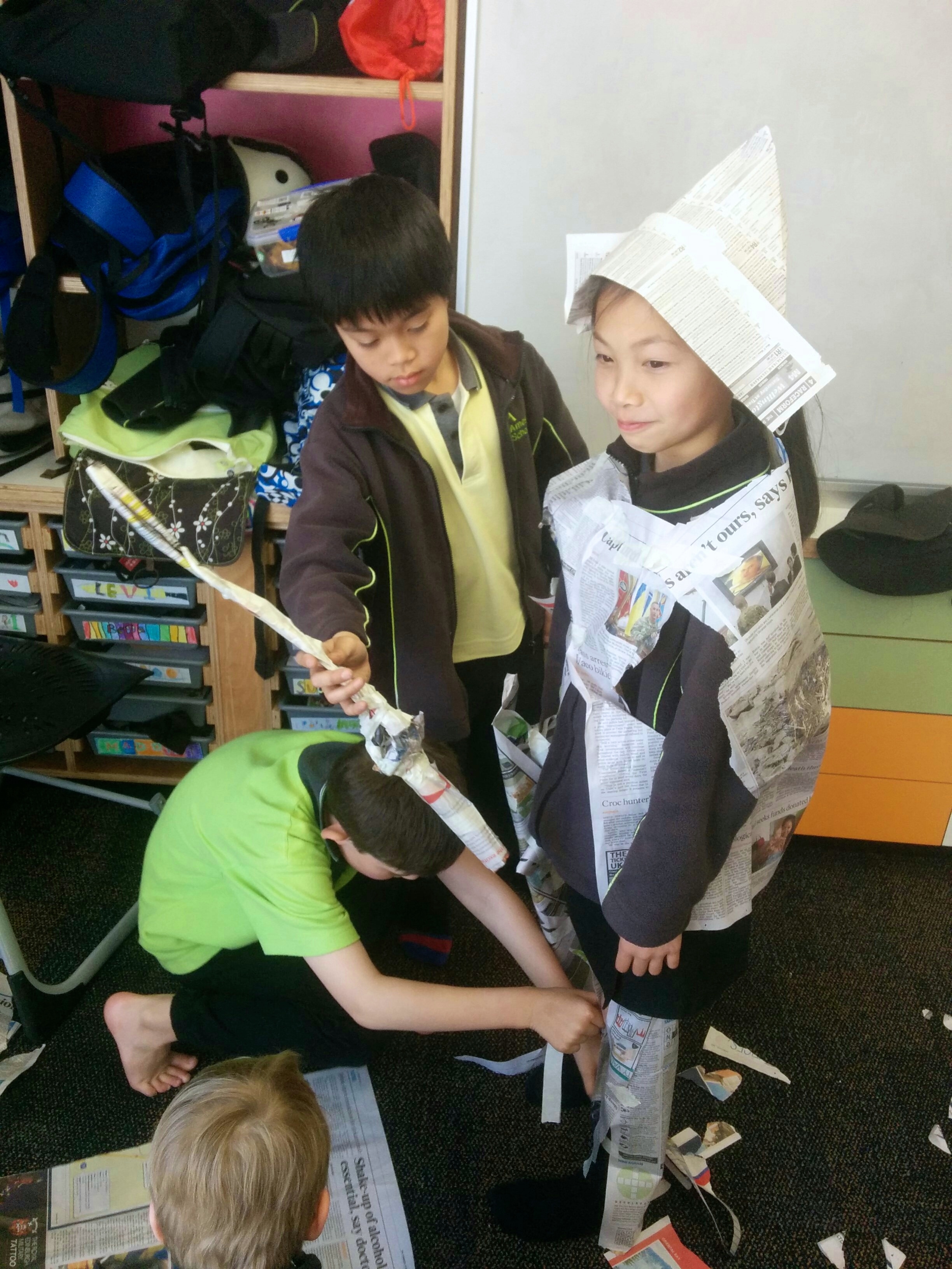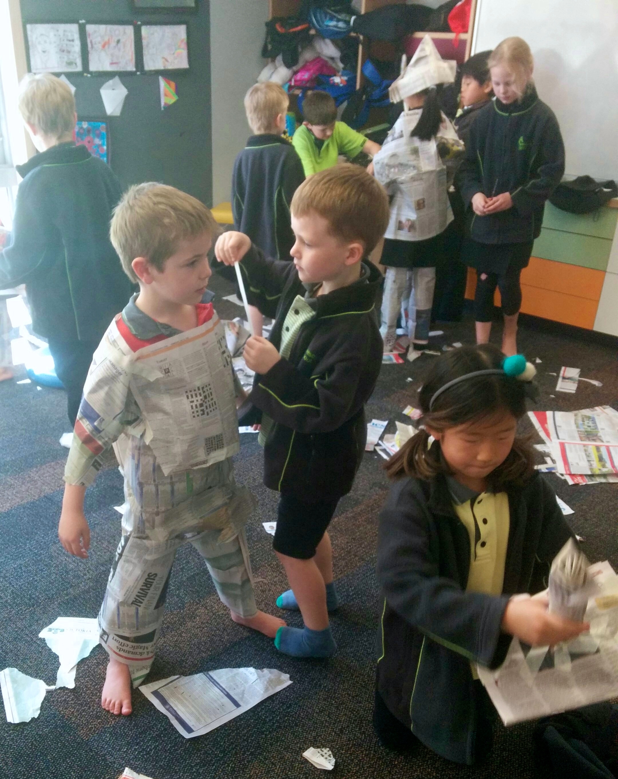 The children then worked in groups to dress up one person to look like St George (or St Georgia!) They could only use tape and newspaper. The teamwork was wonderful and the results were spectacular! We had loads of fun and extended our knowledge of the world.