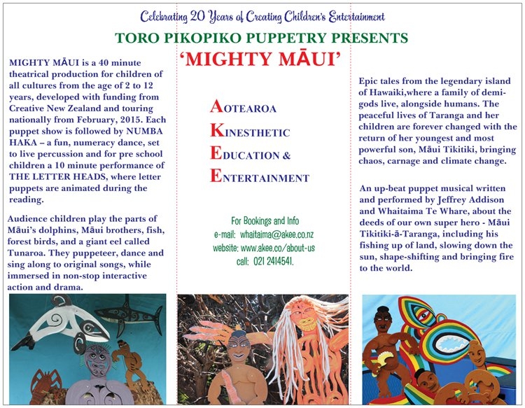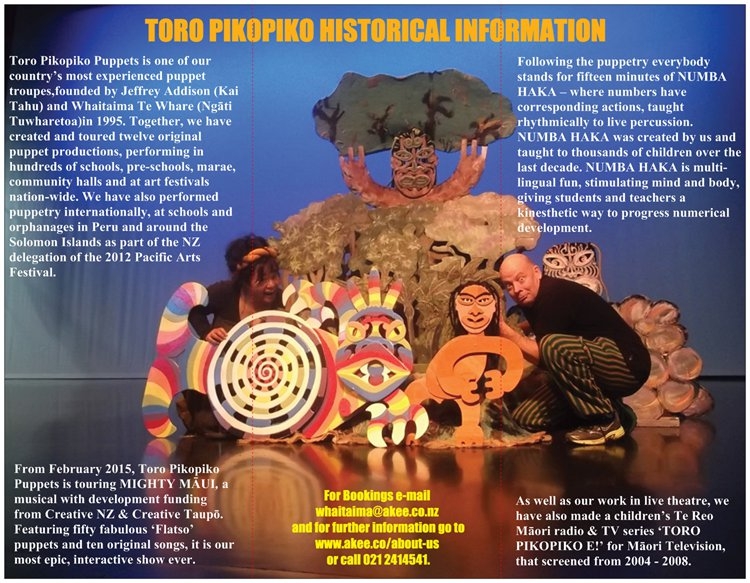 TORO PIKOPIKO PUPPETS are celebrating their twentieth year of creating maori themed entertainment for children.