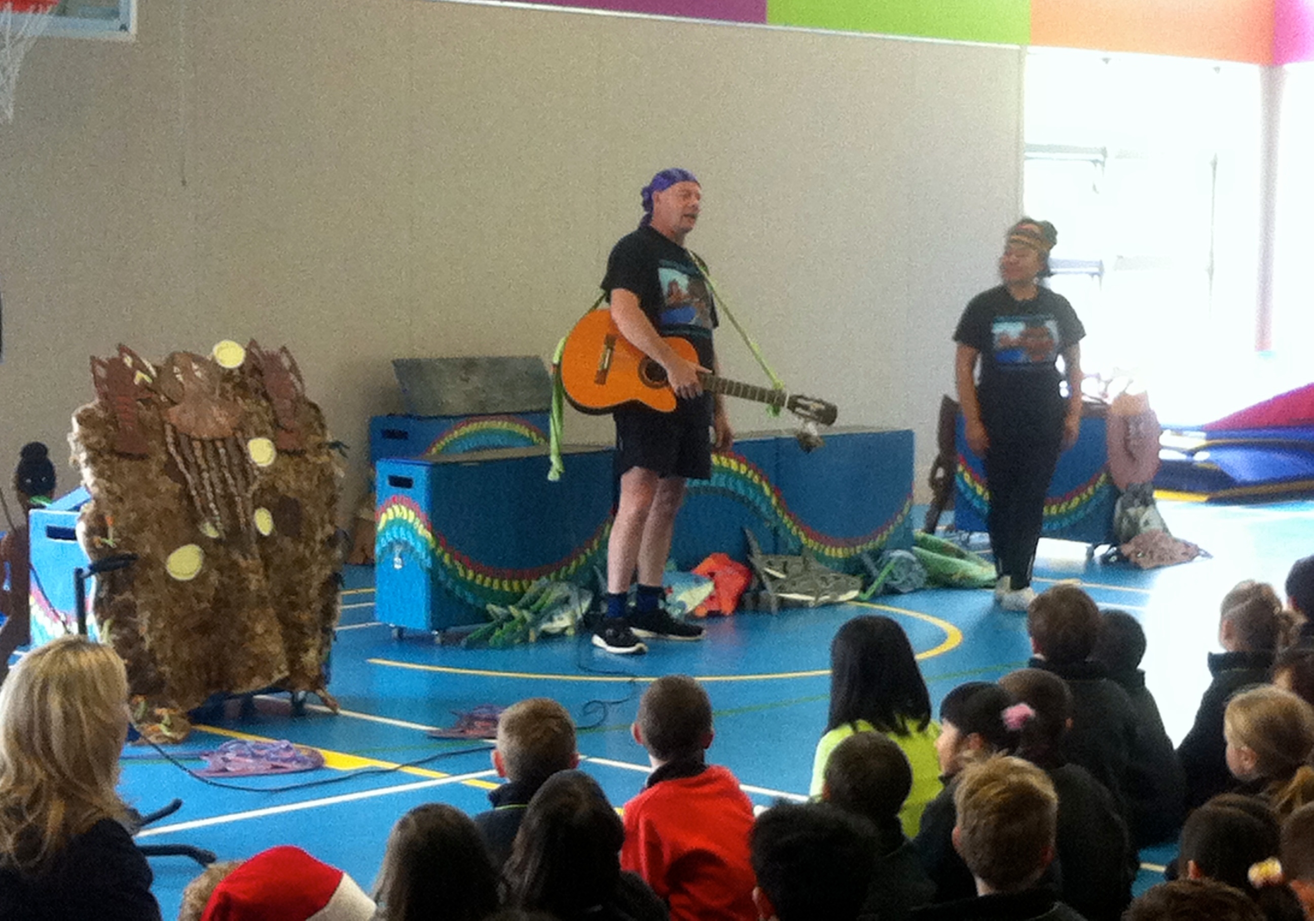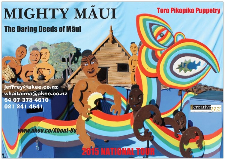 On Wednesday we saw a puppet musical written and performed by Jeffrey Addison and Whaitaima Te Whare. The show weaves together eight of Maui Tikitiki's most daring deeds and features Flatso puppets.