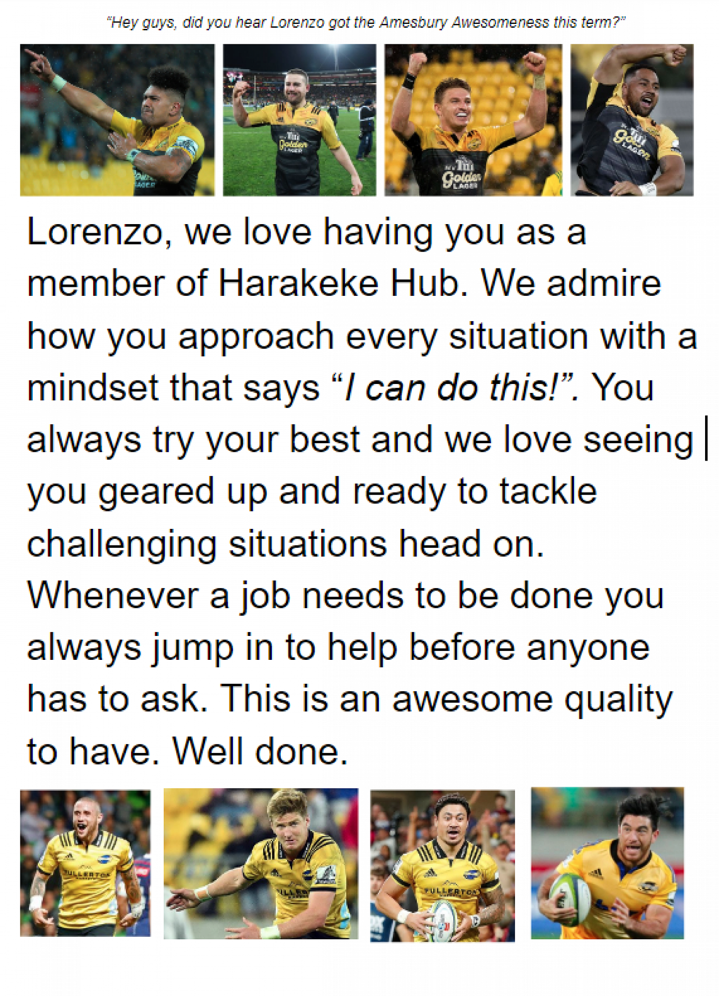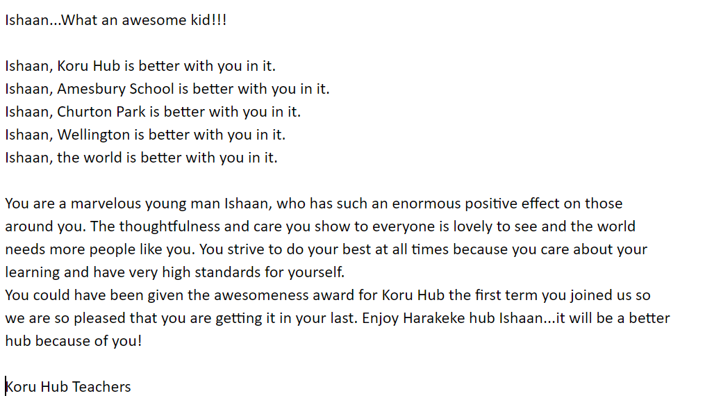 And Lorenzo was awesome for Harekeke's Year 5-6