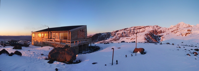 4WD vehicles can drive right up to the front door of the lodge. Other vehicles can drive to and stay at the base car park where passengers and gear can be loaded into 4WDs and car pooled up the mountain. Entrance to the mountain is a small off-road, just off state highway one, ten minutes north of Waiouru.