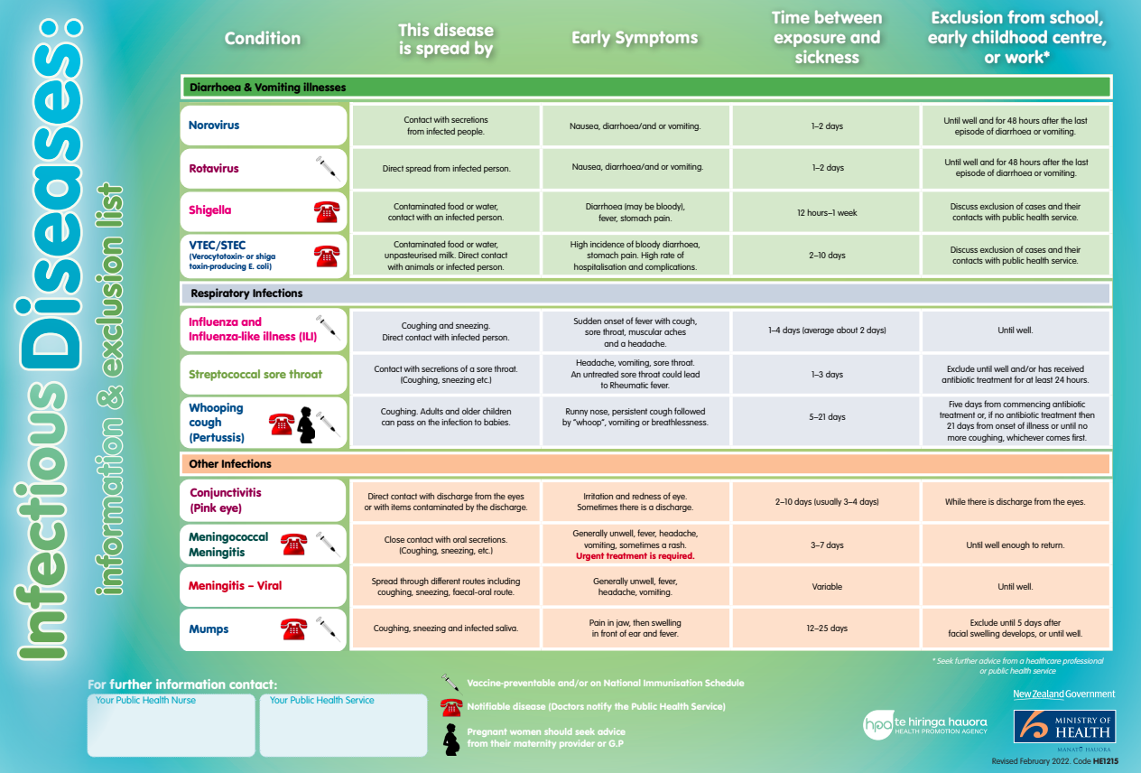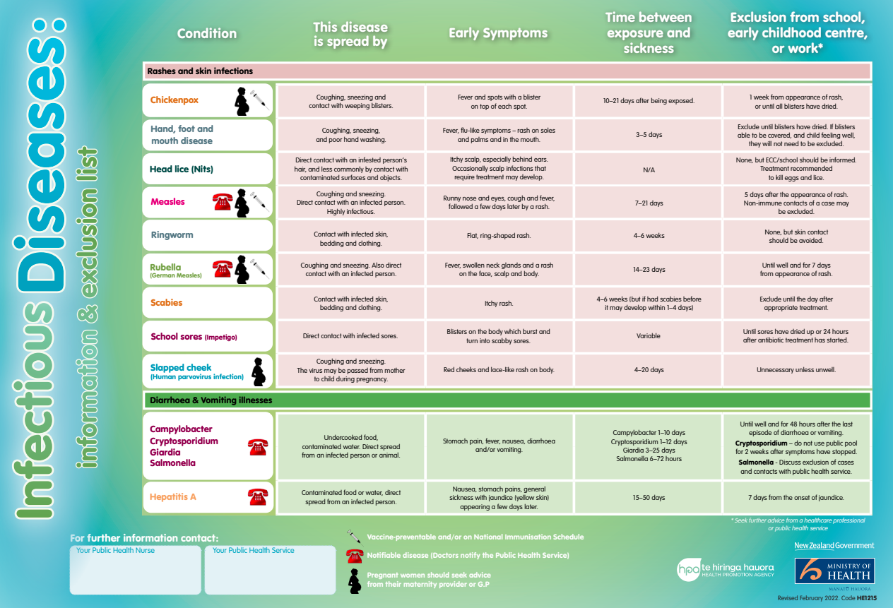 When informing the school office of an absence due to a student being unwell, please include additional information regarding conditions that are highly contagious (see the charts below or follow this link).
