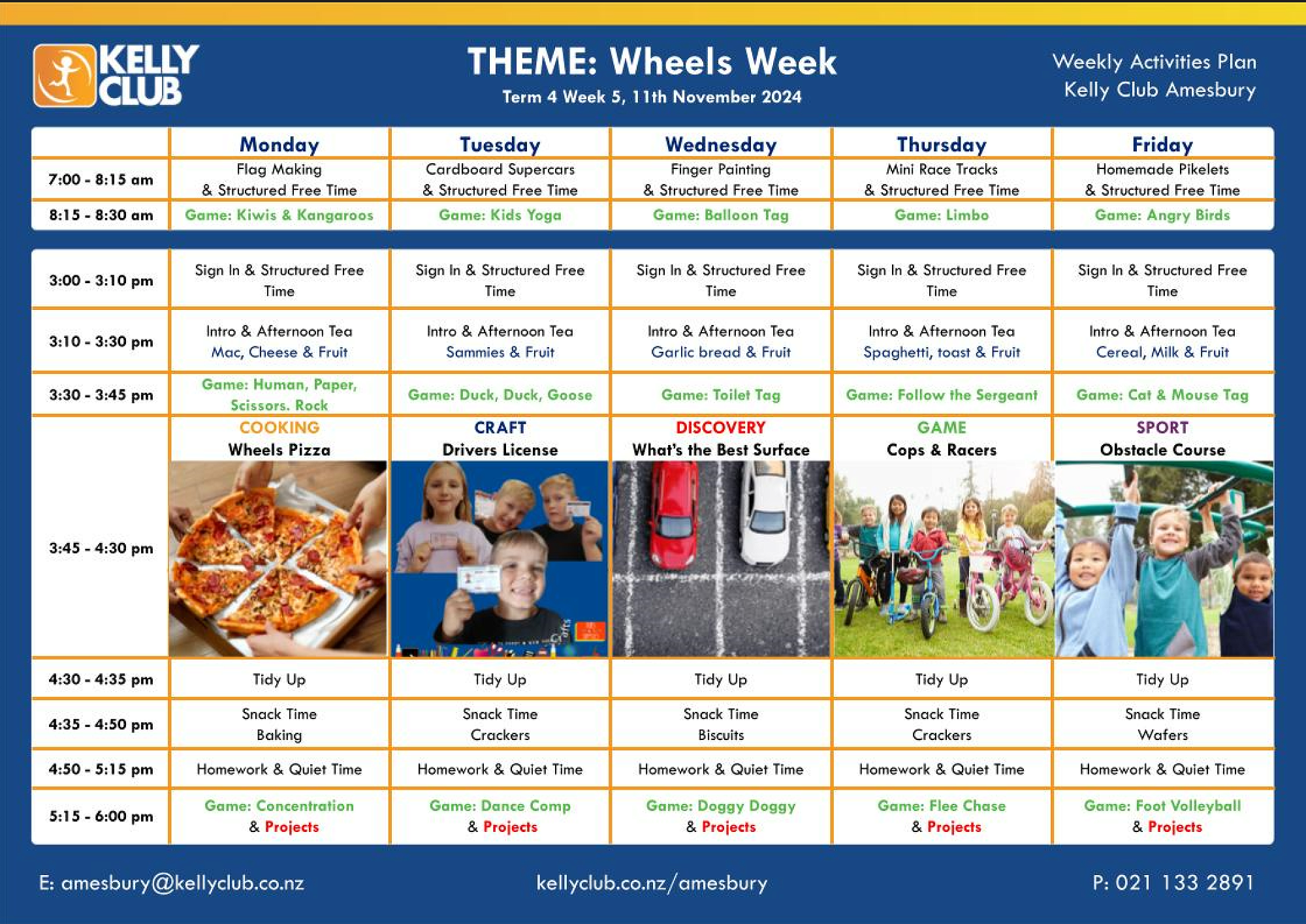 Get ready for some wheely good fun at Kelly Club next week. We are making delicious pizza, our own driver licence, discovering the best surface for cars and playing fun wheely games.