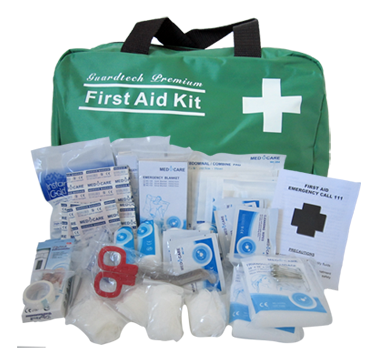FREE Digital Thermometer1 x Instant Ice Pack2 x Emergency Blankets1 x CPR Resuscitation mask with valve2 x Eye Pad 5.5cm x 7.5cm2 x Burns Dressings 20cm x 30cm2 x Conforming Bandage Rolls 6cm x 400cm2 x Conforming Bandage Rolls 8cm x 400cm20 x Band Aid strips 7.5cm x 2cm2 x Triangular Bandages 90cm x 90cm x 127cmLong adhesive strip 6cm x 20cmAdhesive Multi-pore Tape Roll 13mm x 5m3 x Butterfly Adhesive Plasters 7.4cm x 4.5cm2 x Knuckle Adhesive Plasters 7.5cm x 3.7cm4 x Semi-permeable Dressings 6cm x 7cm3 x Adhesive Island Dressings 6cm x 7cm2 x Adhesive Island Dressings 6cm x 10cmCombined/Abdominal absorbent pad 23cm x 12.5cmScissors 15cmTweezers (metal)4 pairs large PVC safety gloves10 x safety pins4 x Soap wipes 20cm x 19cm4 x Saline Cleansing Wipes 20cm x 19cmFirst Aid Guide