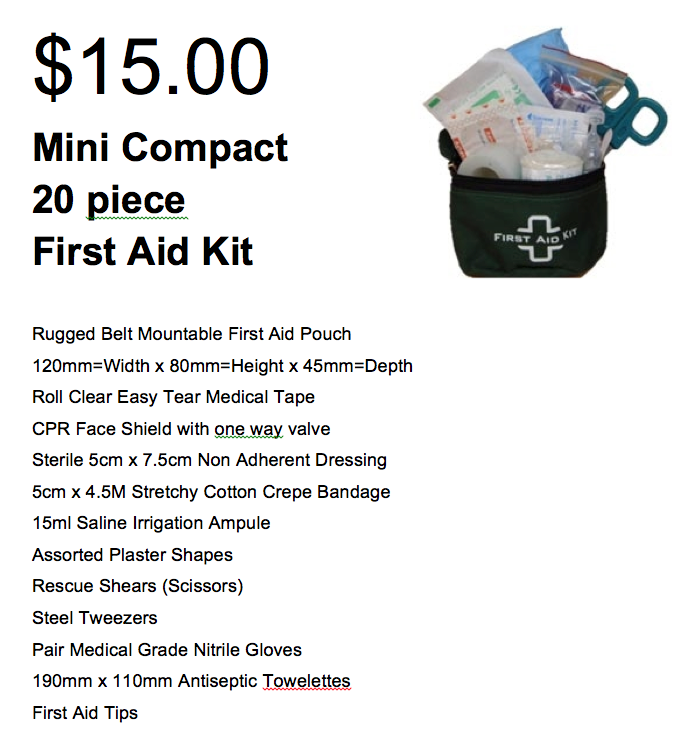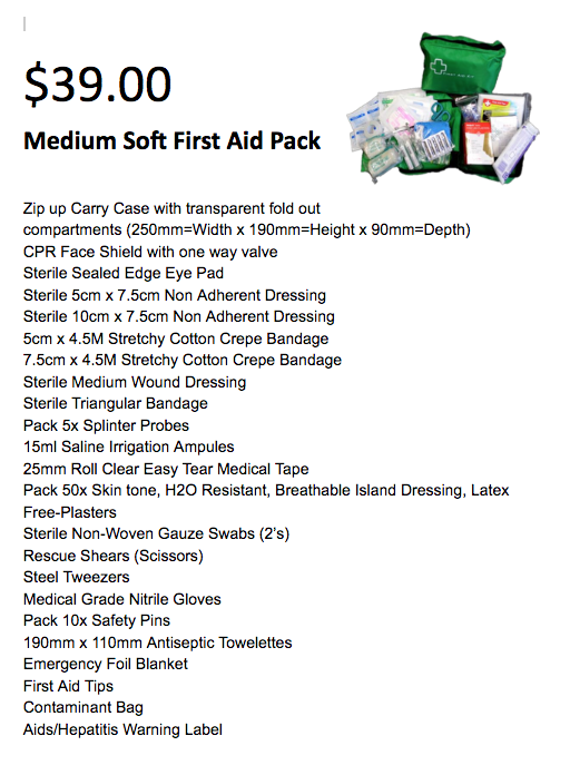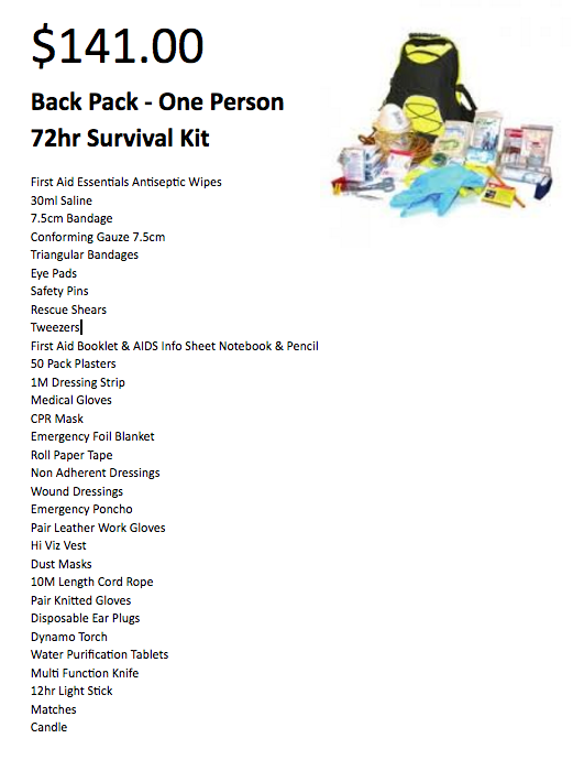 We still have a range of first aid and survival kits available to purchase. Given the events of last week, orders will be closed tomorrow, so we can have these items delivered next week.
