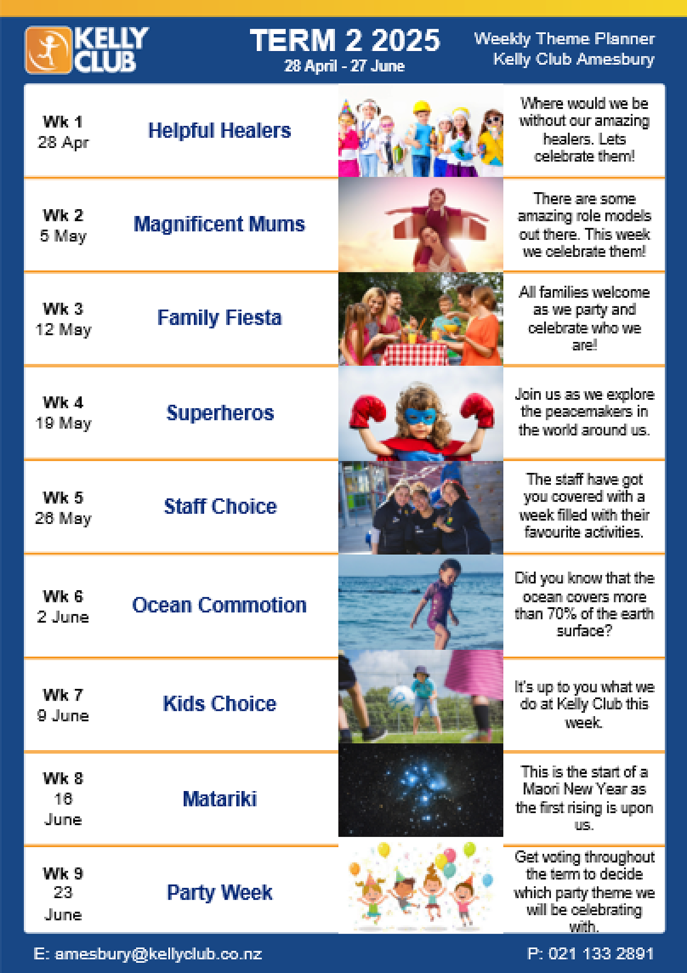 Kelly Club Weekly Activity List for Term 2 2025
