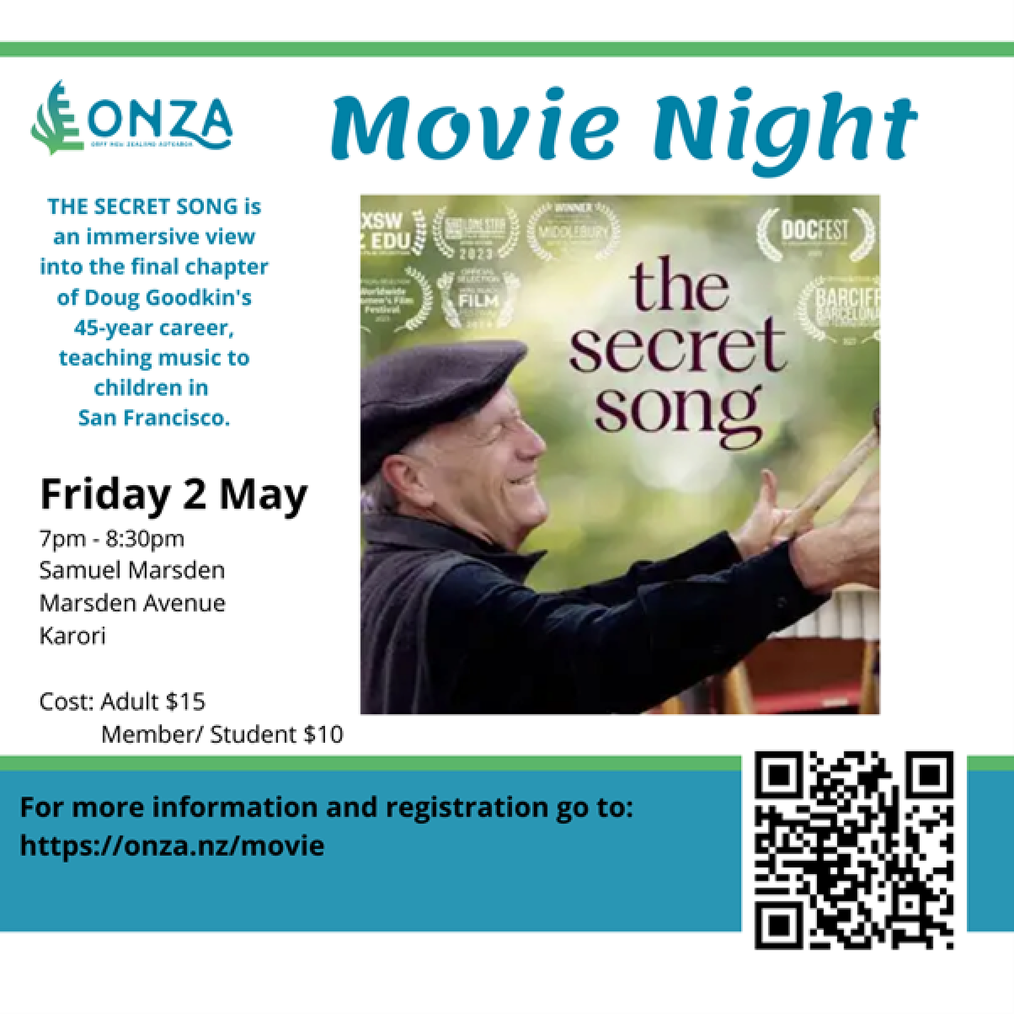 ONZA invites you to Marsden School in Karori to view a terrific movie about the iconic Orff music educator Doug Goodkin working at the San Francisco school with children from pre-school through to 8th grade.
