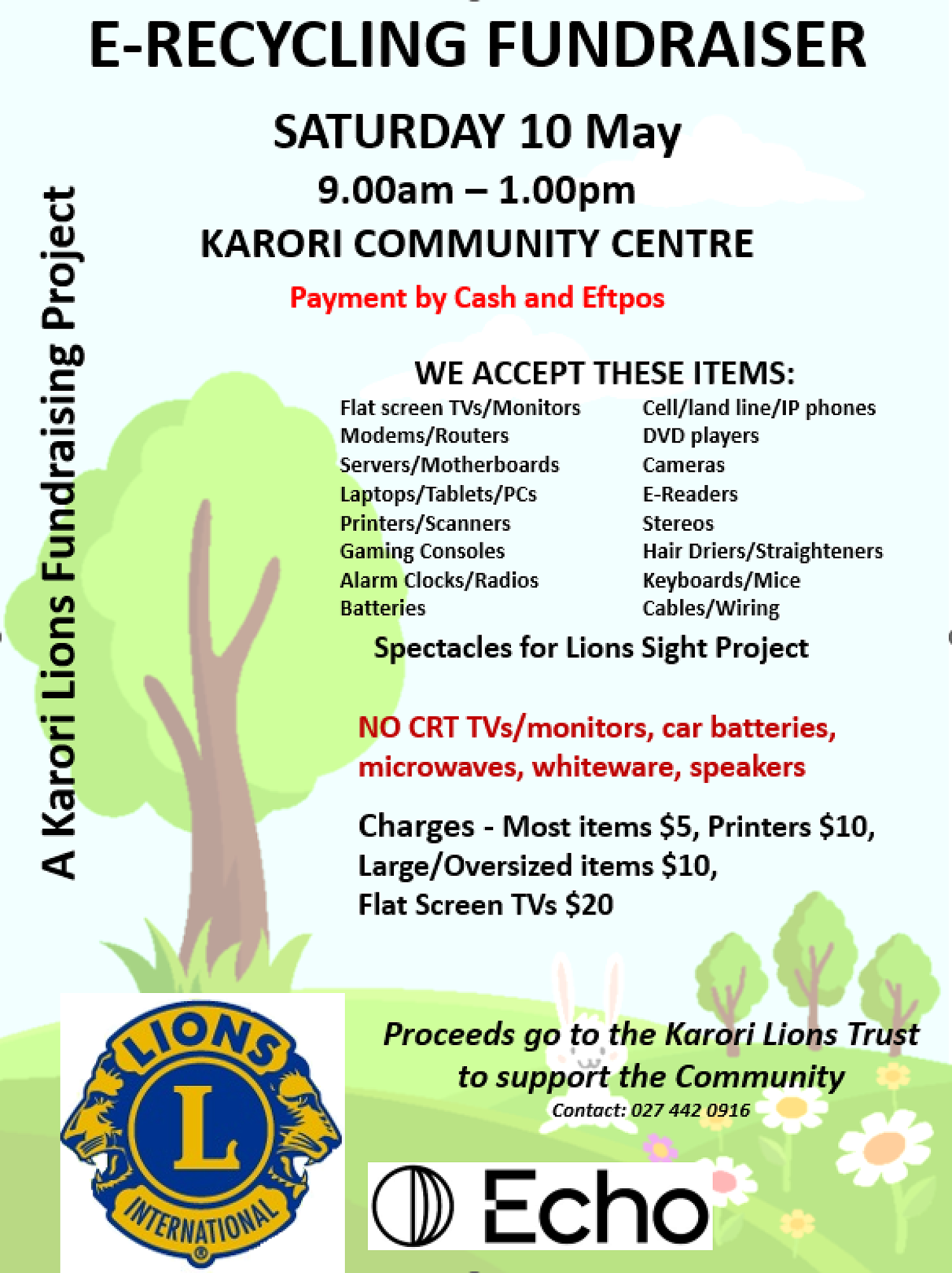 Karori Lions have an E-Recycling fundraiser coming up on Saturday 10 May, at the Karori Community Centre, from 9am to 1pm.