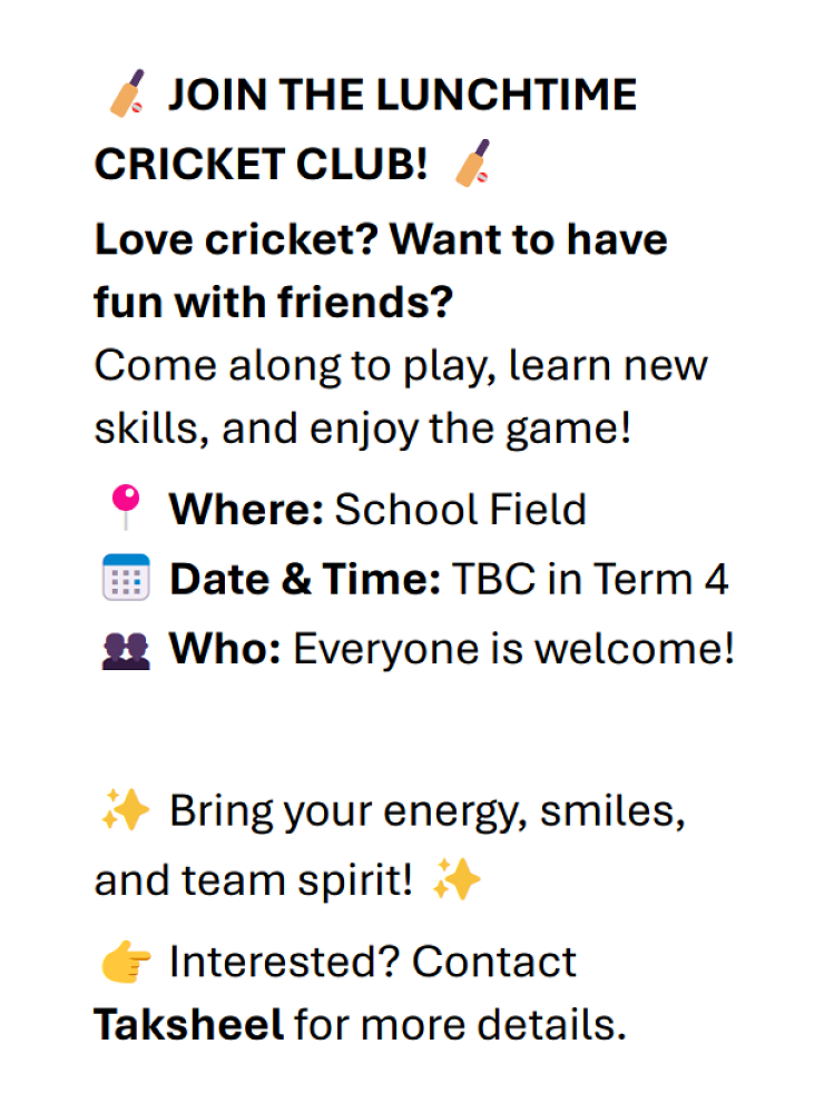 If your tamariki are interested in taking one or more co-curricular lessons for Term 4 please sign up without delay as lessons begin this week for the term. Spaces are still available in all lessons, although some spaces are limited.