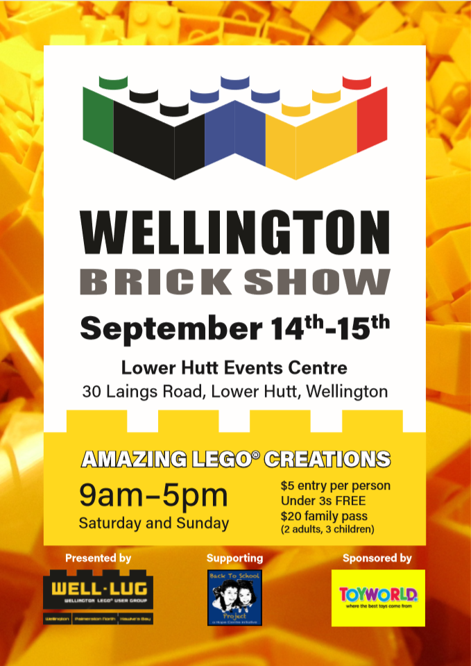 Wellington’s only Lego Show will be held on 14 & 15 September at Lower Hutt Events Centre.It’s going to be bigger and better than any Lego show that has been held in the city before.The show will be raising money for the Back to Schools charity, that supports children in low decile areas return to school with essential items they need for the new school year, so we want to spread the word and get as many people coming along as possible.