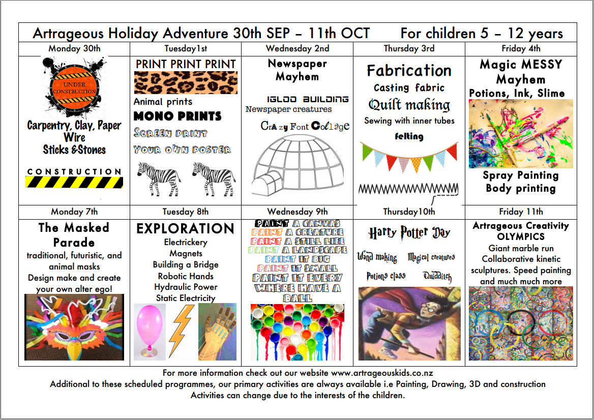 When: 30 Sept - 11 Oct 2019, 8.30am–3:00pm ($69) and after care 3-5.15pm ($15)
