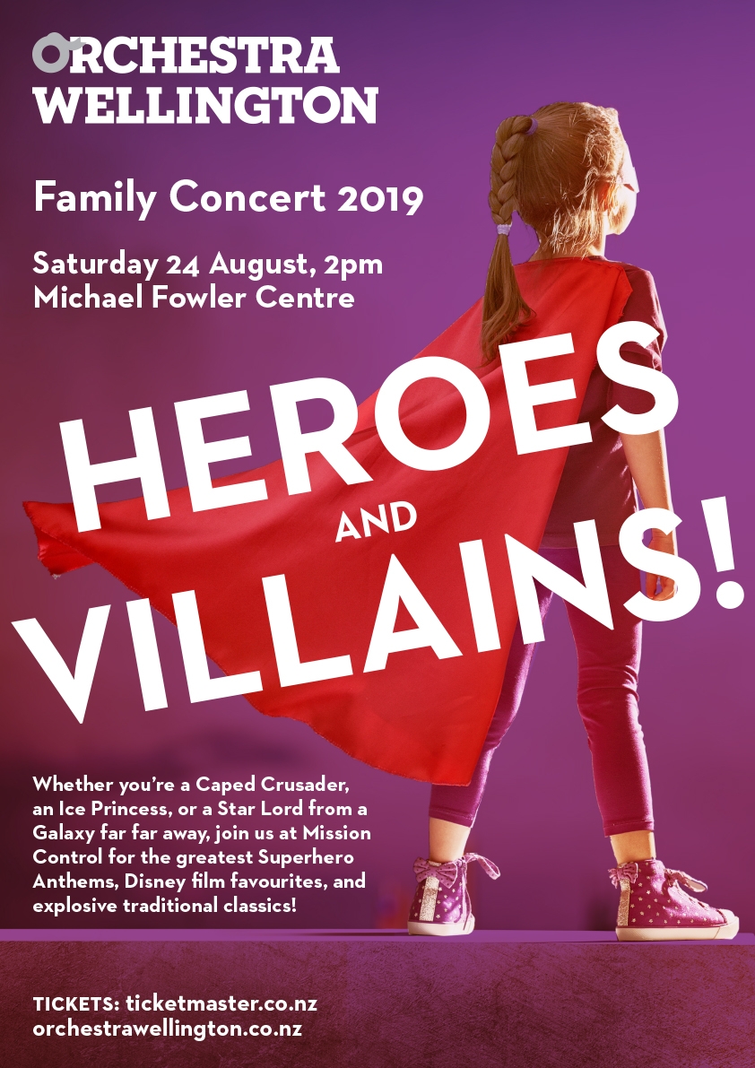 Orchestra Wellington presents a family concert at the Michael Fowler Center on Saturday 24th August 2pm entitled HEROES and VILLAINS!