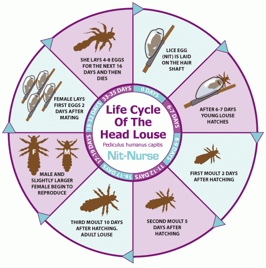 REMEMBER! Because live eggs hatch in 7-10 days, the key to success in getting rid of them is to repeat whatever treatment you settle on every three-four days for a couple of weeks. You can only break the cycle if you stop the newly hatched lice from laying eggs.