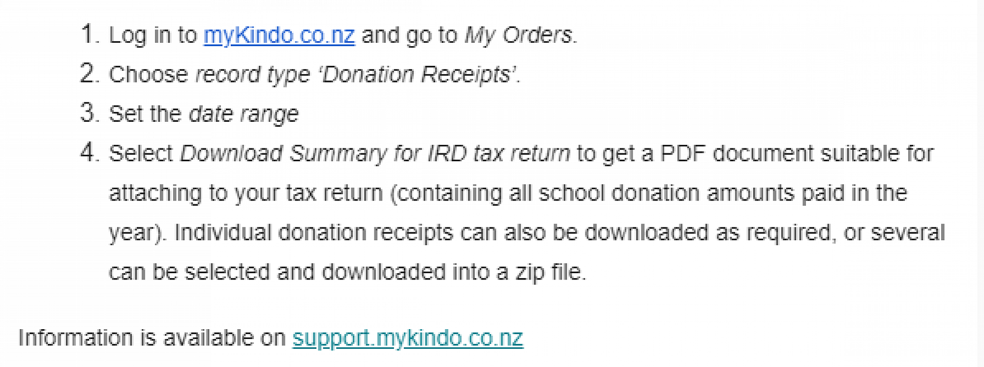 If you have already made donations to Amesbury School you can now obtain a receipt from Kindo which you can supply to the IRD and claim 33.33c in the dollar back.