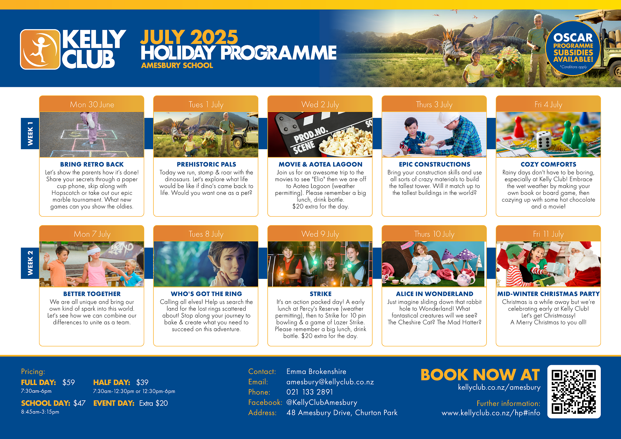 We can’t wait to welcome everyone to our action-packed July Holiday Programme! Get ready for heaps of fun – we’ve got an epic movie trip day planned, an exciting trip to Strike, and a week full of awesome daily themes that you won’t want to miss.