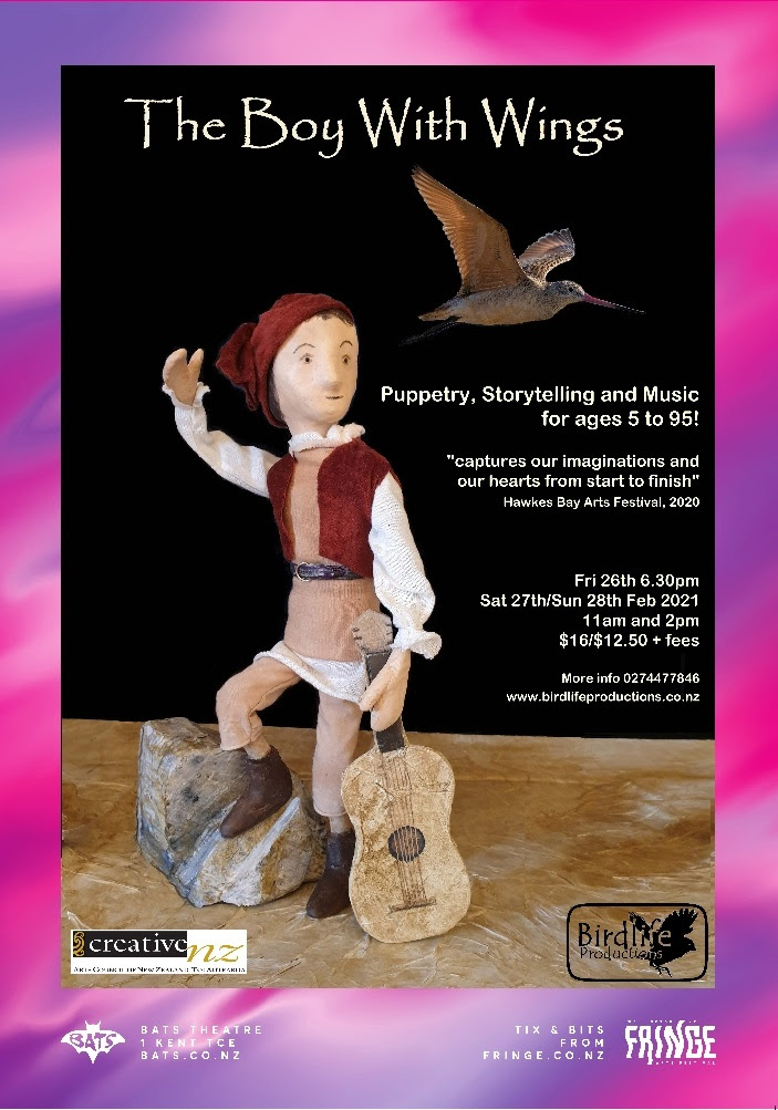 Child tickets only $12.50. Adults $16 (or $50 for 4).50 minutes longMore info and tickets from: https://bats.co.nz/whats-on/the-boy-with-wings/