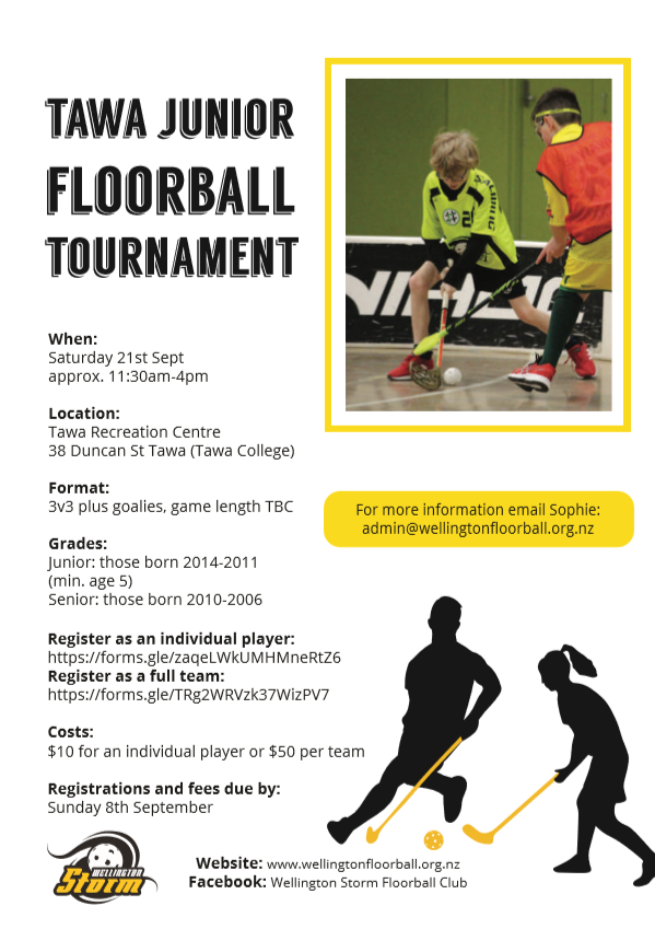 With the popularity of floorball on the rise a tournament has been set up for Saturday 21 September from 11.30am-4pm at the Tawa Recreation Centre.
