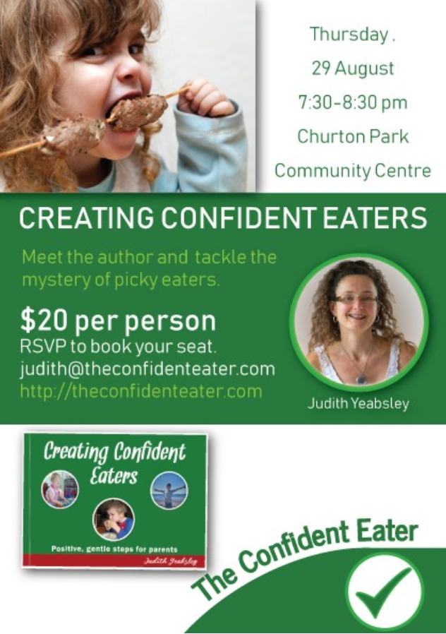 Judith Yeabsley, author of Creating Confident Eaters, will be running a one-off live event next Thurday night (29 August) at the Churton Park Community Centre.